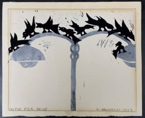 Aronson is best known for her colorful flowers and eloquent travel paintings, but her early work—impressionistic woodblock prints and abstract painting—are at least as deserving of attention.