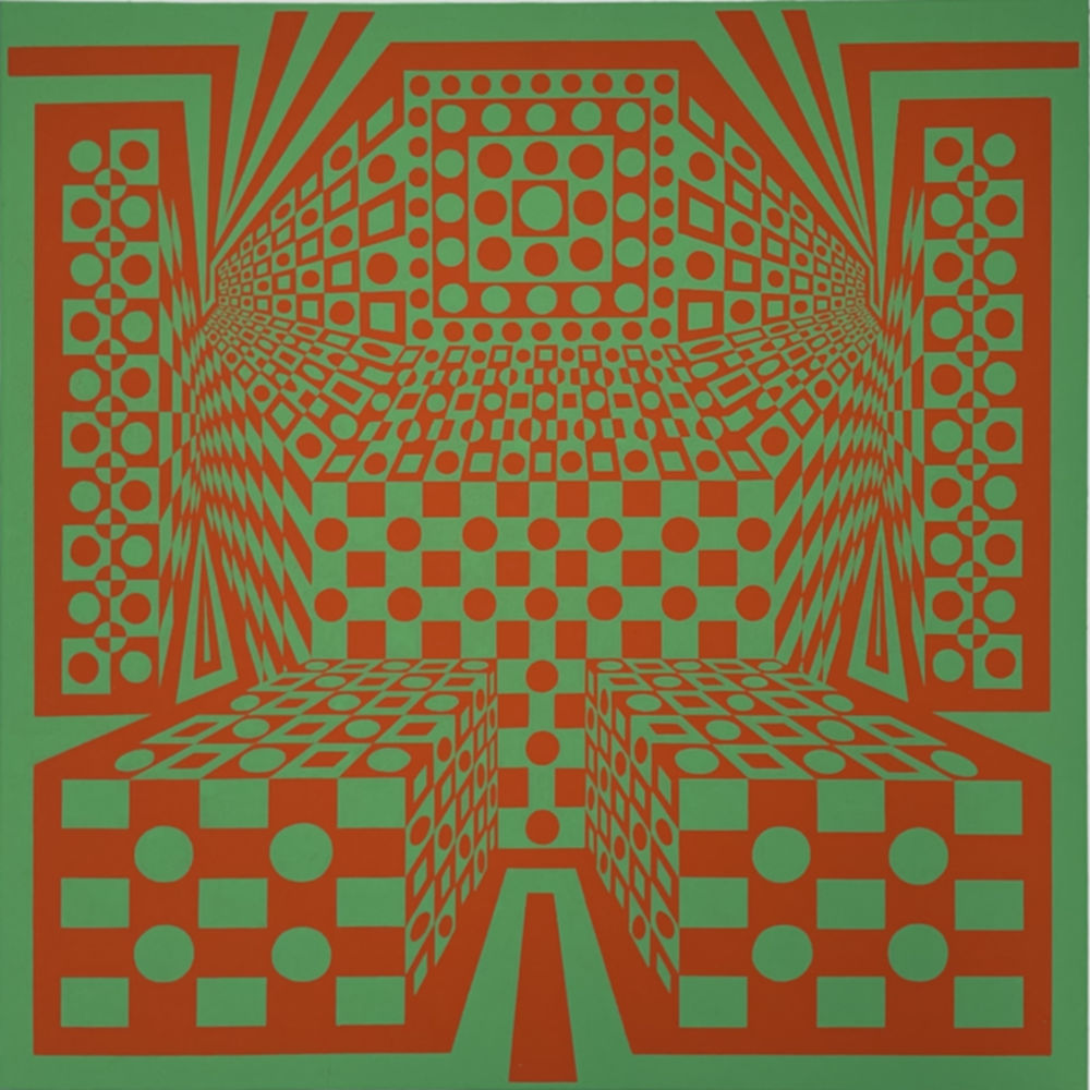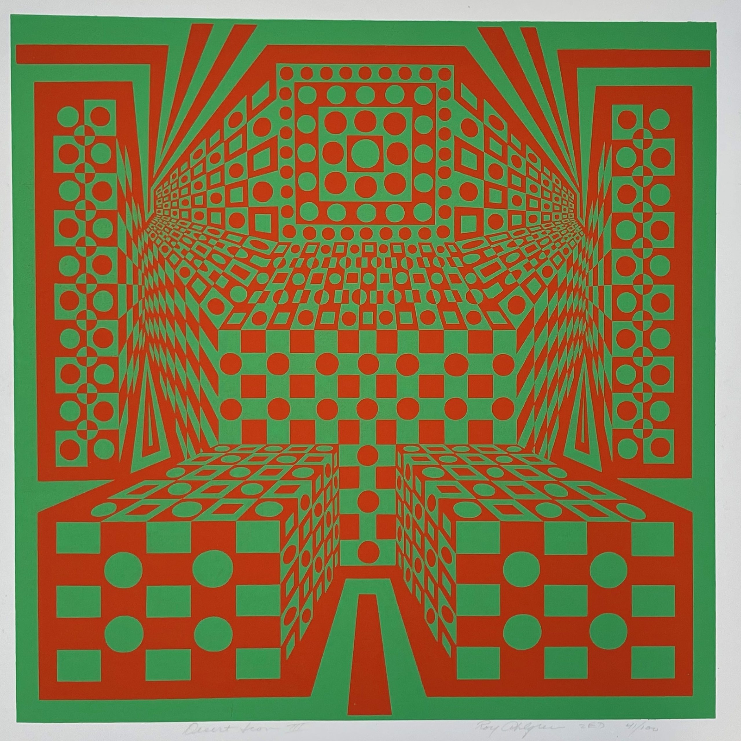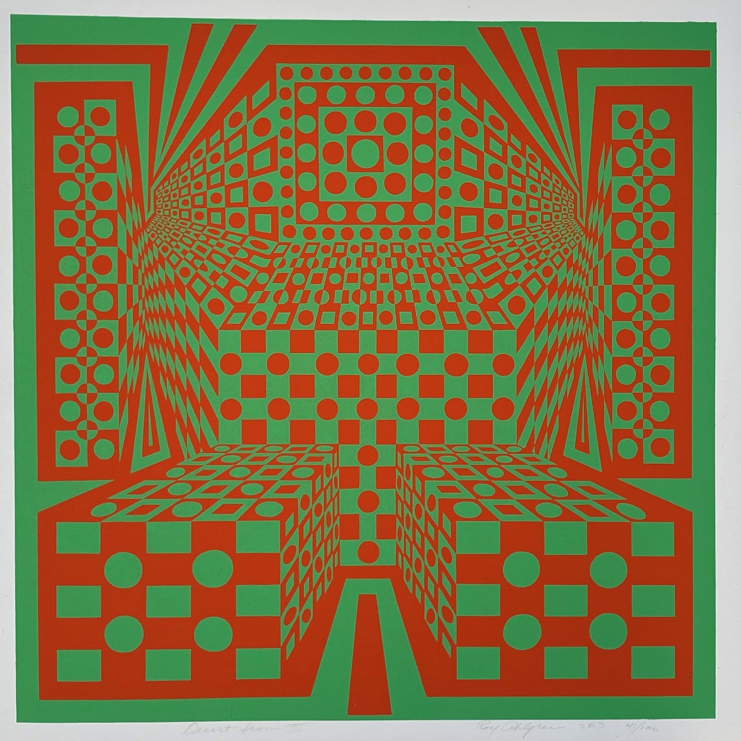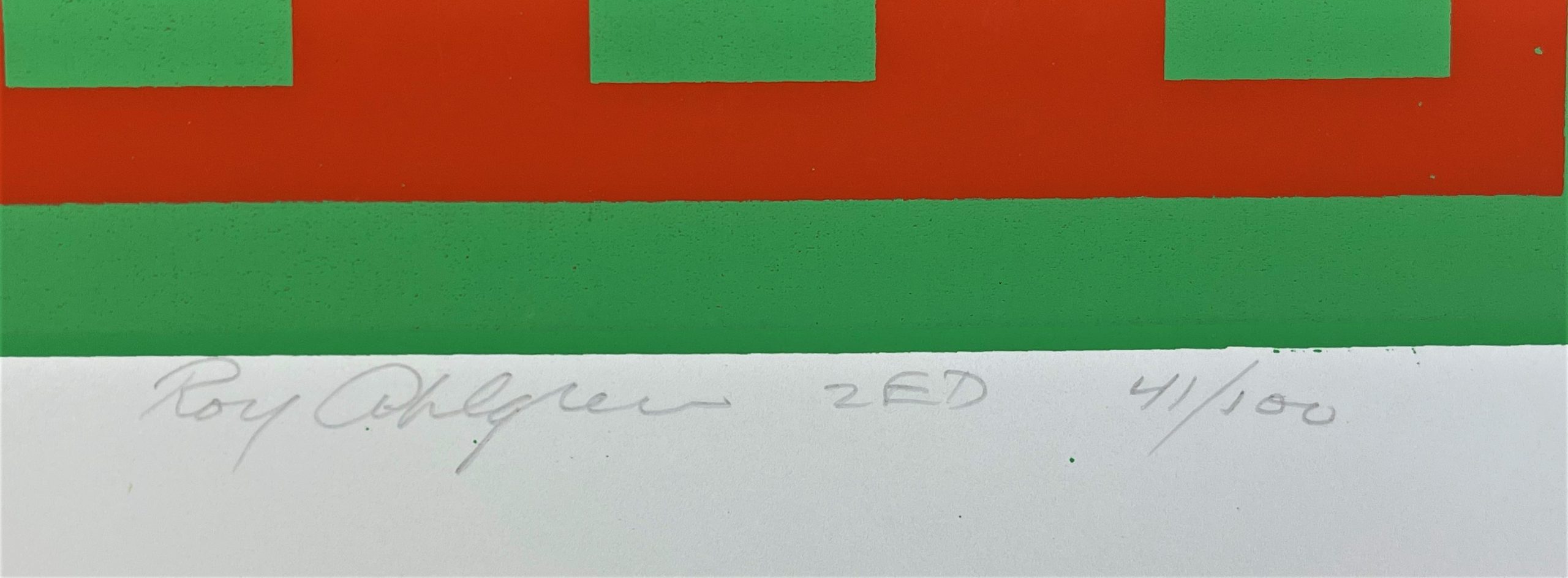 Roy Ahlgren was a sort of late Twentieth Century social realist. His artistic style was optical art but his work was often social commentary.