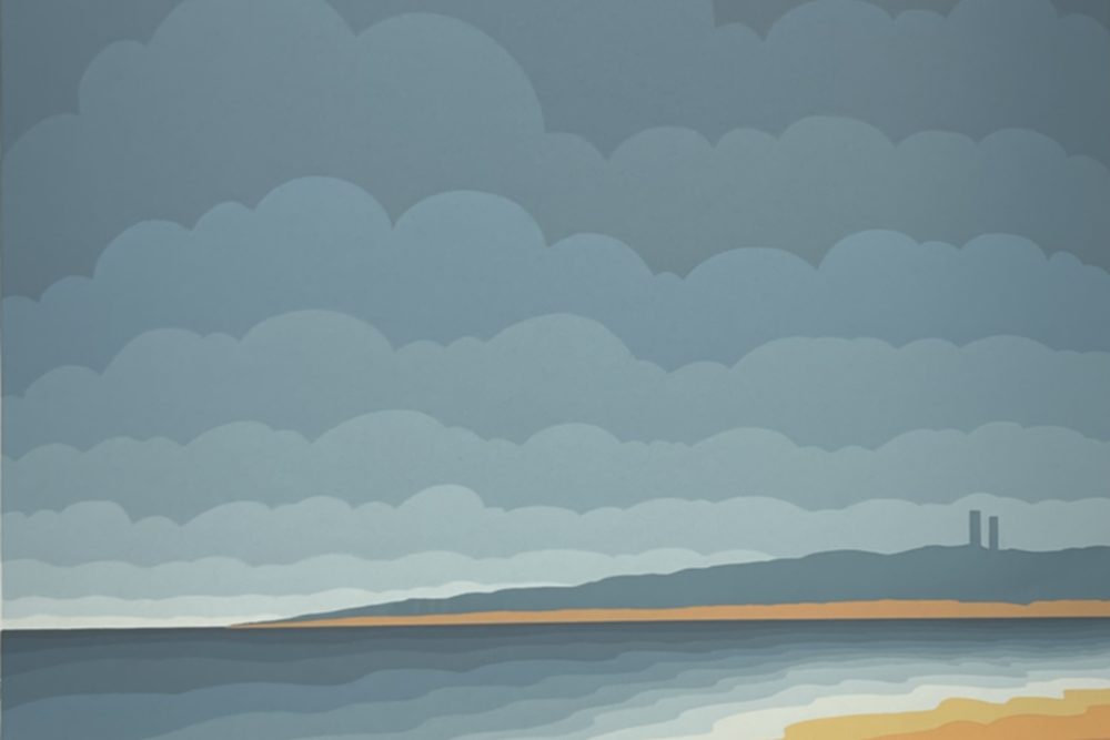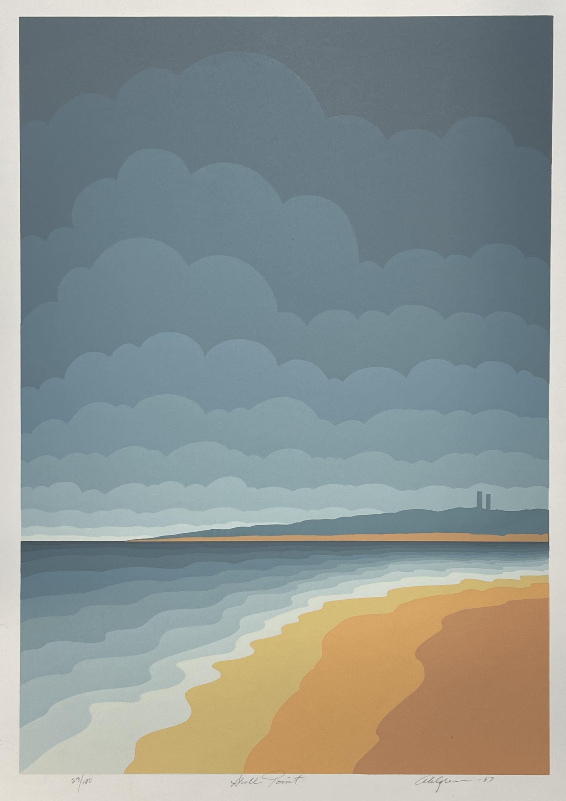 Roy Ahlgren was a sort of late Twentieth Century social realist. His artistic style was optical art but his work was often social commentary.  This work appears to be a meditation on the peacefulness of a quiet beach.