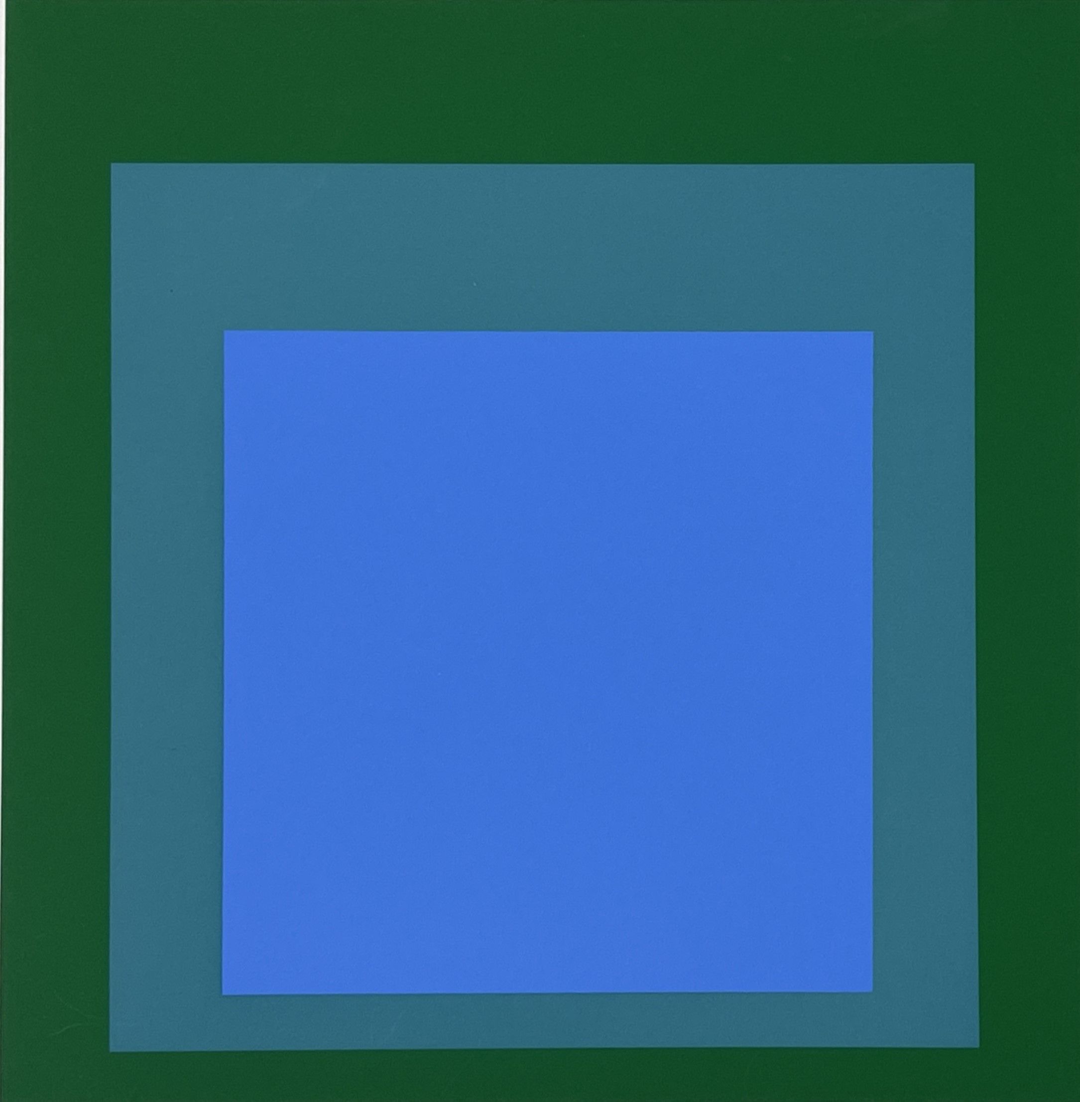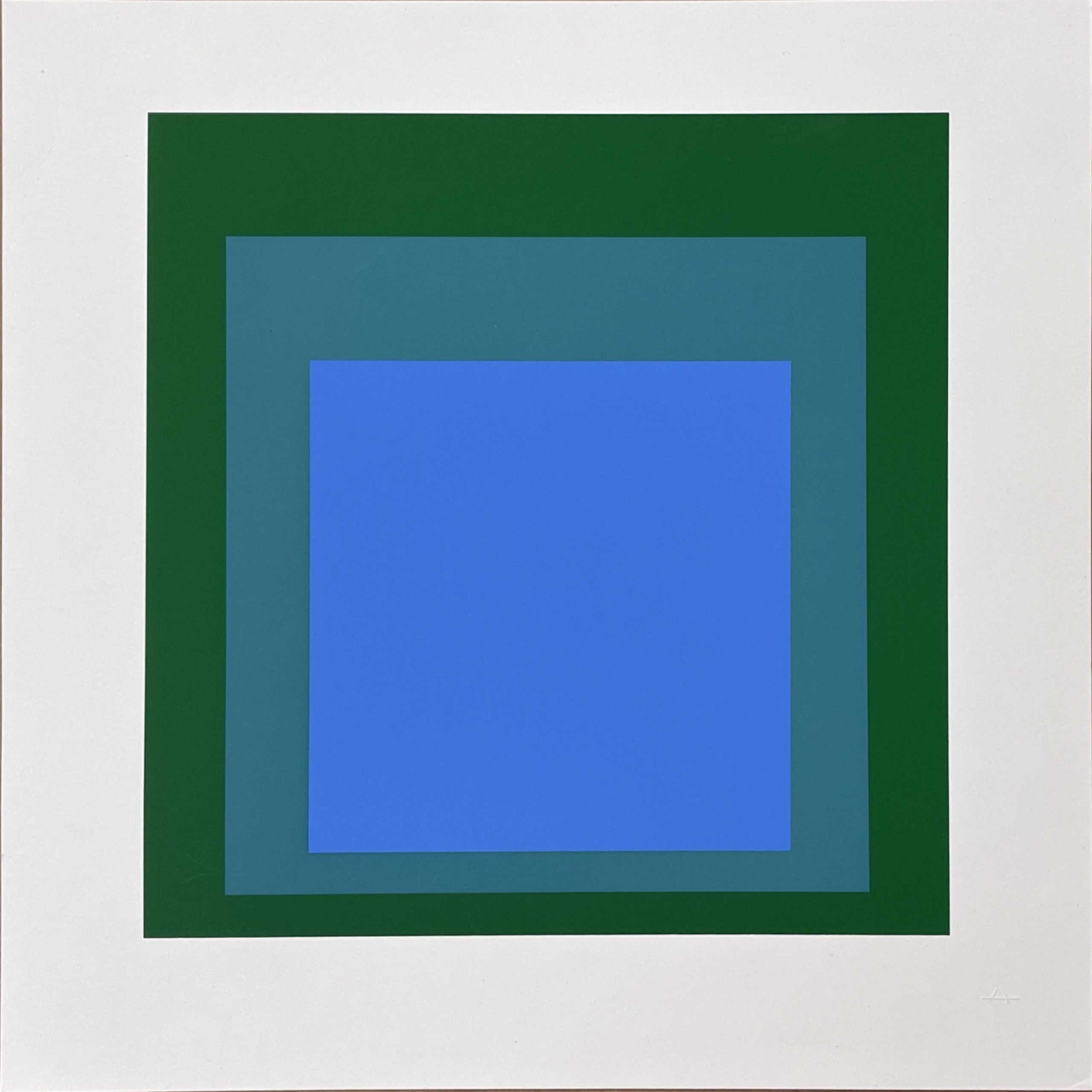 Late in his life, Josef Albers published his most iconic works in his “Formulation: Articulation” portfolio, a capstone of his career. This is one of the works from the portfolio, a vibrant study of square and of color.