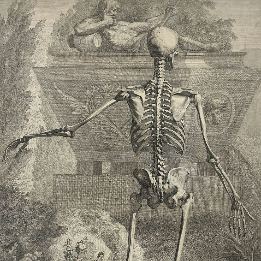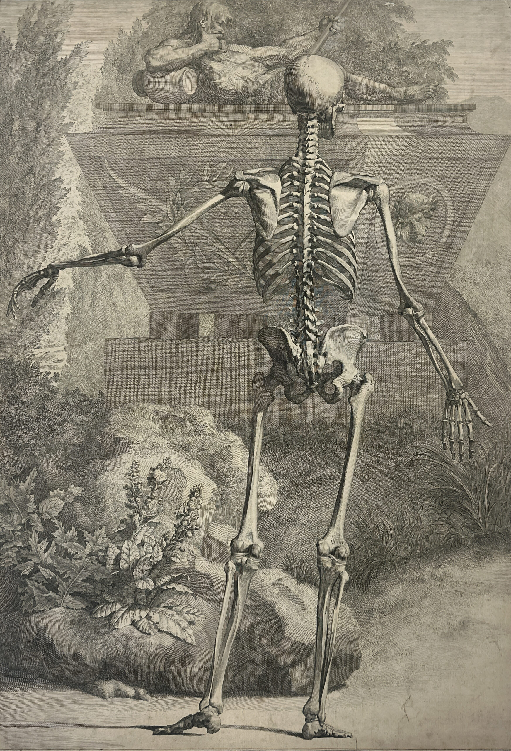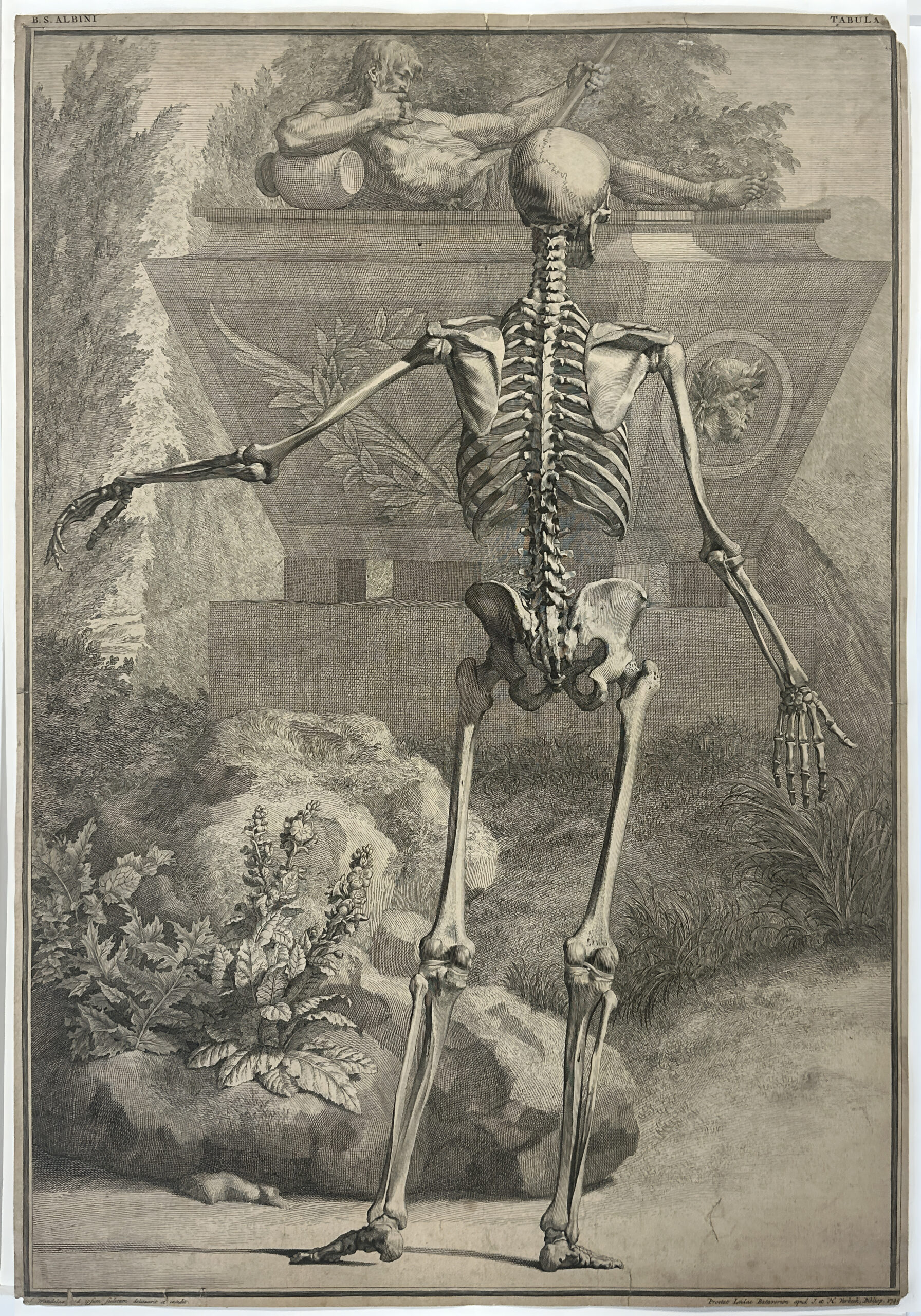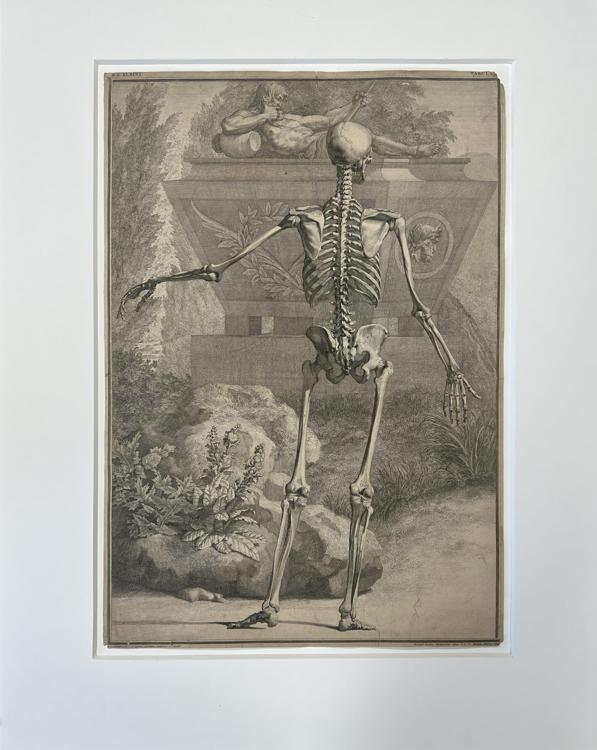 A plate from Bernhard Siegfried Albinus‘ famous “Tabular Sceleti et Cusculorum Corporis Humani”, etched by Jan Wandelaar from his own drawing.