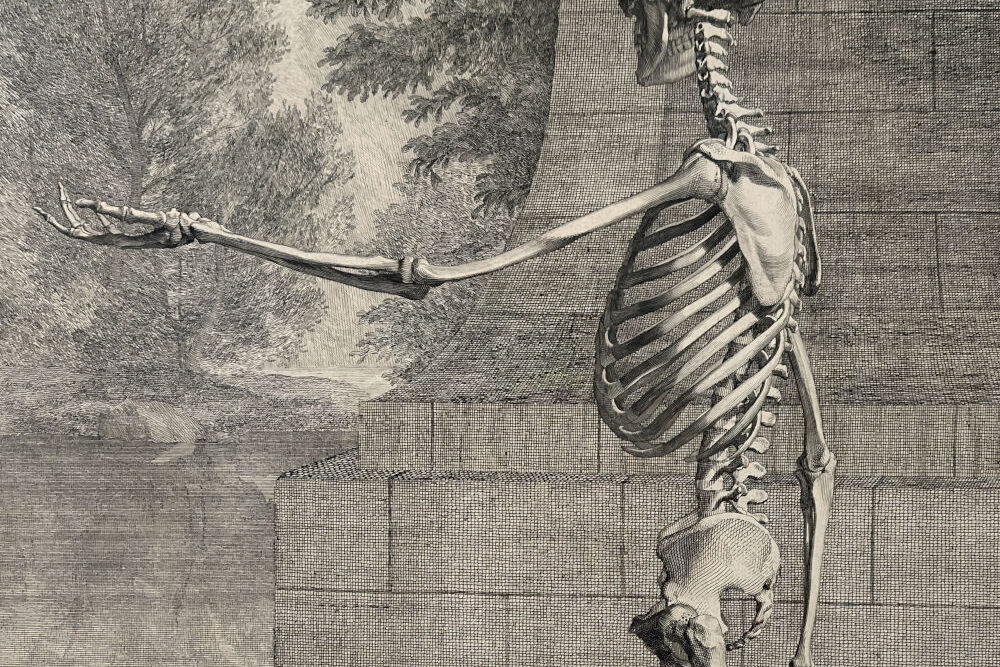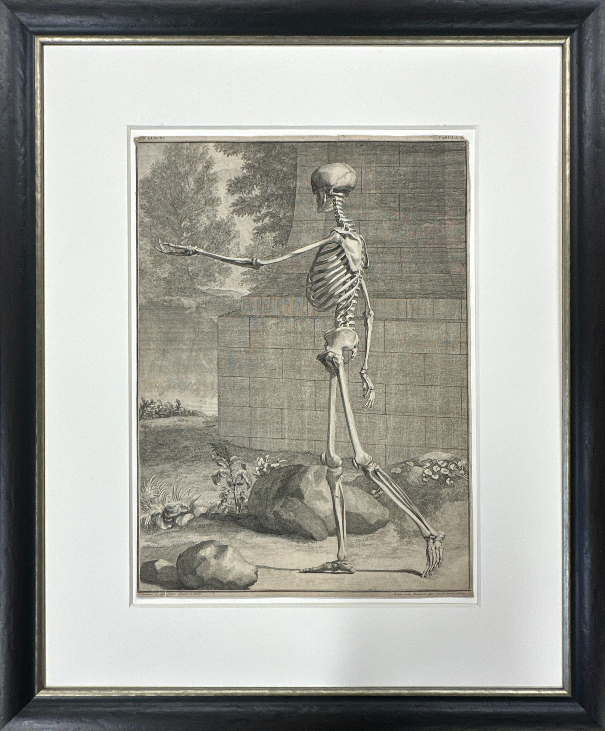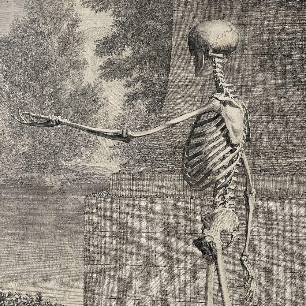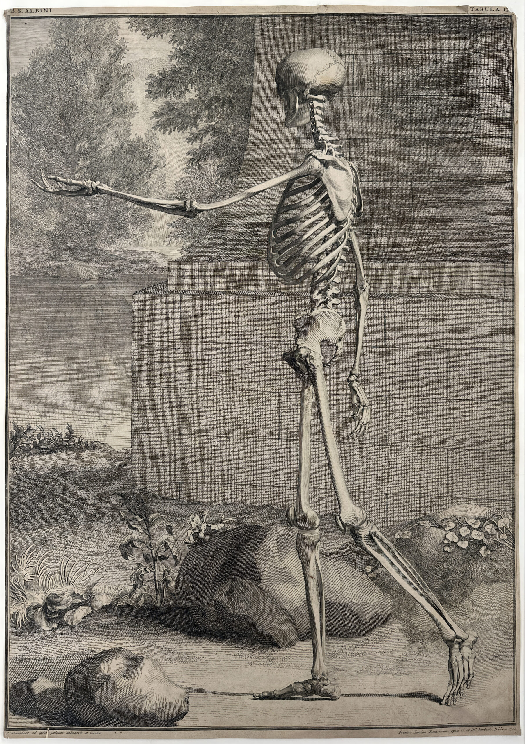 A plate from Bernhard Siegfried Albinus‘ famous “Tabular Sceleti et Cusculorum Corporis Humani”, etched by Jan Wandelaar from his own drawing.
