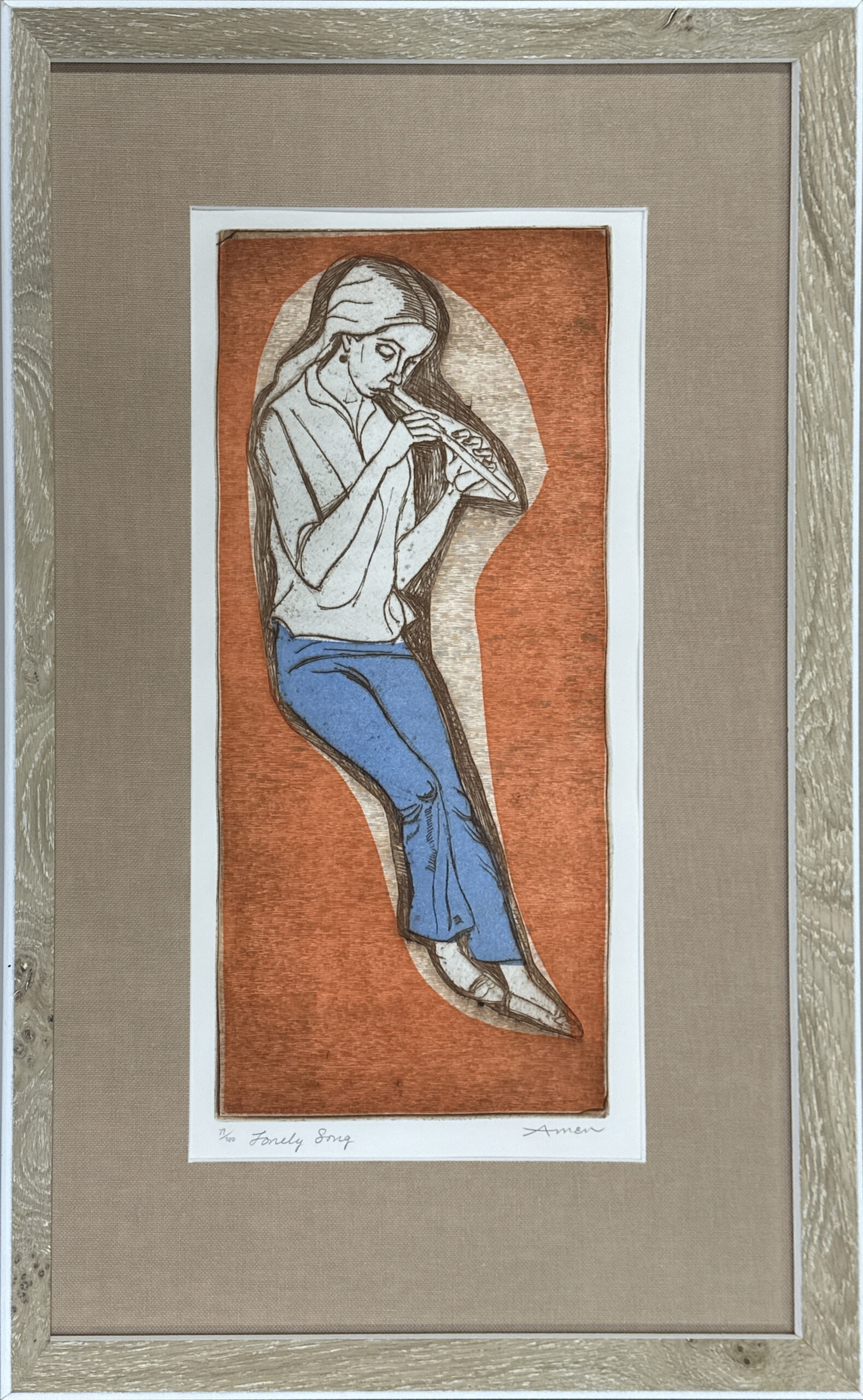 Custom matted with a cloth-covered mat and a solid wood fame behind 99% UV-blocking art glass using strictly conservation-grand materials.