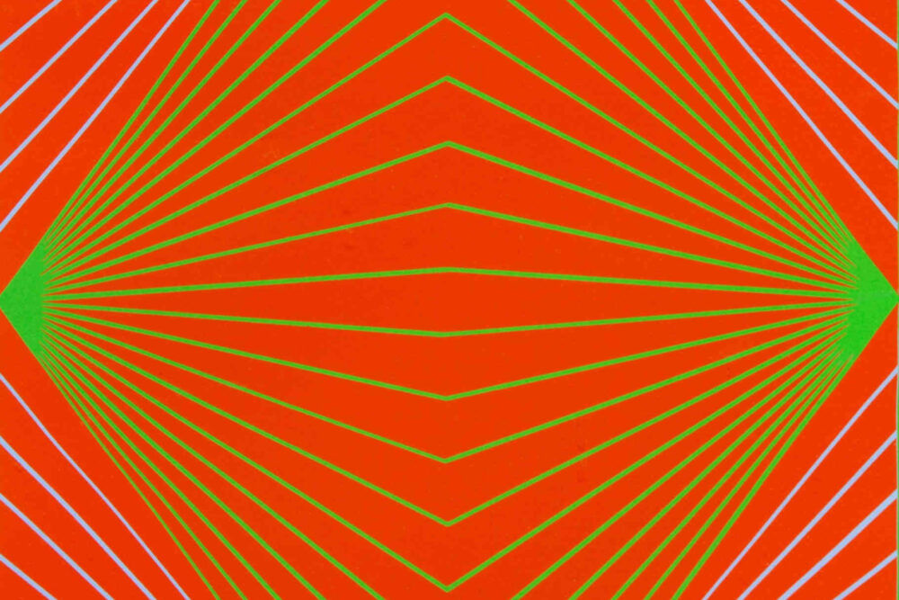 This work showcases Richard Anuszkiewicz’s focus on optics and color.