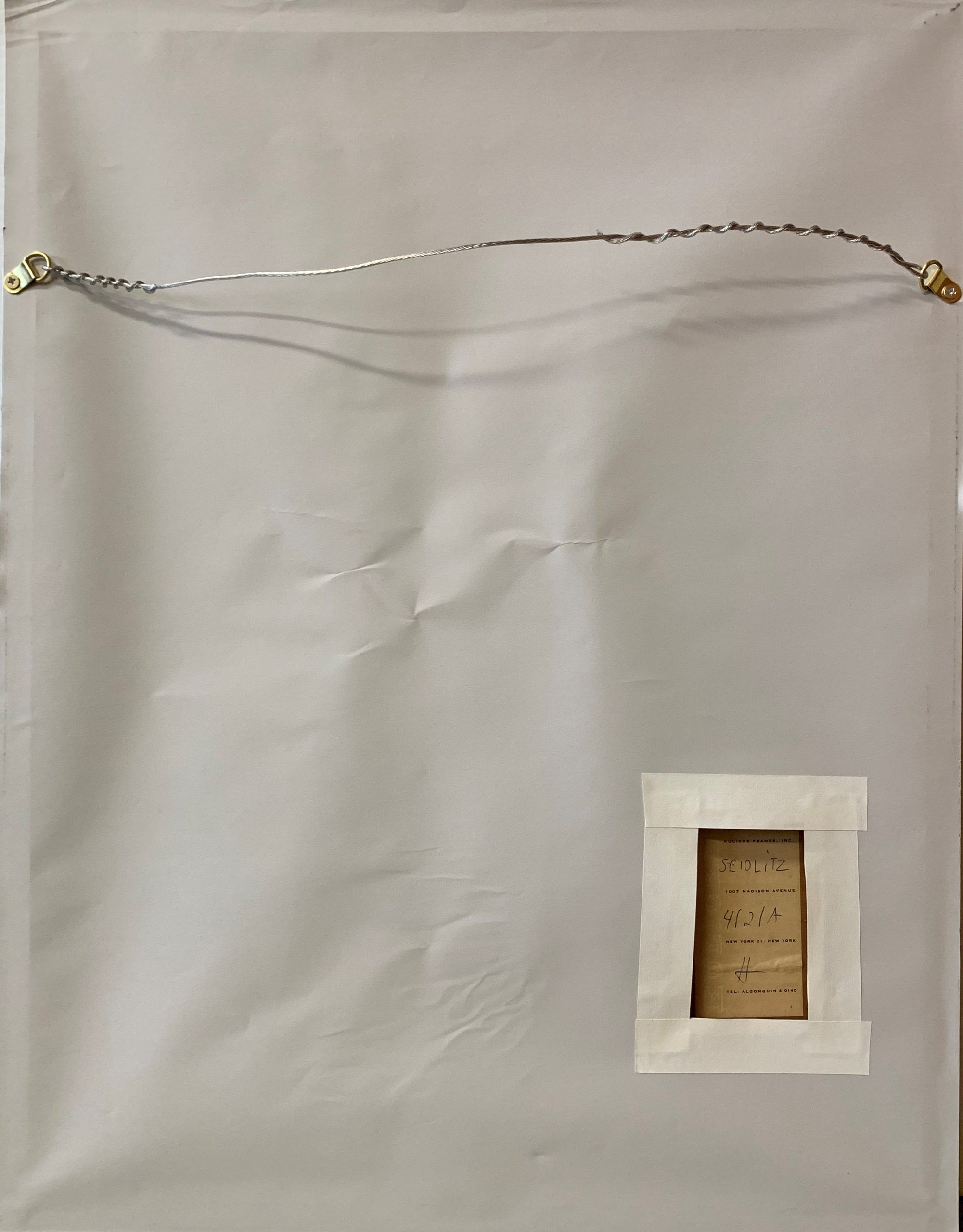 Adding to the specialness of this work is that it is framed in a hand-made aluminum frame with forged, seamless corners by the famed framemaker and artist Robert Kulicke. (The dust panel covering the back has been opened up to show Kulicke’s frameshop label.)  The original glass has been replaced with 99% UV-filtering art glass and a sheet of buffered acid-free paper placed behind the work.