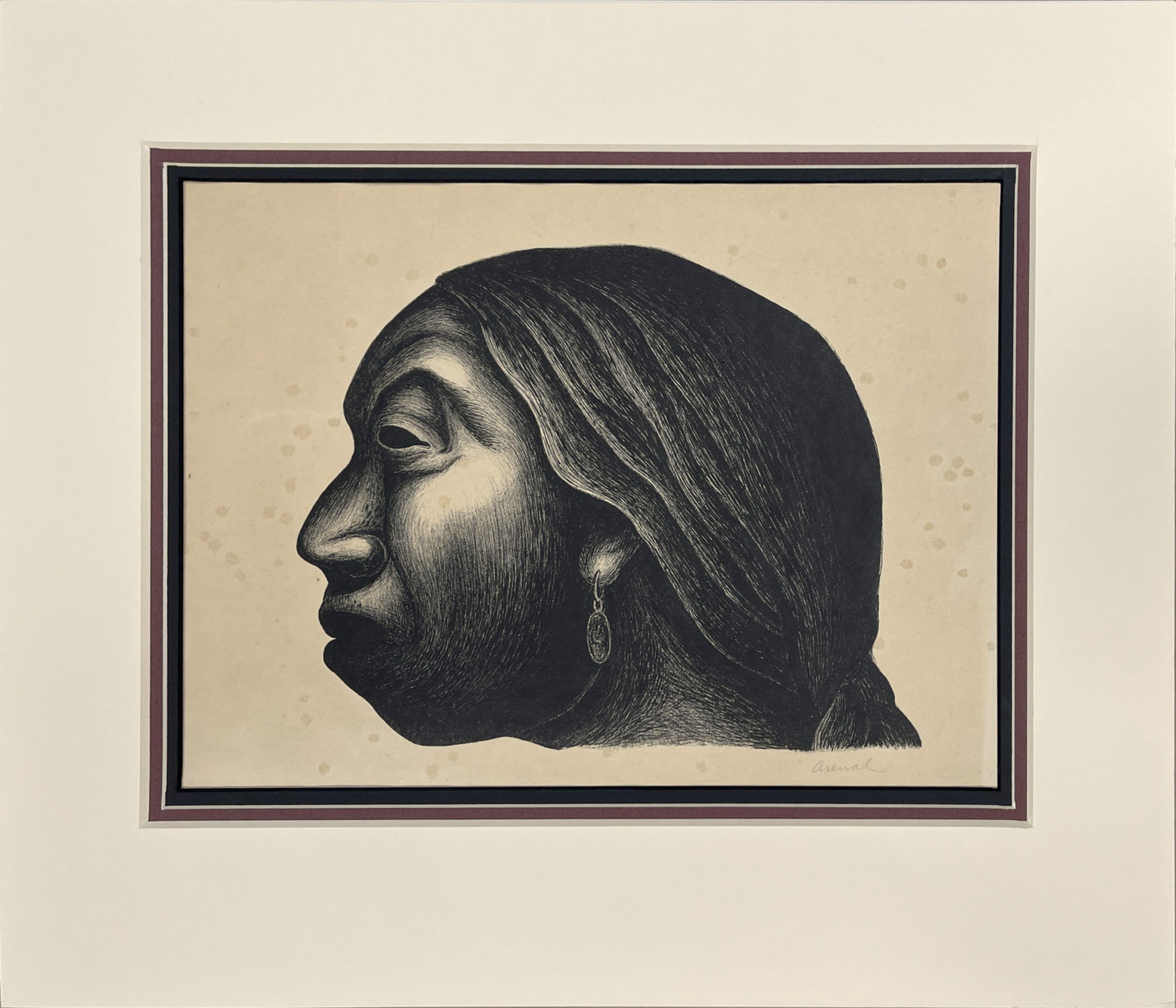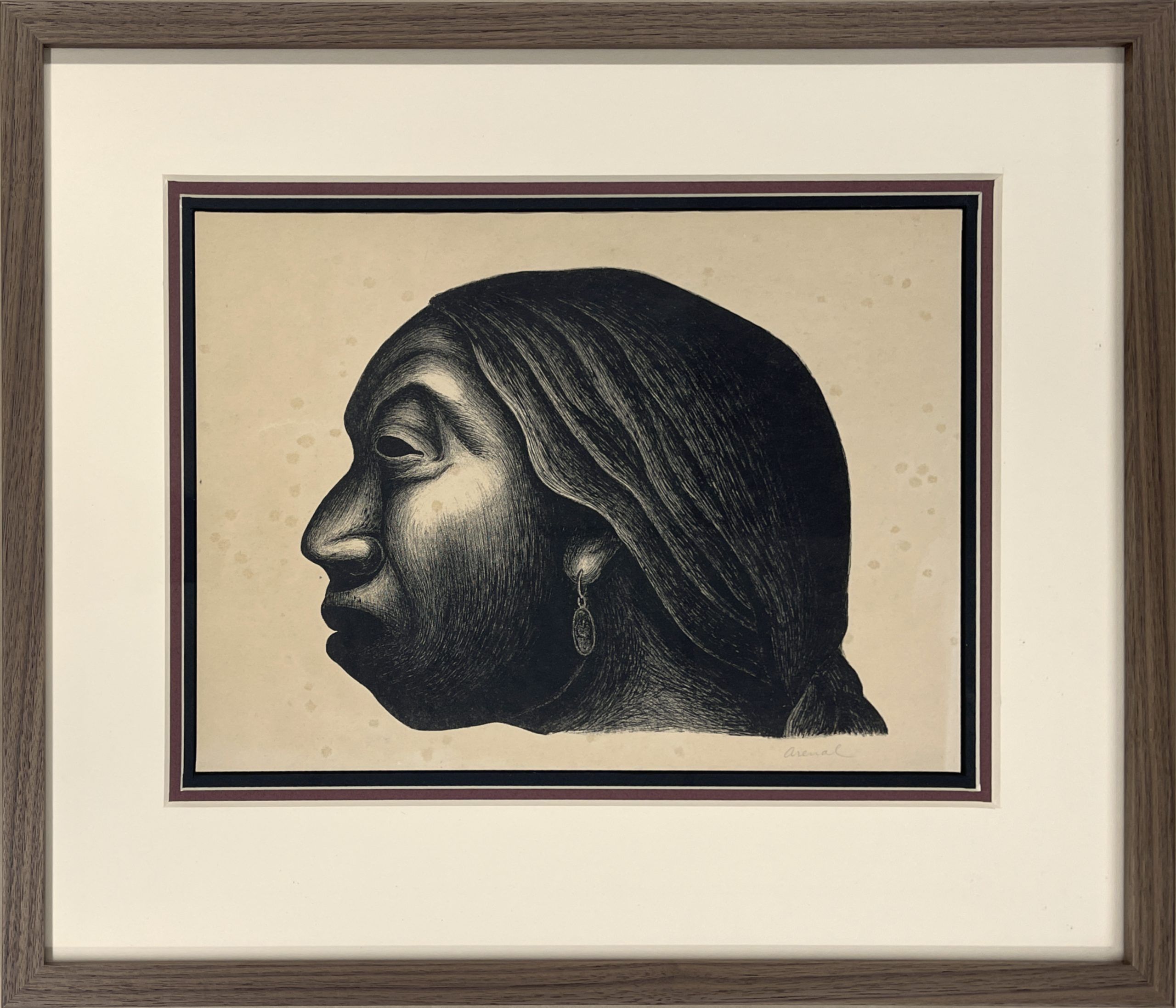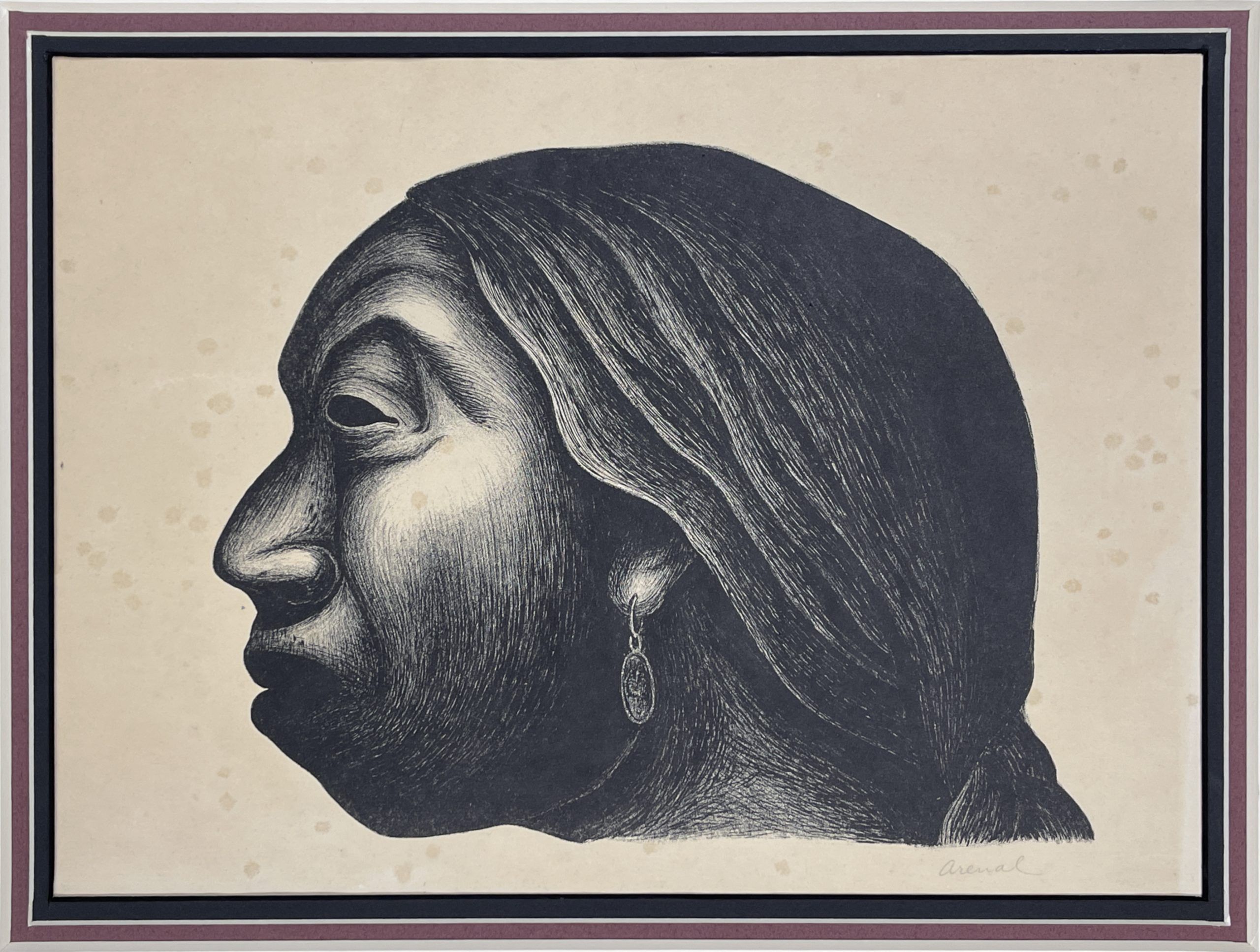 This work is probably Luis Arenal’s most iconic image. It has been identified as “Woman of Taxco” [Mujer de Taxco] and Head of an Indian Woman [Cabeza de Indigena], but it is most often referred to as “Head of a Woman” [Cabeza de Mujer].