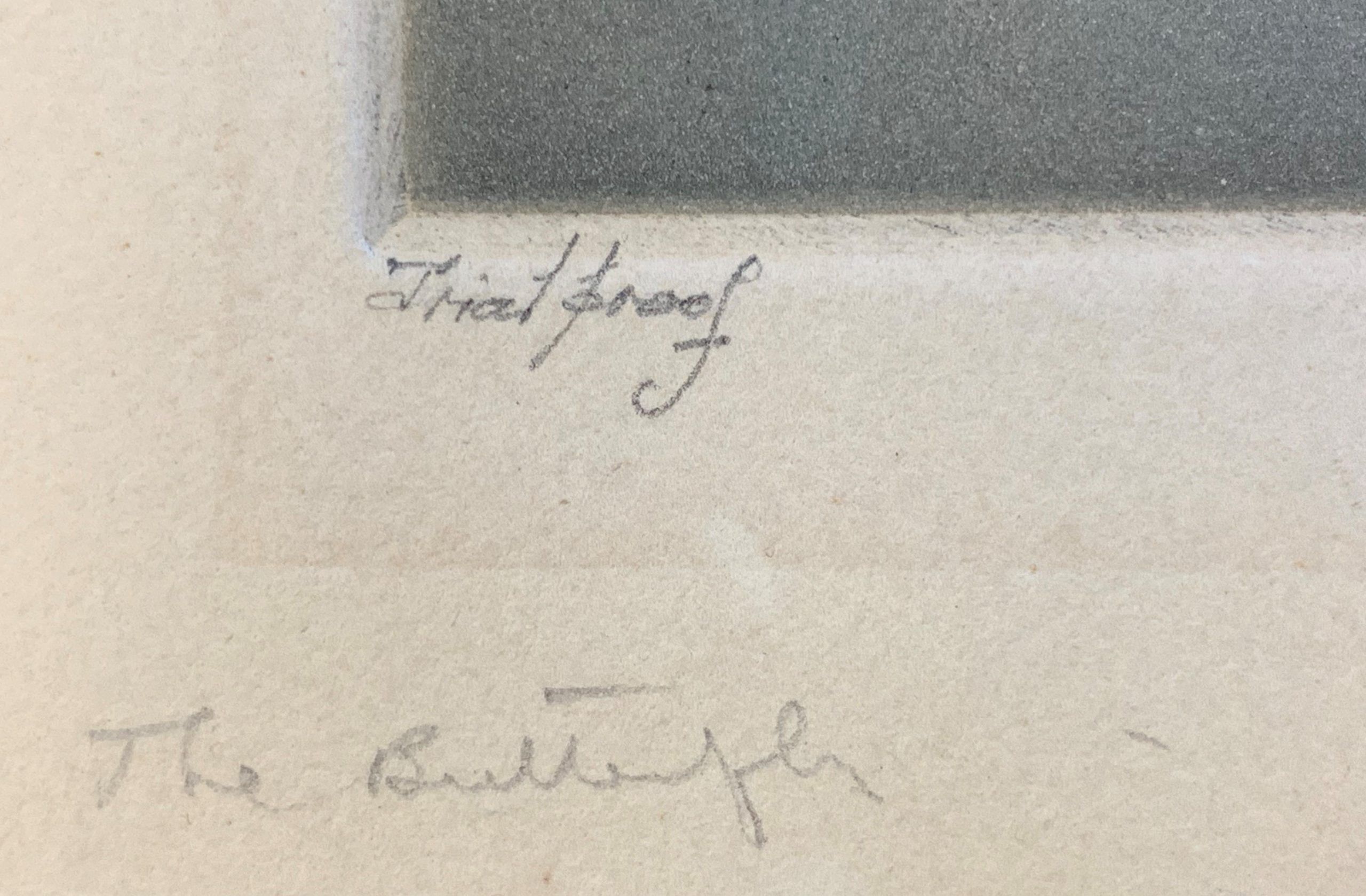 This print is quite special because it is apparently the only trial proof of the second state ever made in black and white. (One trial proof was made of the first state—an etching without aquatint—but it was destroyed; two trial proofs were pulled of the second state in color.) This print was not signed, presumably because it was a trial print.