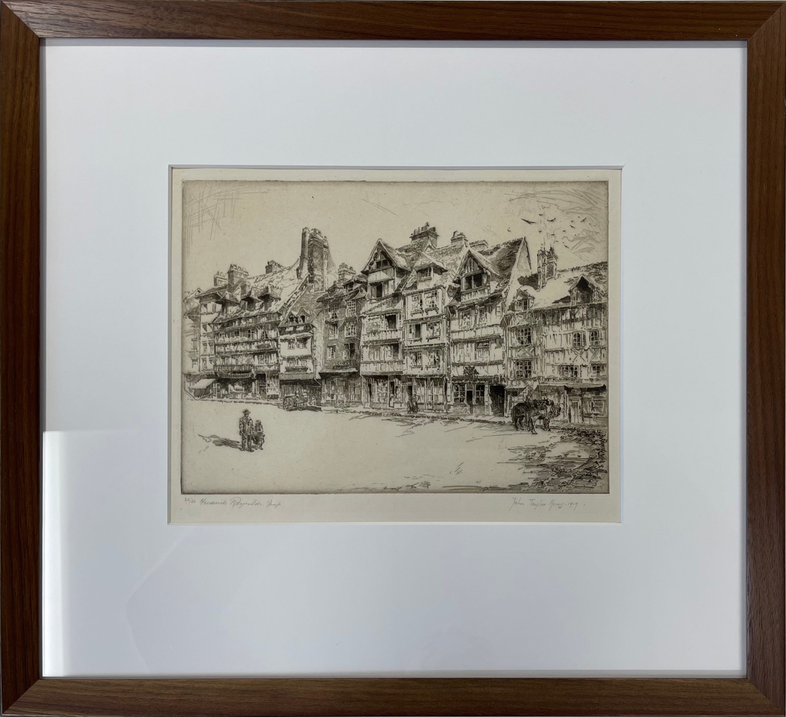 Professionally framed and matted in a solid walnut wood frame and glazed with 99% UV-filtering art glass using strictly conservation-grade materials.