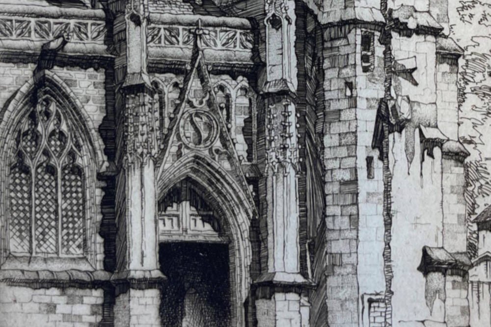 This print, “Église Saint Michel, Pont L’Évêque,” is part of Arms’ Churches of France series.