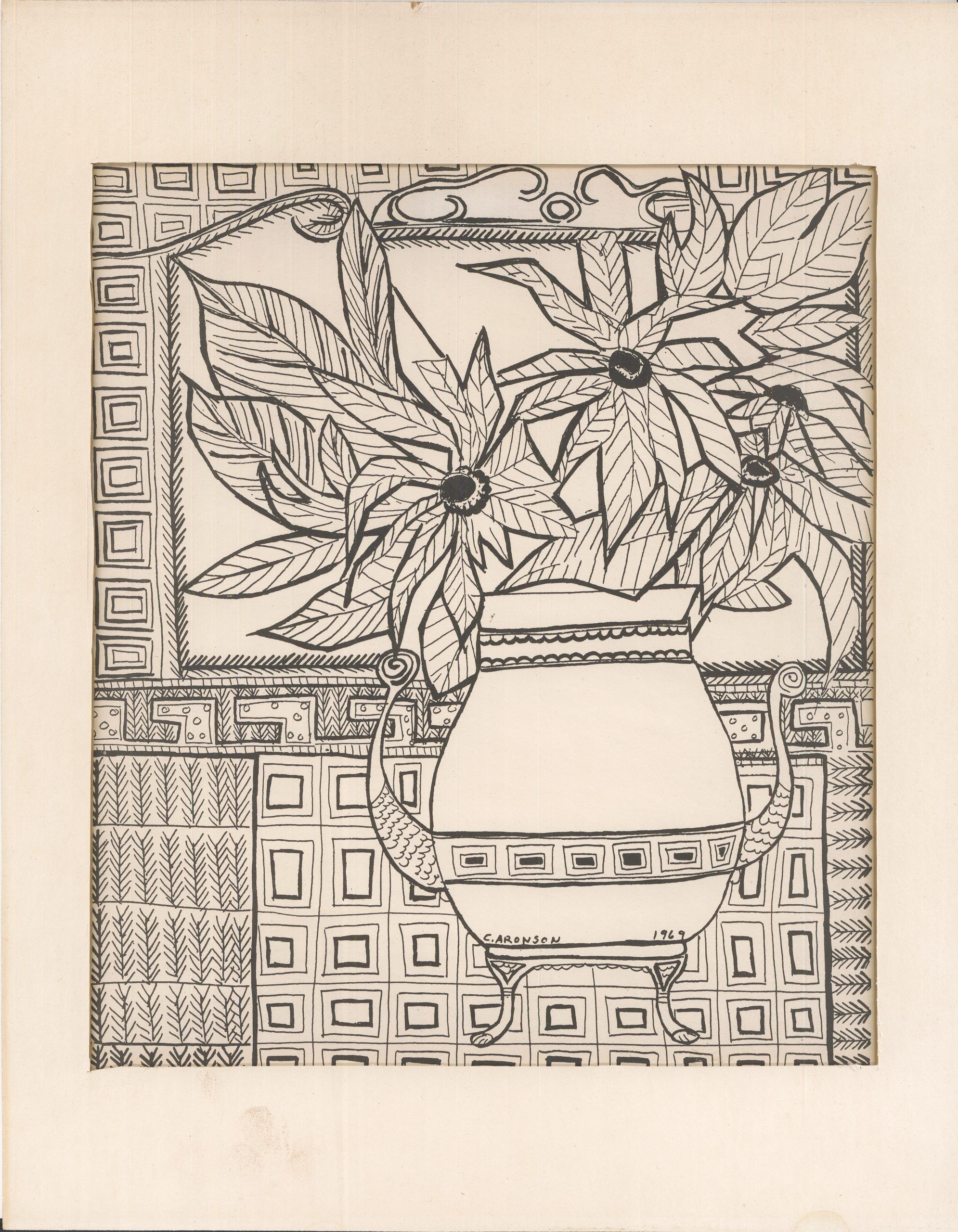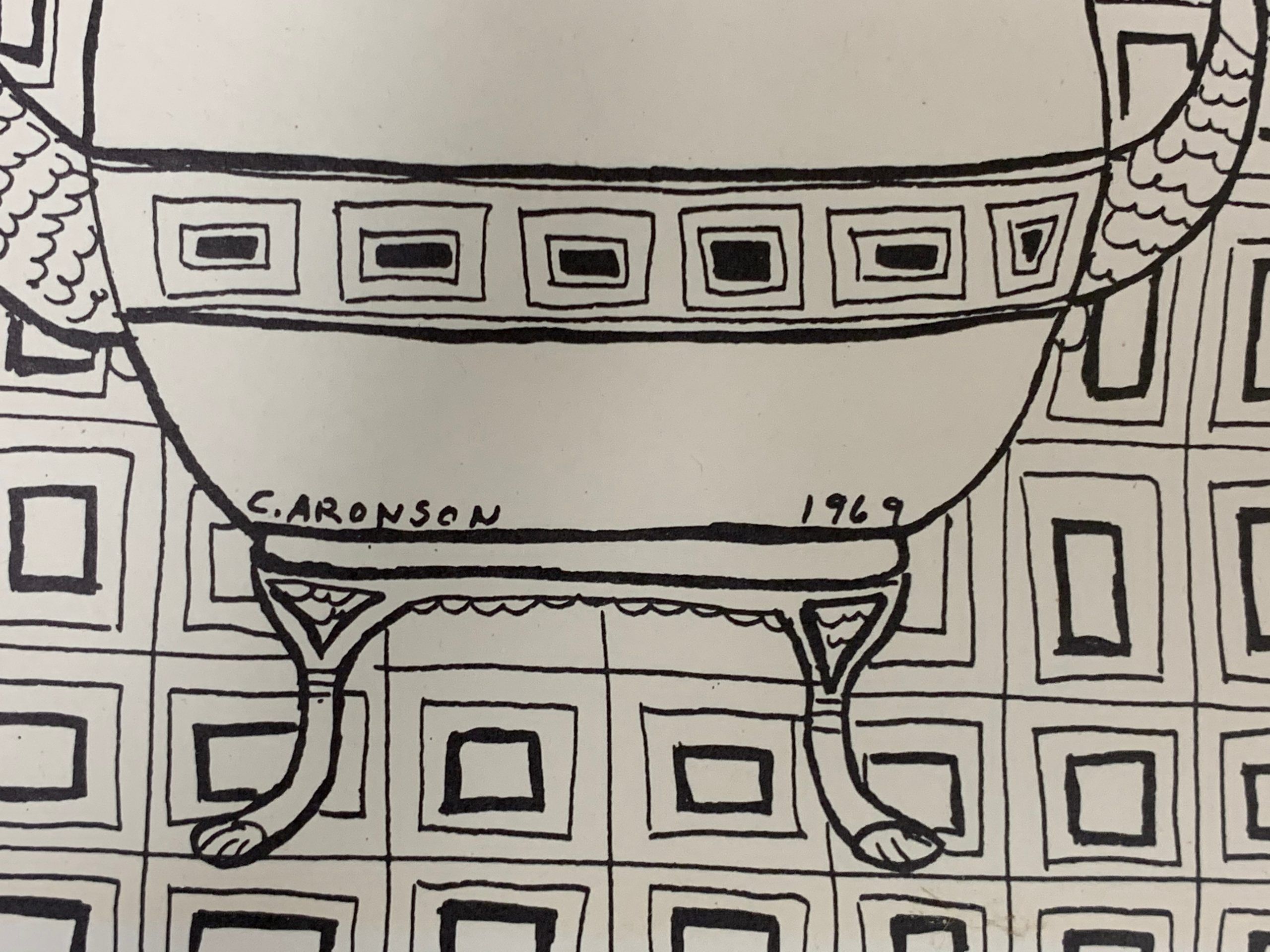 An early woodblock print by the accomplished painter.  Connie Aronson is primarily known for her vibrant use of color—but clearly she is equally adept working with little or no color.