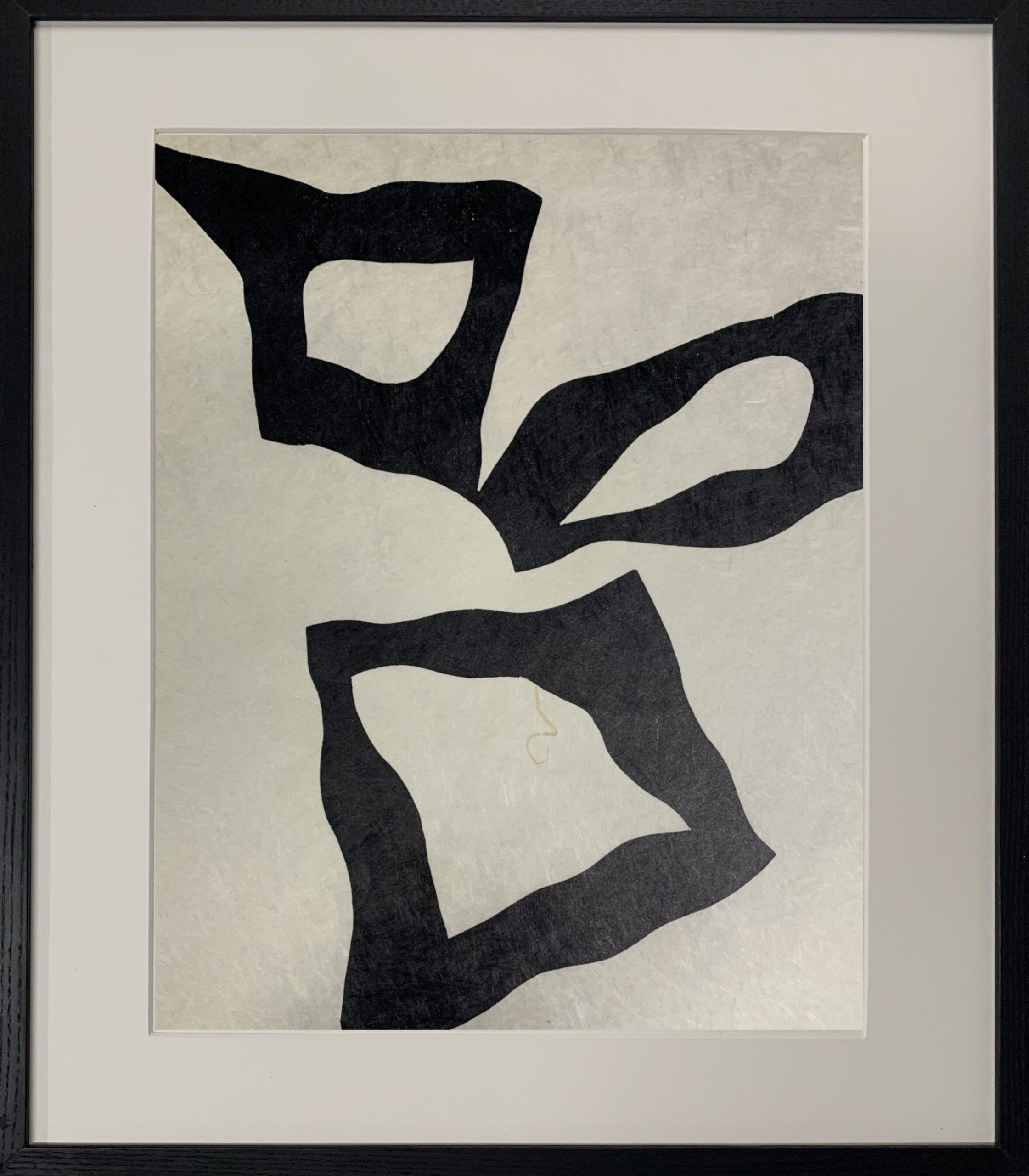 Custom framed in black-stained Ash behind 99% UV-filtering Plexiglass.  All conservation materials. Please note that this work was reframed after photographing. It was put in a larger frame to create a wider bottom margin to better present the picture.