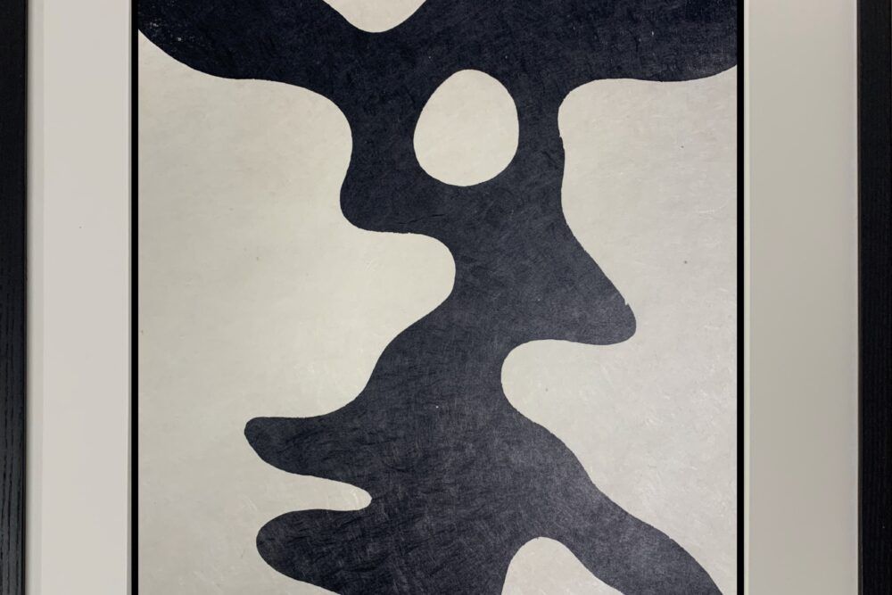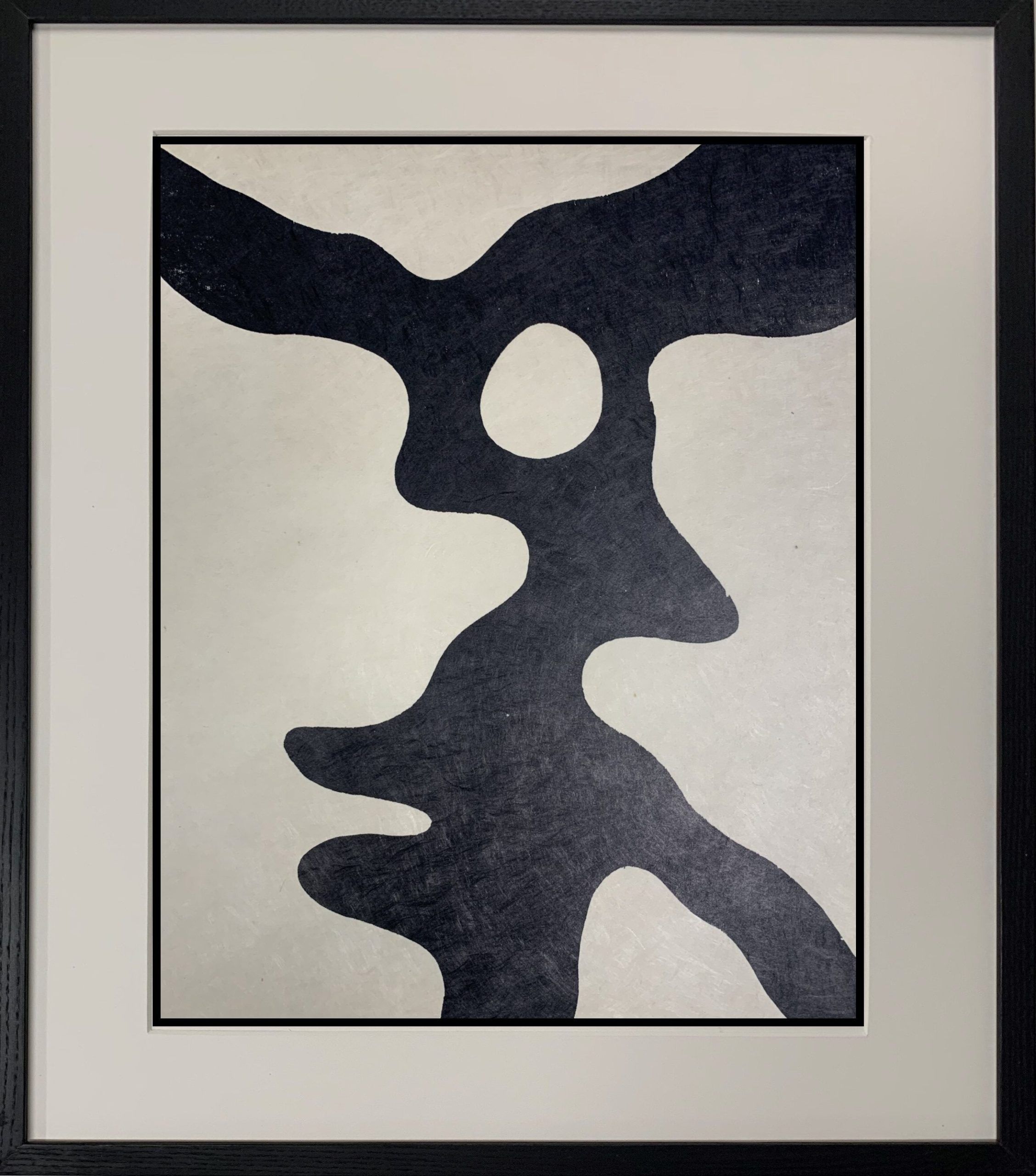 Custom framed in black-stained Ash behind 99% UV-filtering Plexiglass. All conservation materials. Please note that this work was reframed after photographing. It was put in a larger frame to create a wider bottom margin to better present the picture.