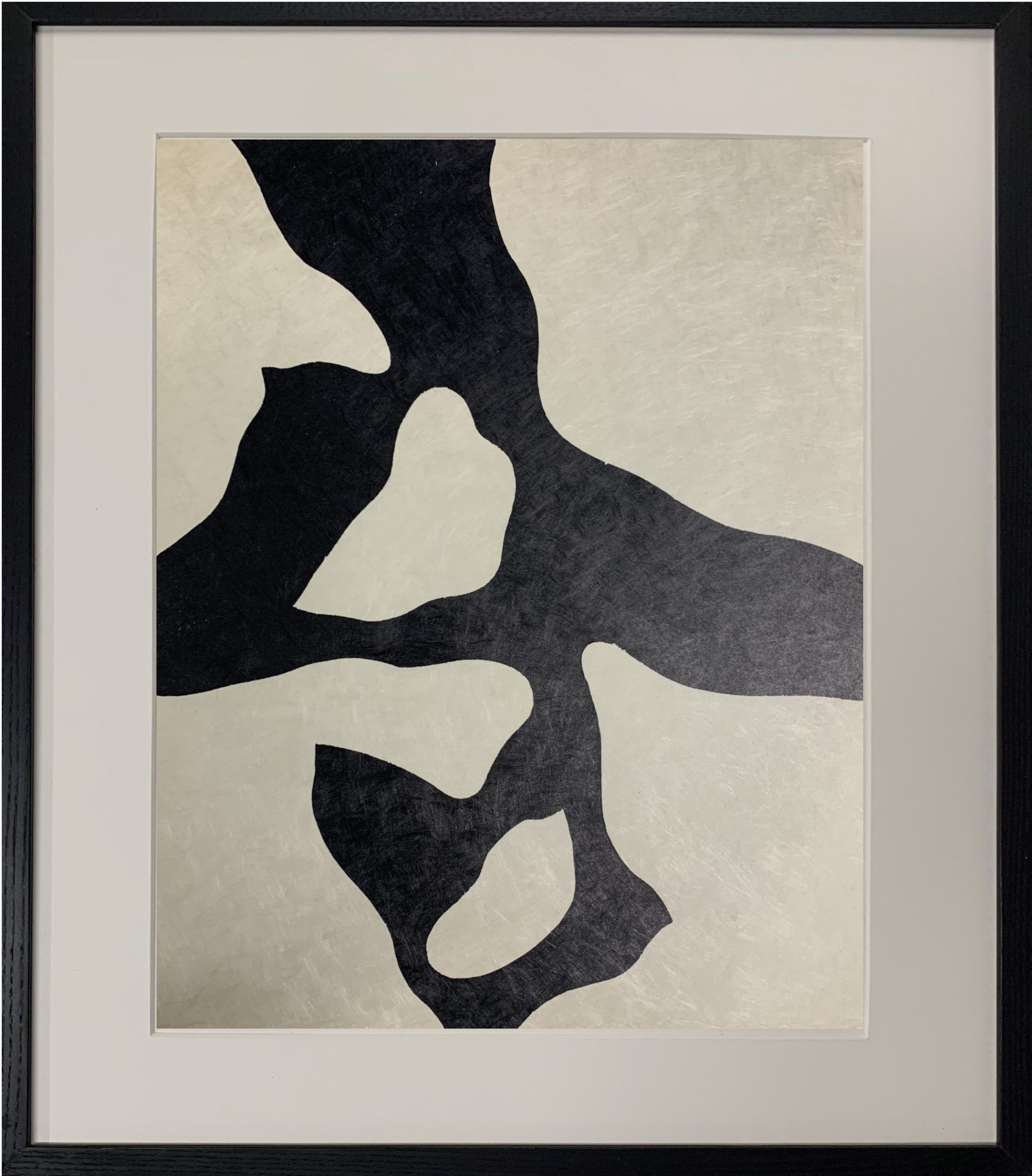 Custom framed in black-stained Ash behind 99% UV-filtering Plexiglass. All conservation materials. Please note that this work was reframed after photographing. It was put in a larger frame to create a wider bottom margin to better present the picture.