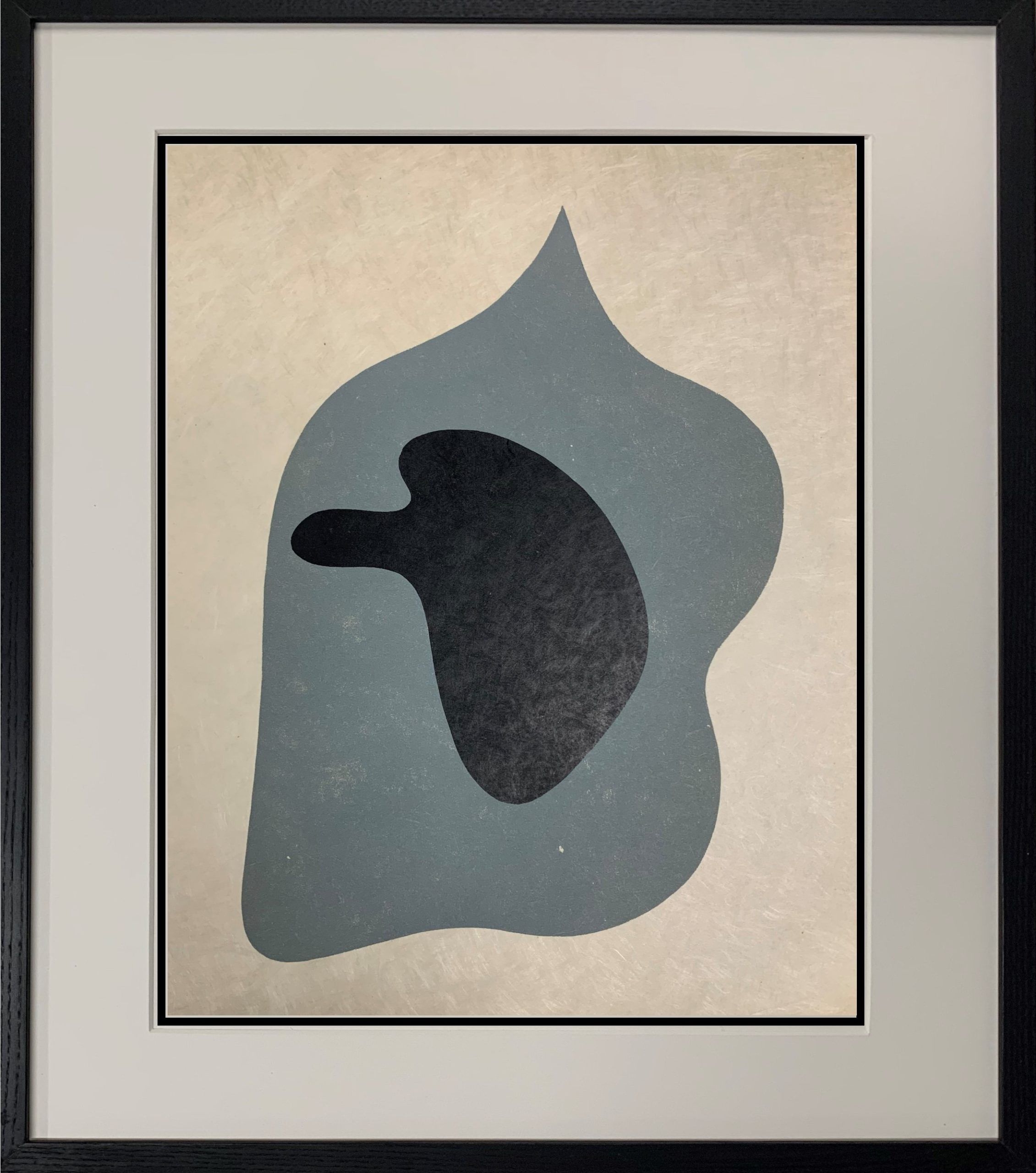 Custom framed in black-stained Ash behind 99% UV-filtering Plexiglass.  All conservation materials. Please note that this work was reframed after photographing. It was put in a larger frame to create a wider bottom margin to better present the picture.