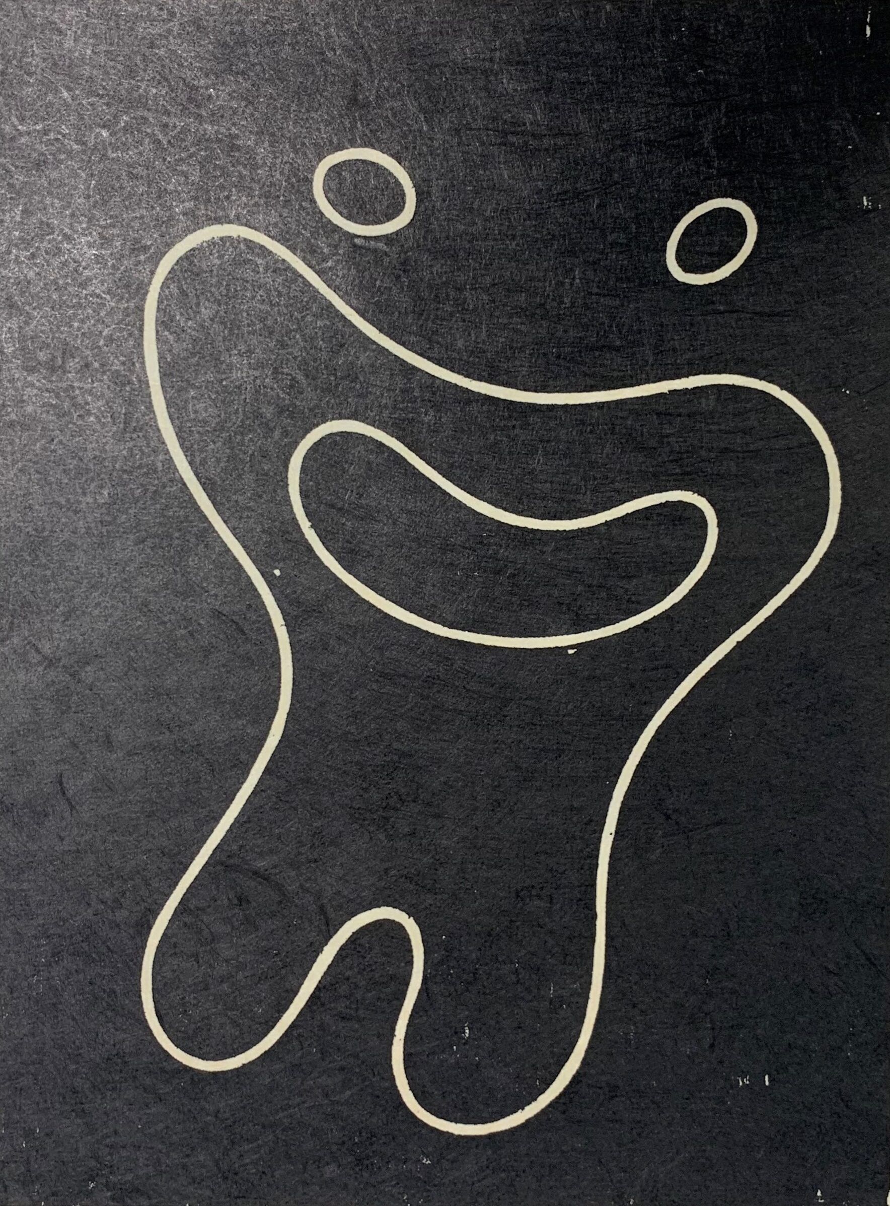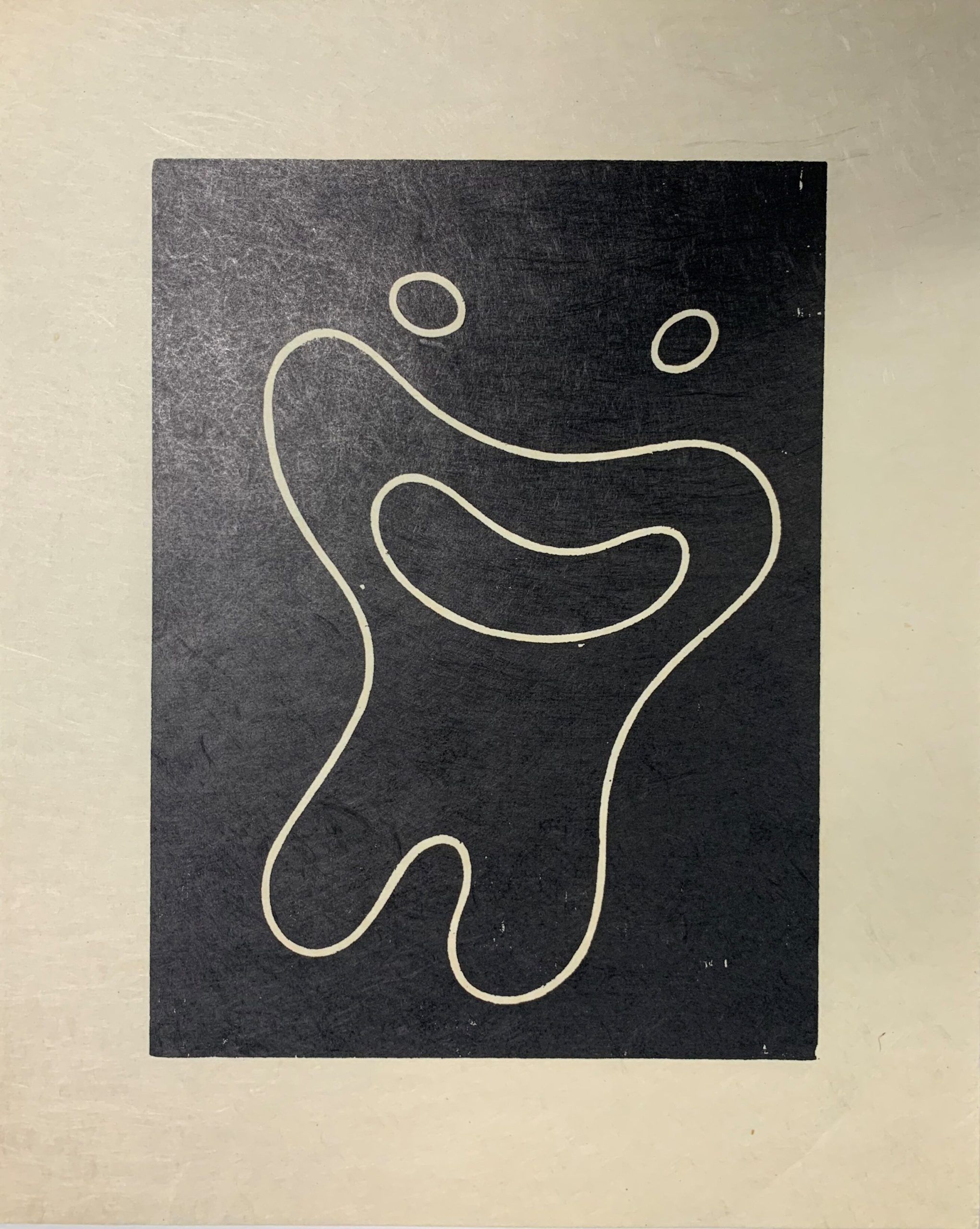Jean Arp’s Dreams and Projects portfolio, published in 1952, might have been the first of the works Valentin published.  The portfolio, printed by Fequet et Baudier in Paris, contains 28 beautiful and evocative woodcut prints.  This woodcut is from one of only 25 special sets of the portfolio which were printed on rich and lustrous Japan paper.