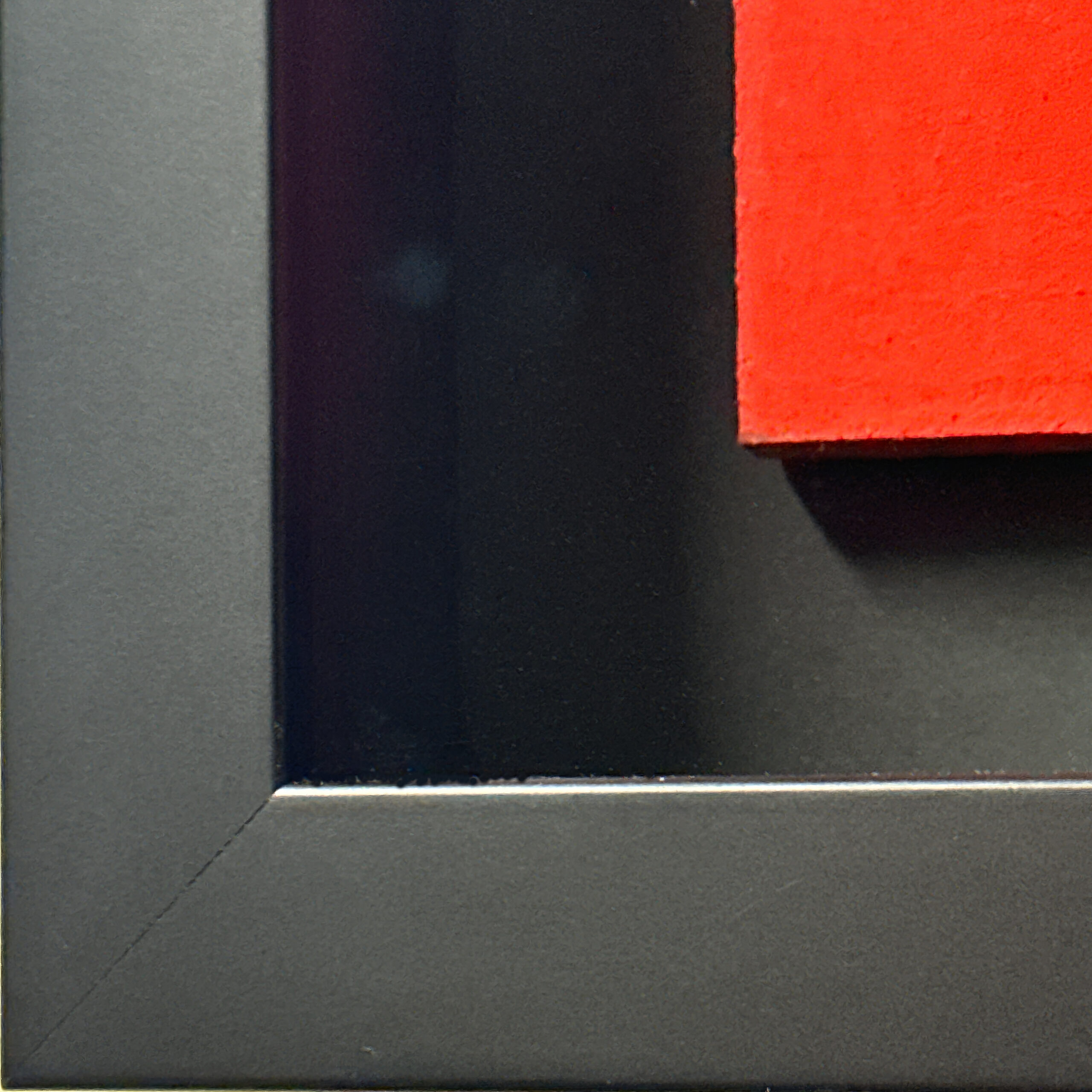 This work is framed in a solid black-painted Maple box and protected with low-reflecting Museum glass.