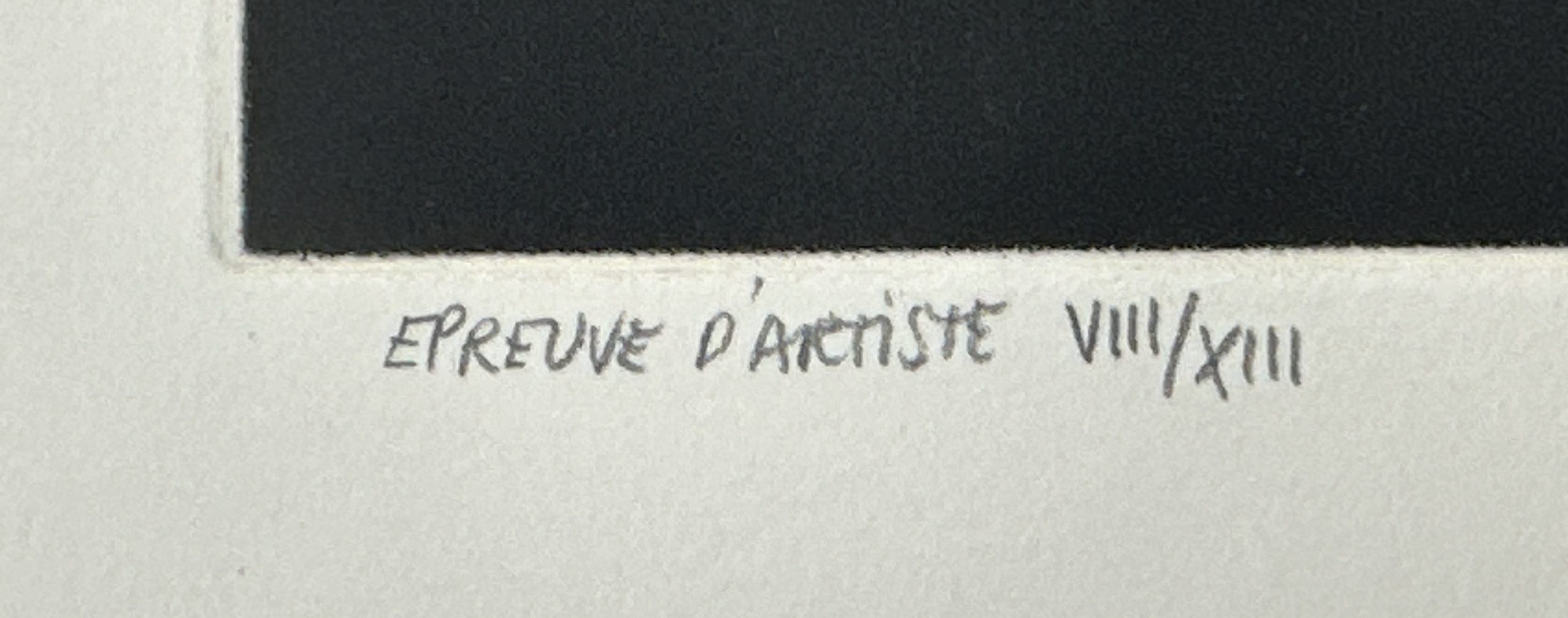 Signed by the artist in pencil, en recto lower right. Titled en recto lower center. Editioned en recto lower left.
