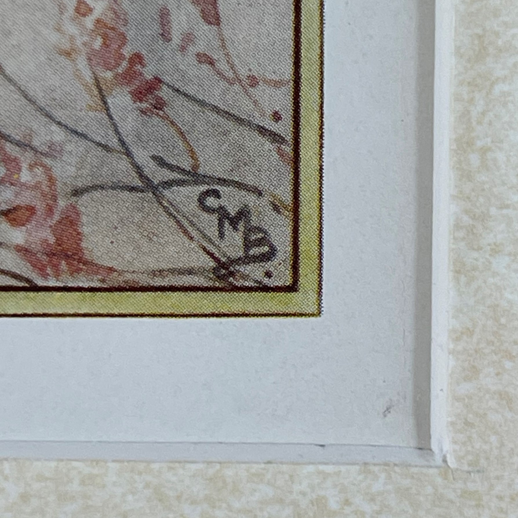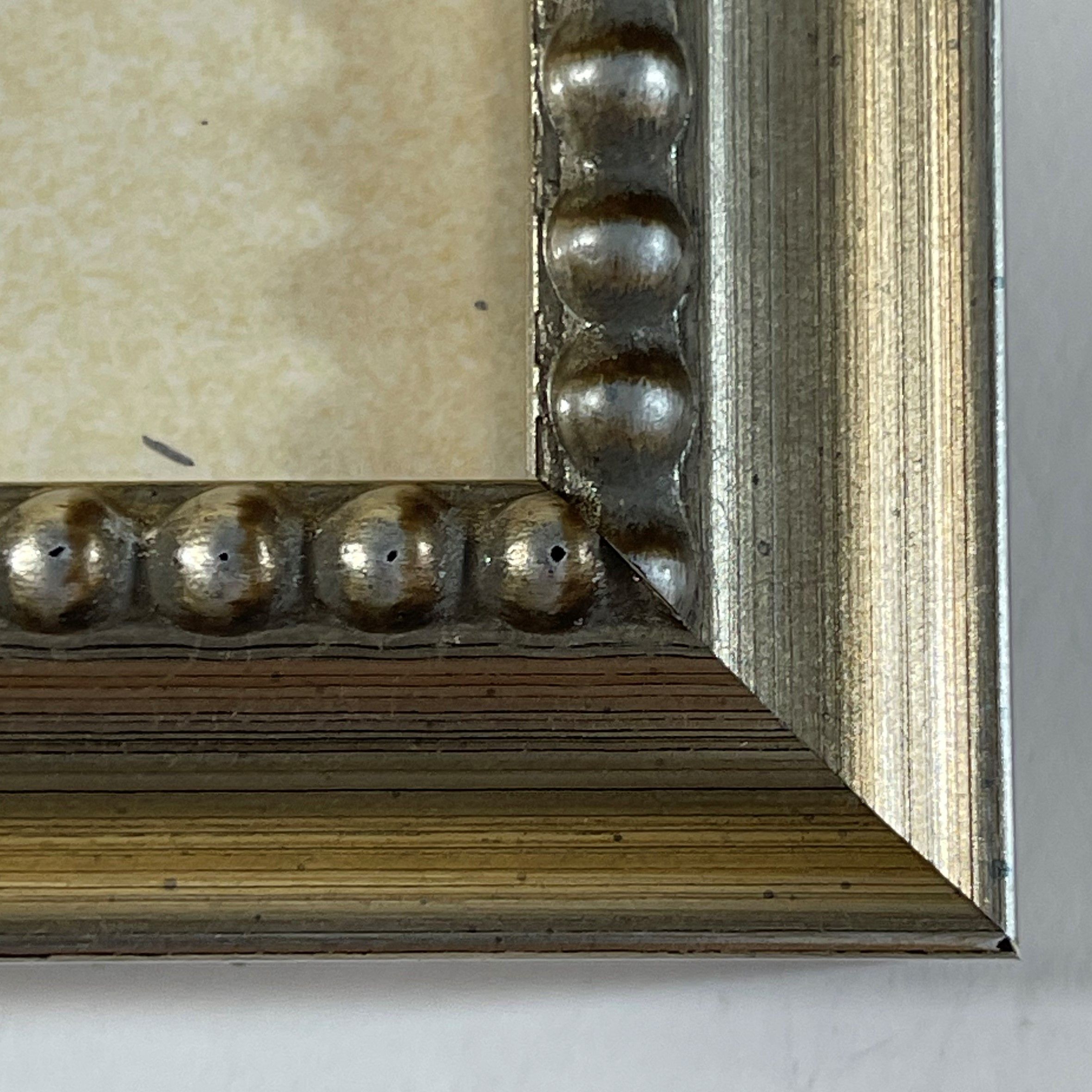 Custom matted and framed in an ornamented silver wood frame behind 99.9% UV-filtering art glass using only conservation materials.