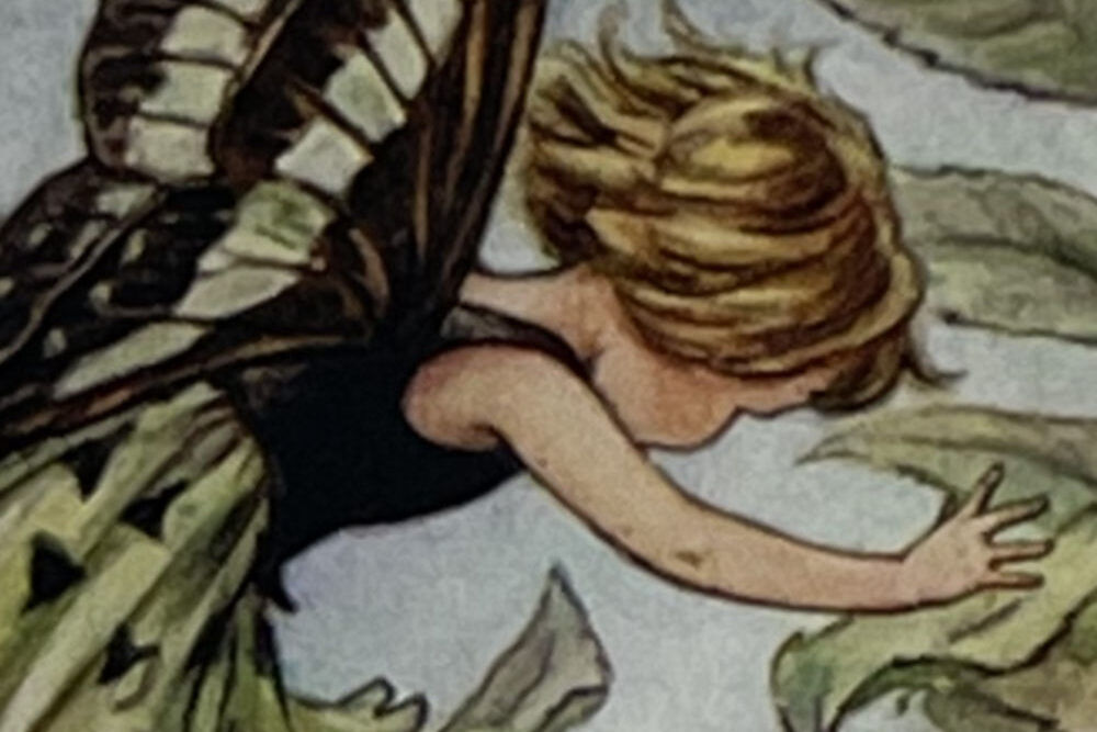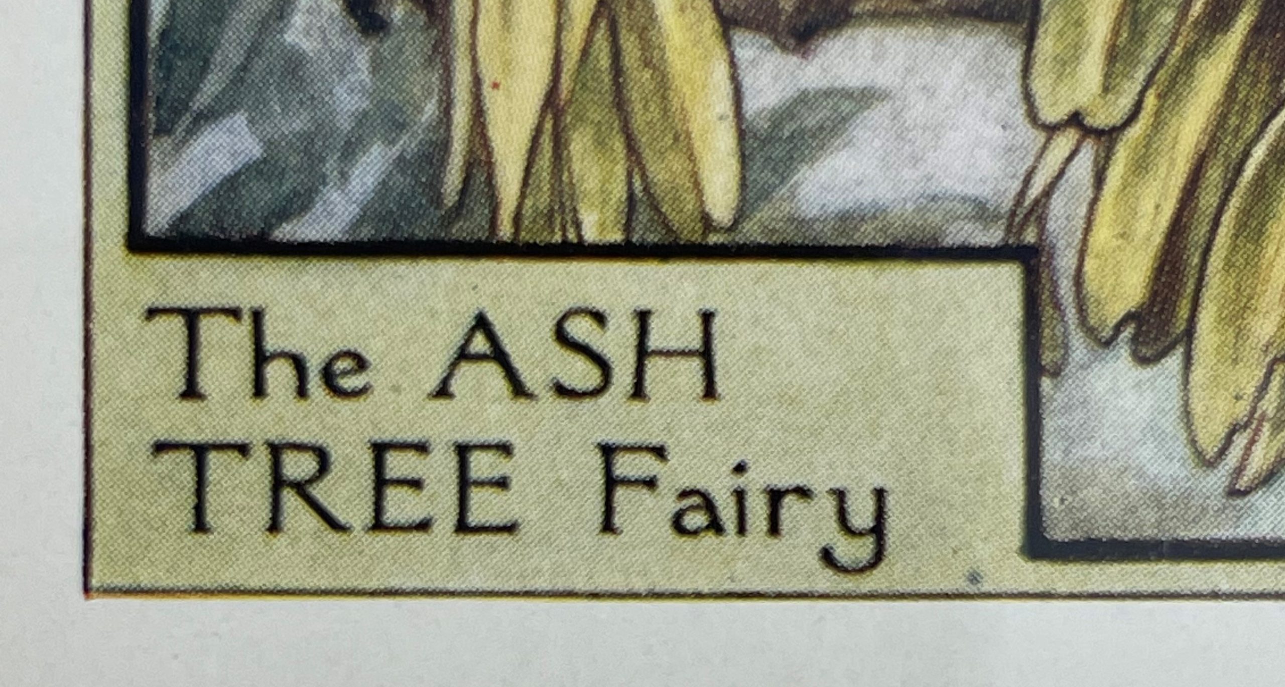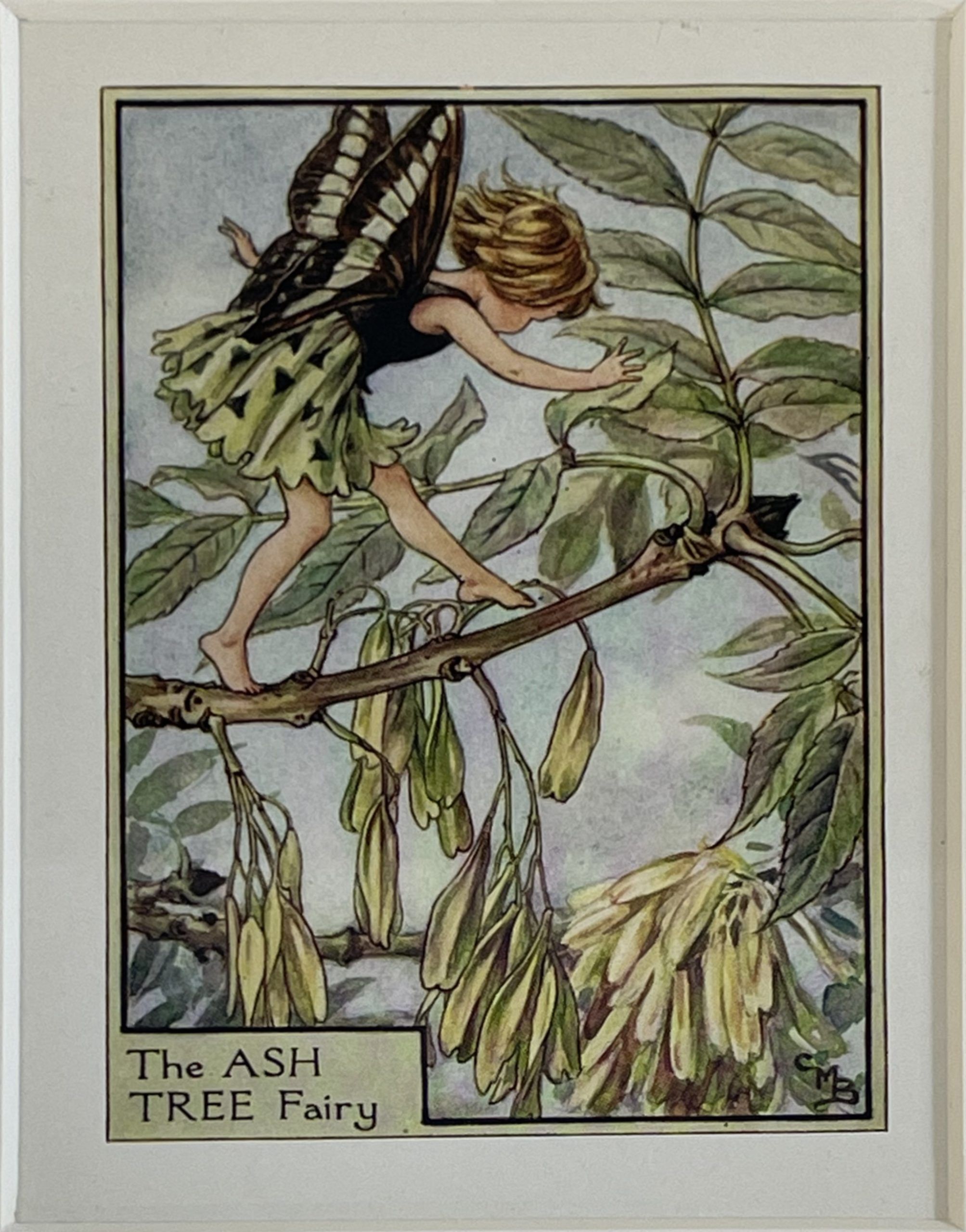 Cecily Mary Barker’s charming illustration of the elusive Ash Tree Fairy, who flits among the blossoms and helps to keep the tree happy, rarely seen but essential to the health of the tree.