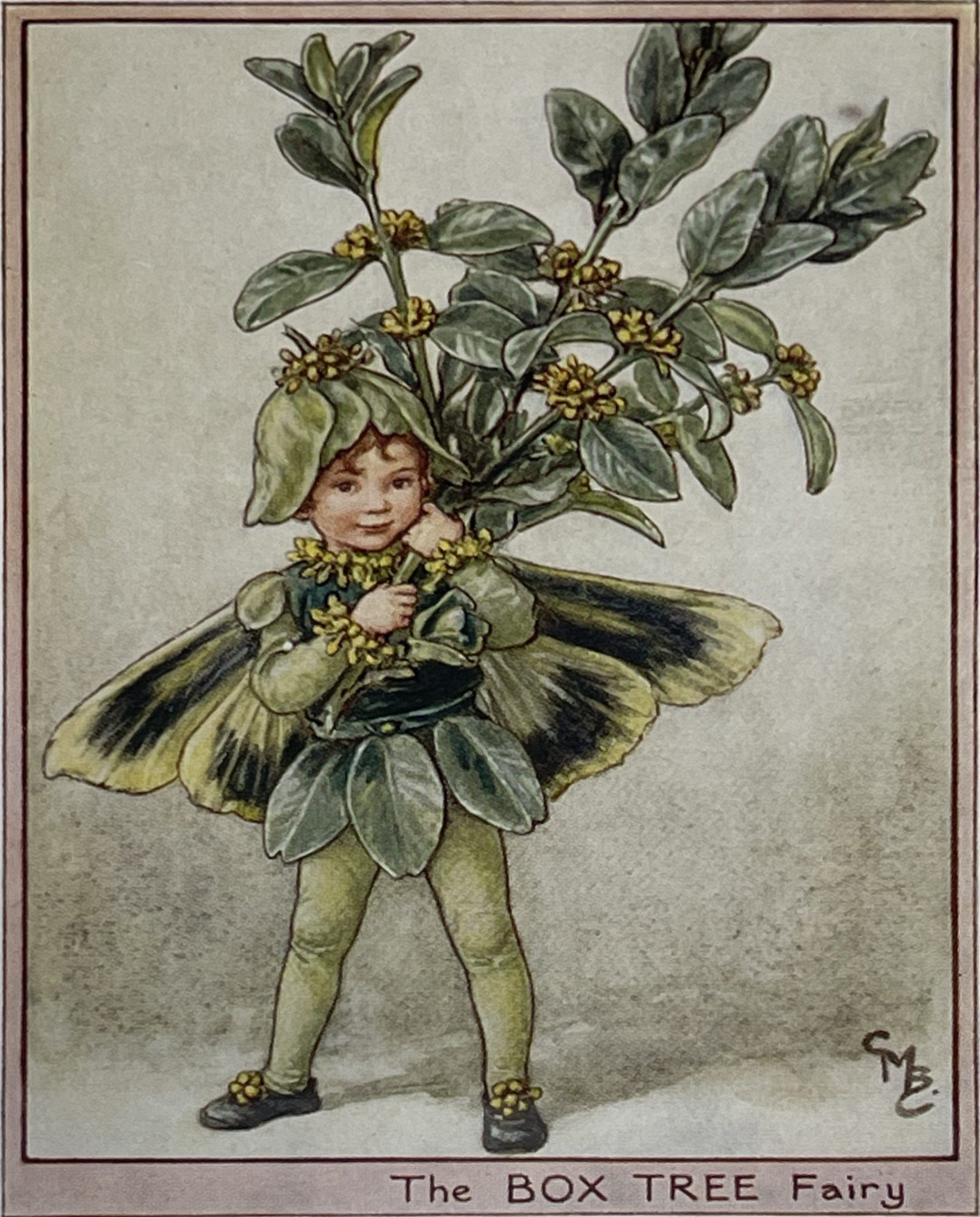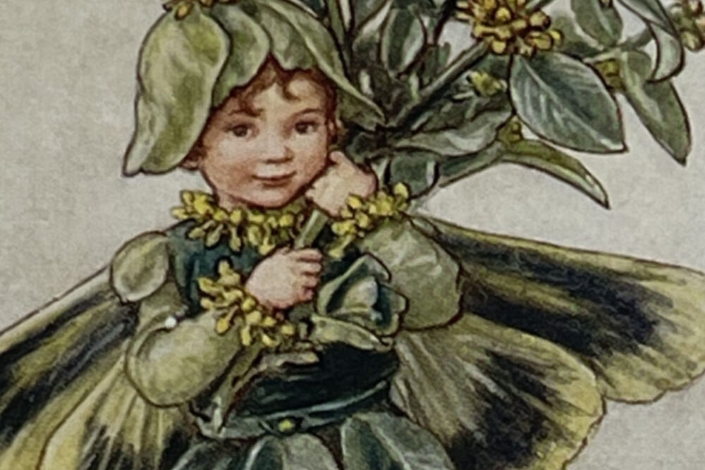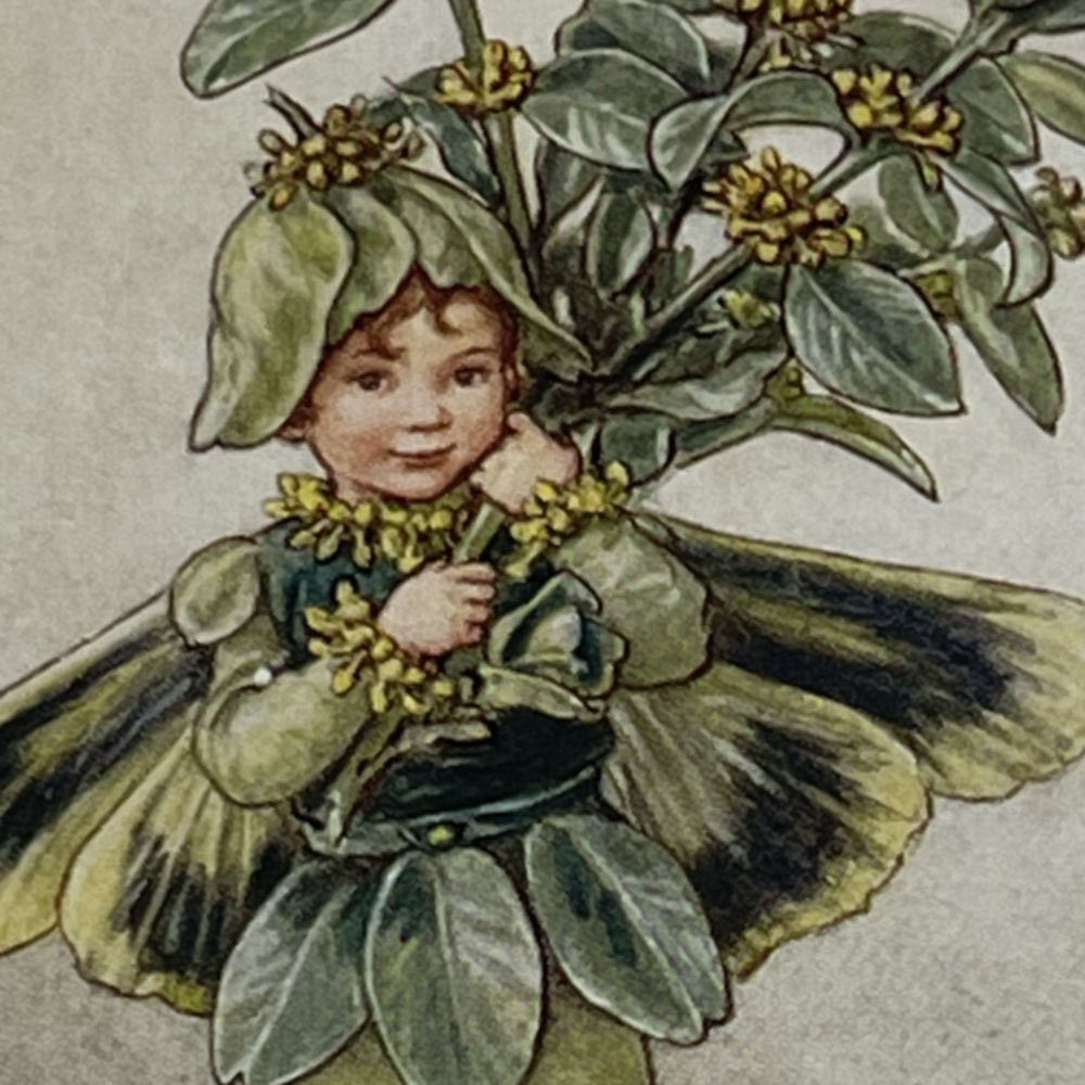 Cecily Mary Barker’s charming illustration of the elusive Box Tree Fairy, who flits among the blossoms and helps to keep the tree happy, rarely seen but essential to the health of the tree.
