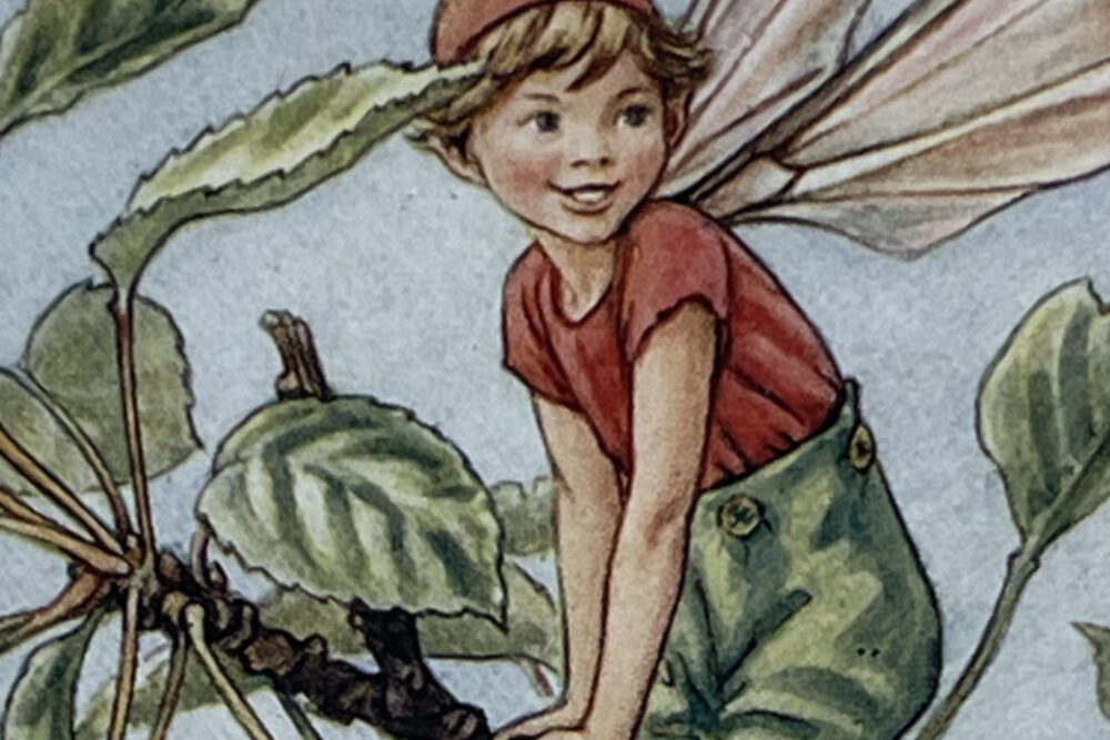 Cecily Mary Barker’s charming illustration of the elusive Cherry Tree Fairy, who flits among the blossoms and helps to keep the tree happy, rarely seen but essential to the health of the tree.