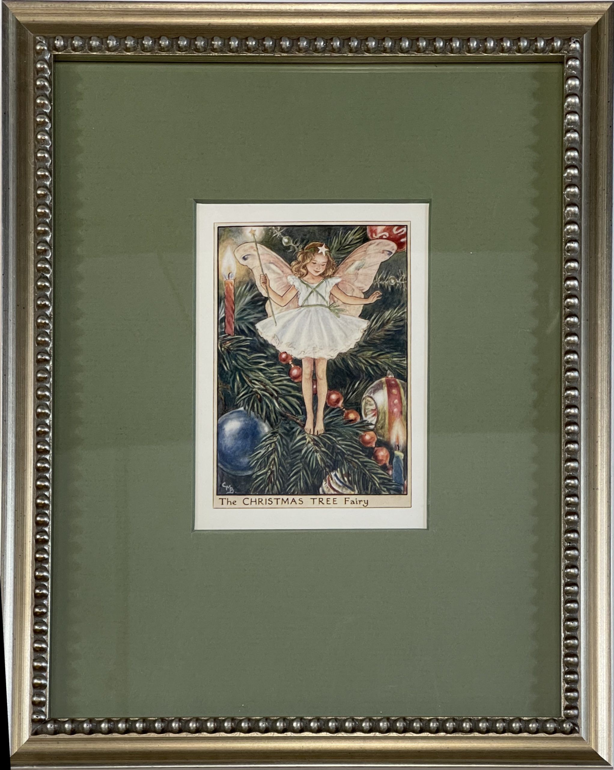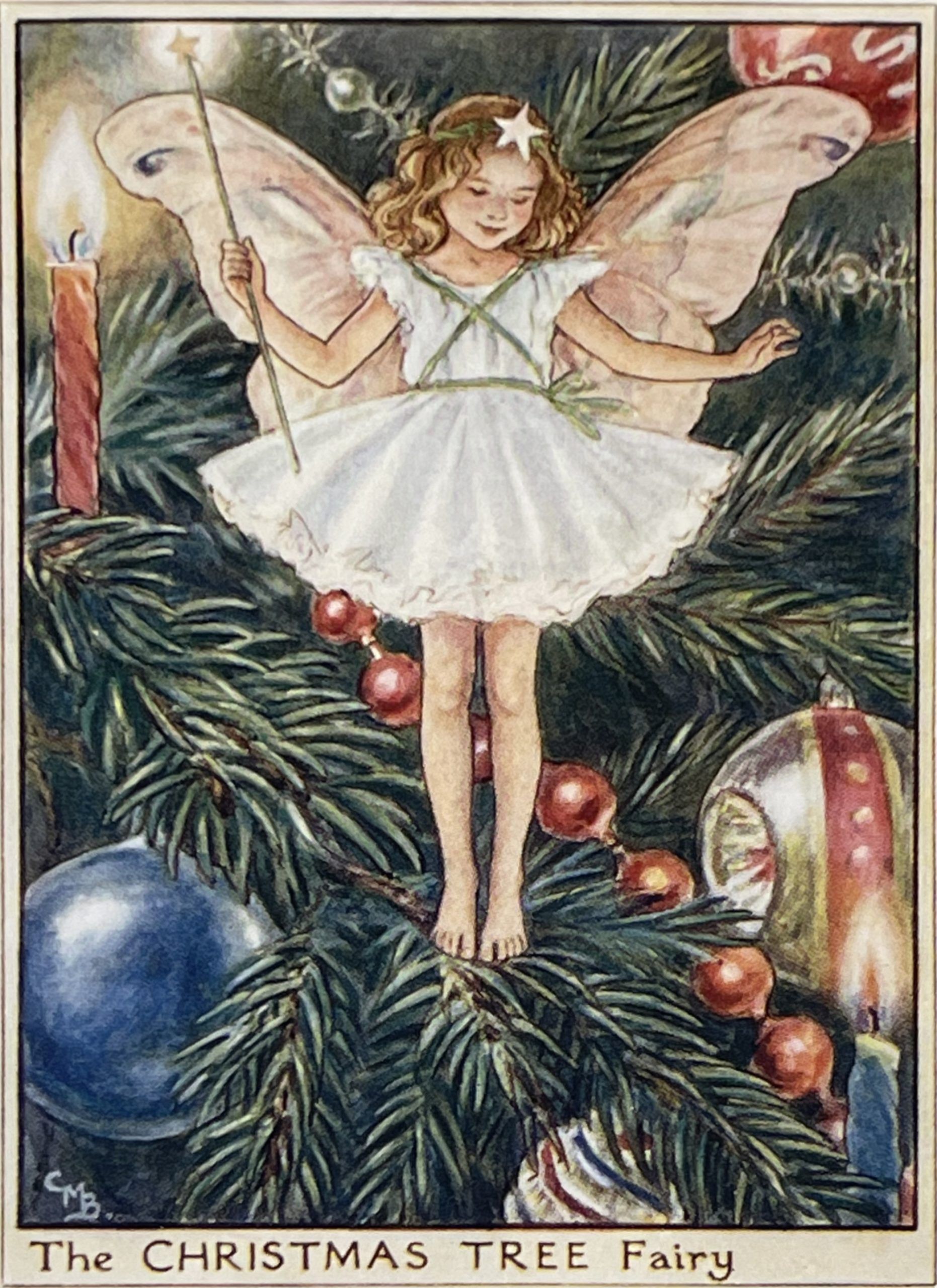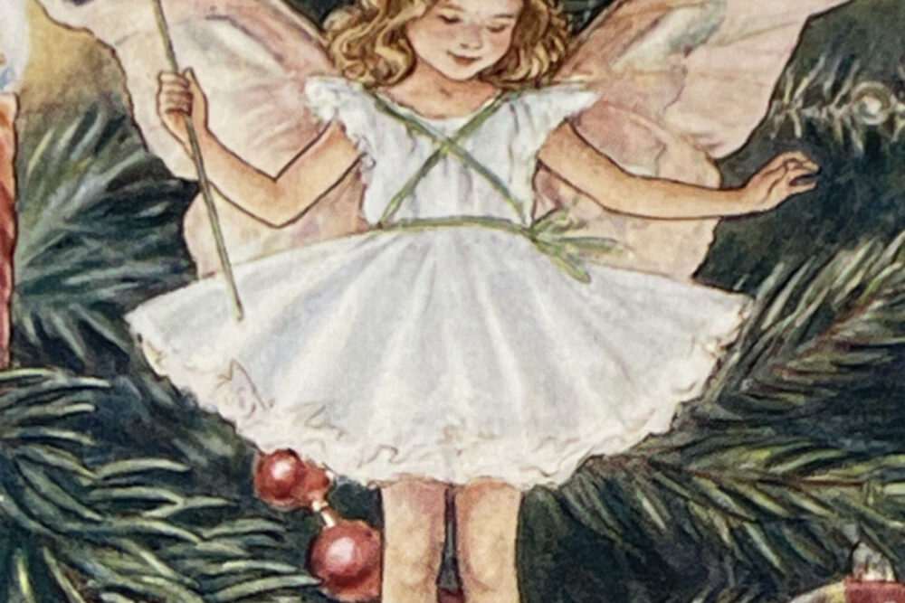 Cecily Mary Barker’s charming illustration of the elusive Christmas Tree Fairy, who flits among the boughs and helps to keep the tree happy, rarely seen but essential to the health of the tree.