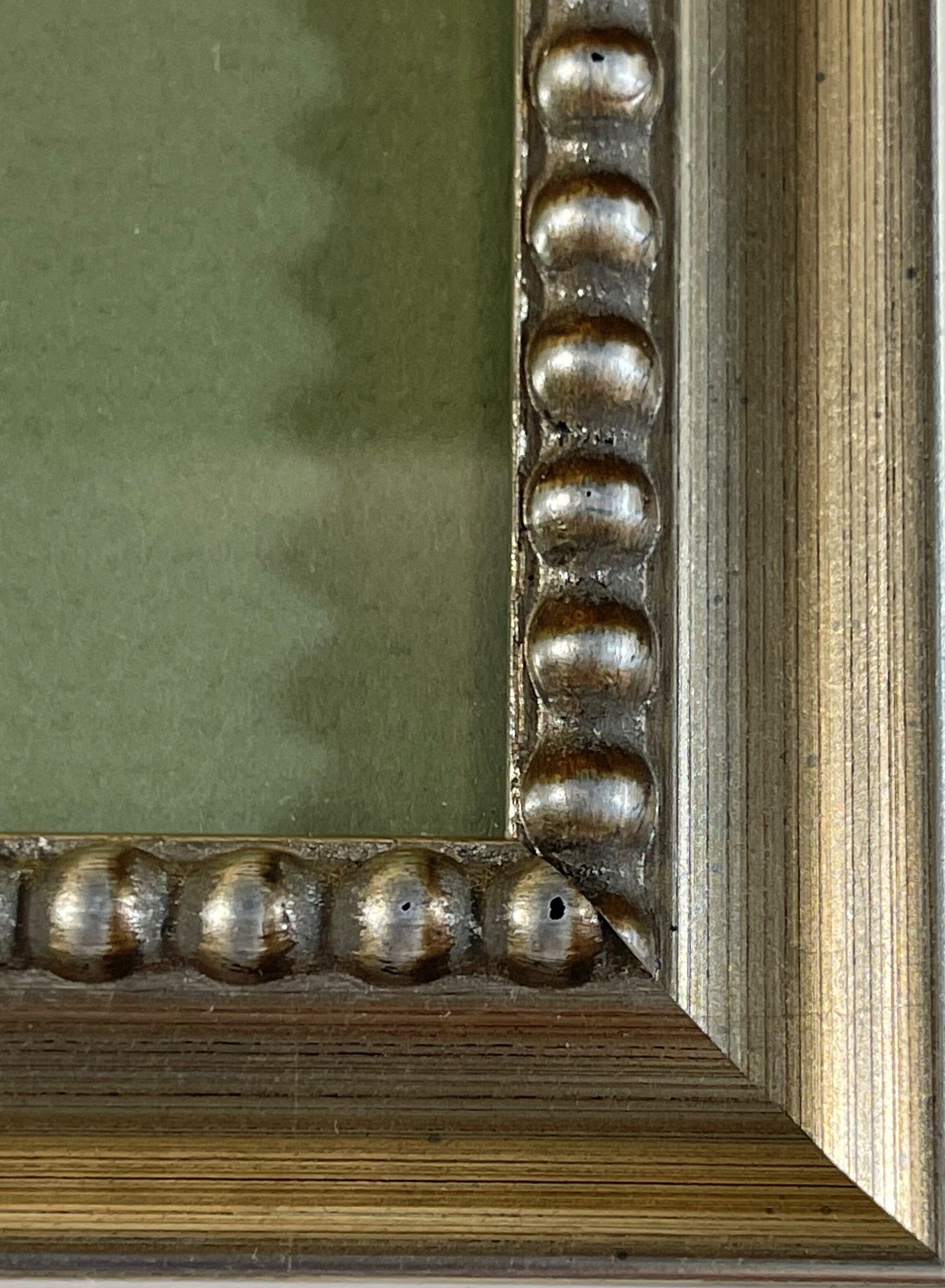 Custom matted and framed in an ornamented silver wood frame behind 99.9% UV-filtering art glass using only conservation materials.