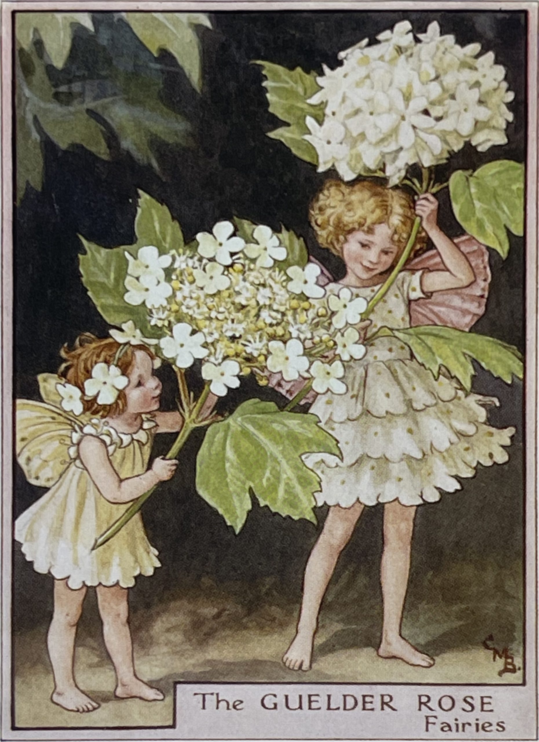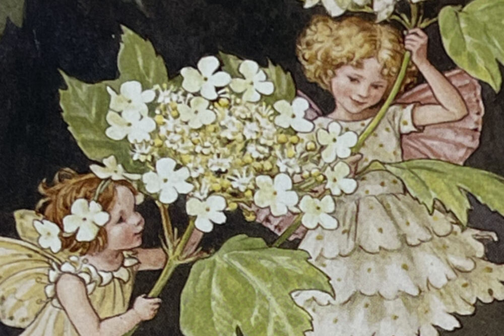 Cecily Mary Barker’s charming illustration of the elusive Guelder Rose Fairy, who flits among the blossoms and helps to keep the tree happy, rarely seen but essential to the health of the tree.
