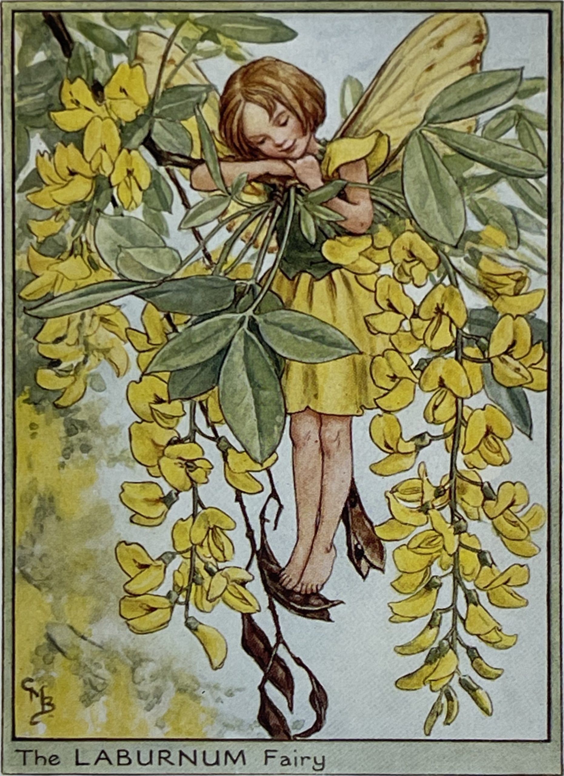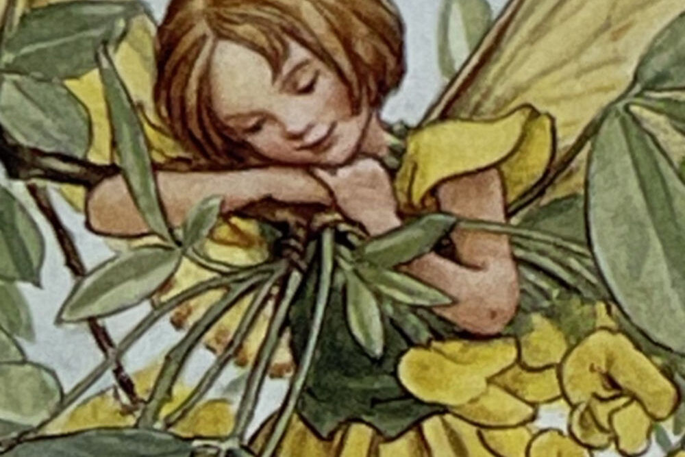 Cecily Mary Barker’s charming illustration of the elusive Laburnum fairy, who flits among the blossoms and helps to keep the tree happy, rarely seen but essential to the health of the tree.