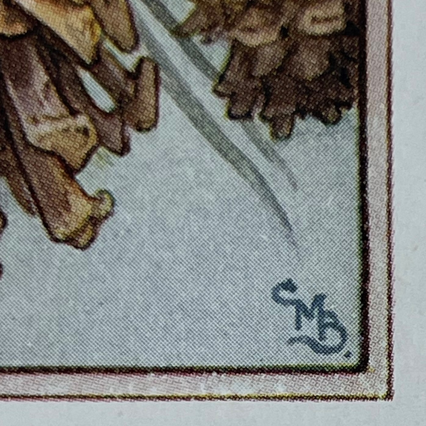 Cecily Mary Barker’s charming illustration of the elusive Pine Tree Fairy, whose playful antics with the pinecones keep the tree happy, rarely seen but essential to the health of the tree.