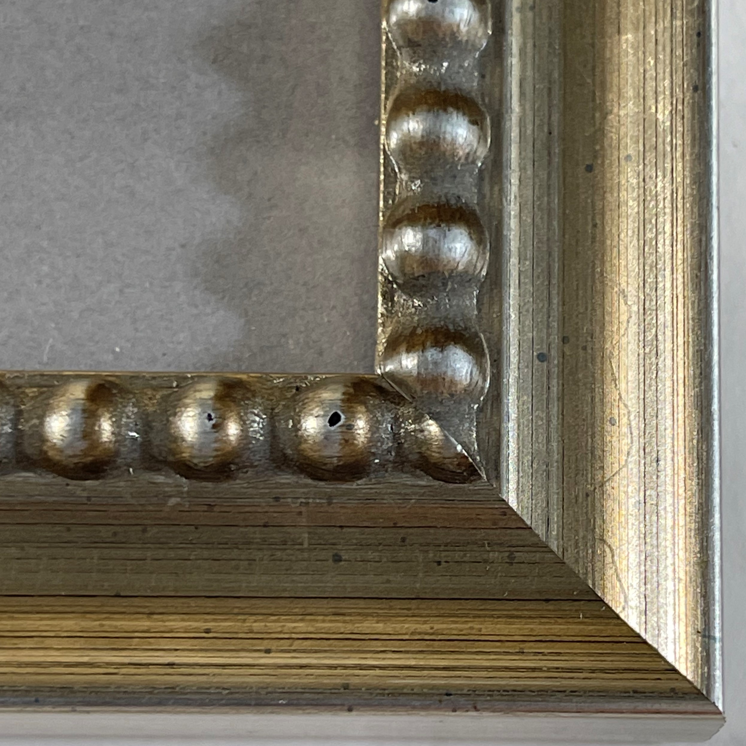 Custom matted and framed in an ornamented silver wood frame behind 99.9% UV-filtering art glass using only conservation materials.