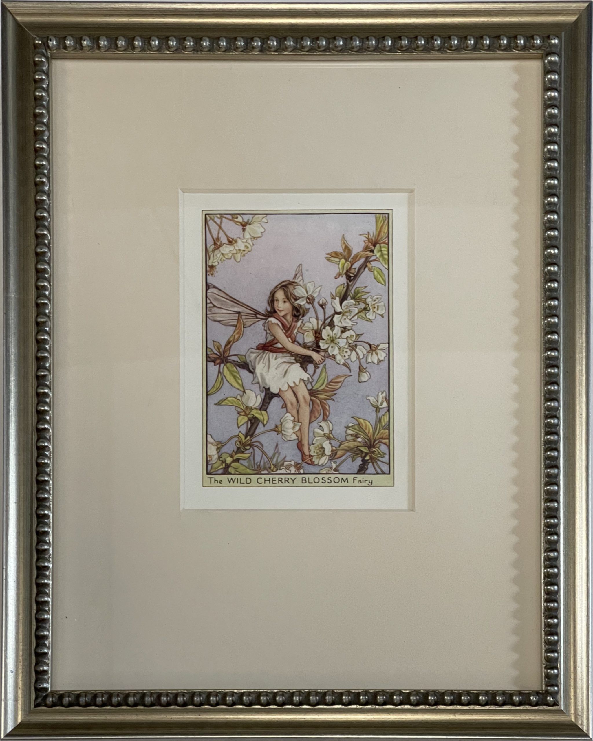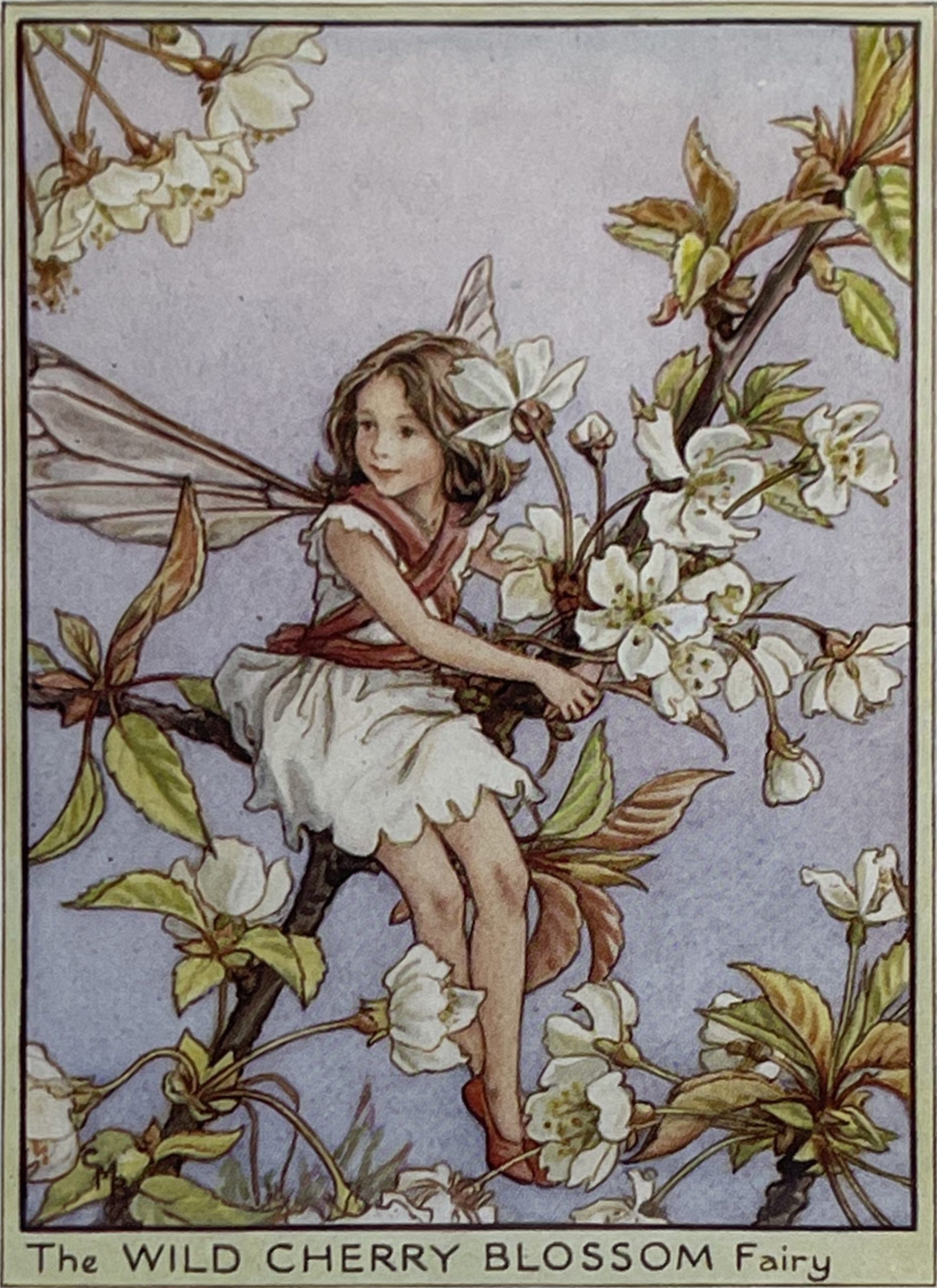 Cecily Mary Barker’s charming illustration of the elusive Wild Cherry Blossom fairy, who flits among the blossoms and helps to keep the tree happy, rarely seen but essential to the health of the tree.