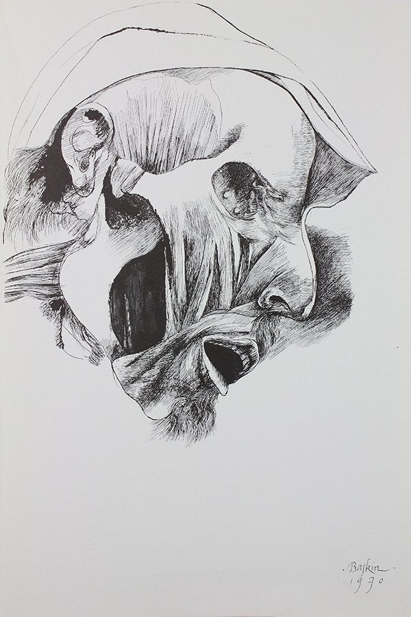 Editions Medicina Rara, Ltd., of New York commissioned Leonard Baskin’s Ars Anatomica, a portfolio of thirteen prints made by lithographic transfer from pen & ink drawings.