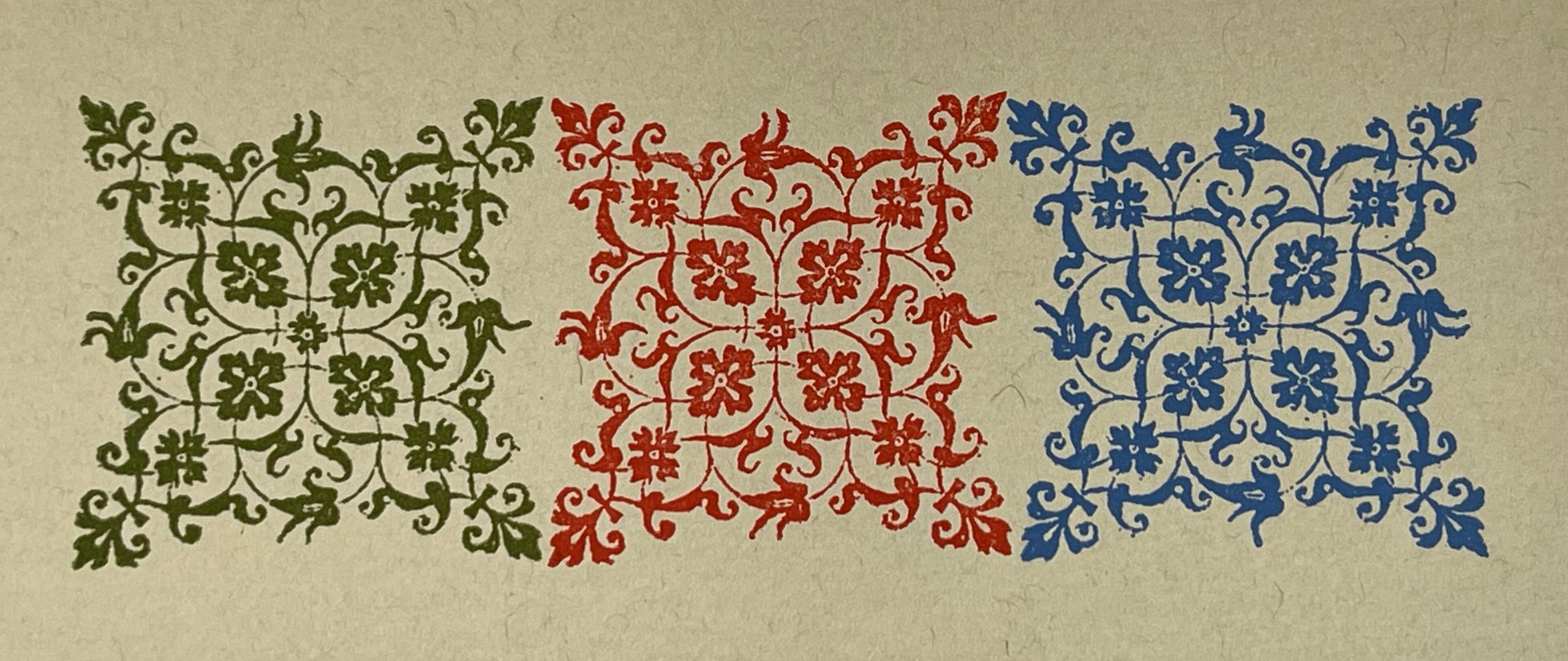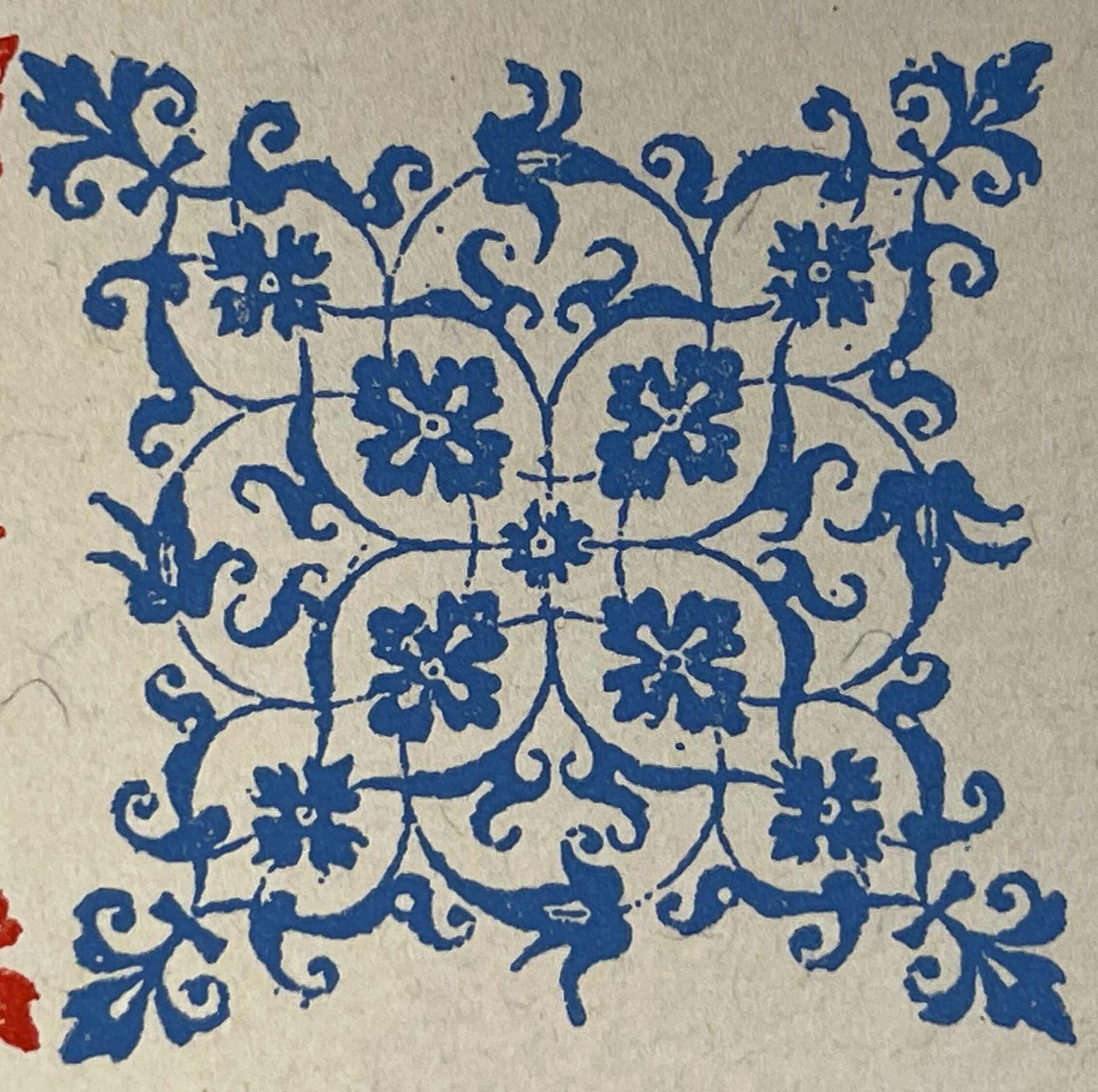 In 1968, Gehenna Press—the fine bindings publisher founded and run by artist Leonard Baskin—published Culs de Lampe, a booklet of unbound leaves of Nideggen and Fabriano blue and white handmade papers on which culs de lampe from Sixteenth and Seventeenth Century books were skillfully printed by Gehenna’s pressman, Harold McGrath.