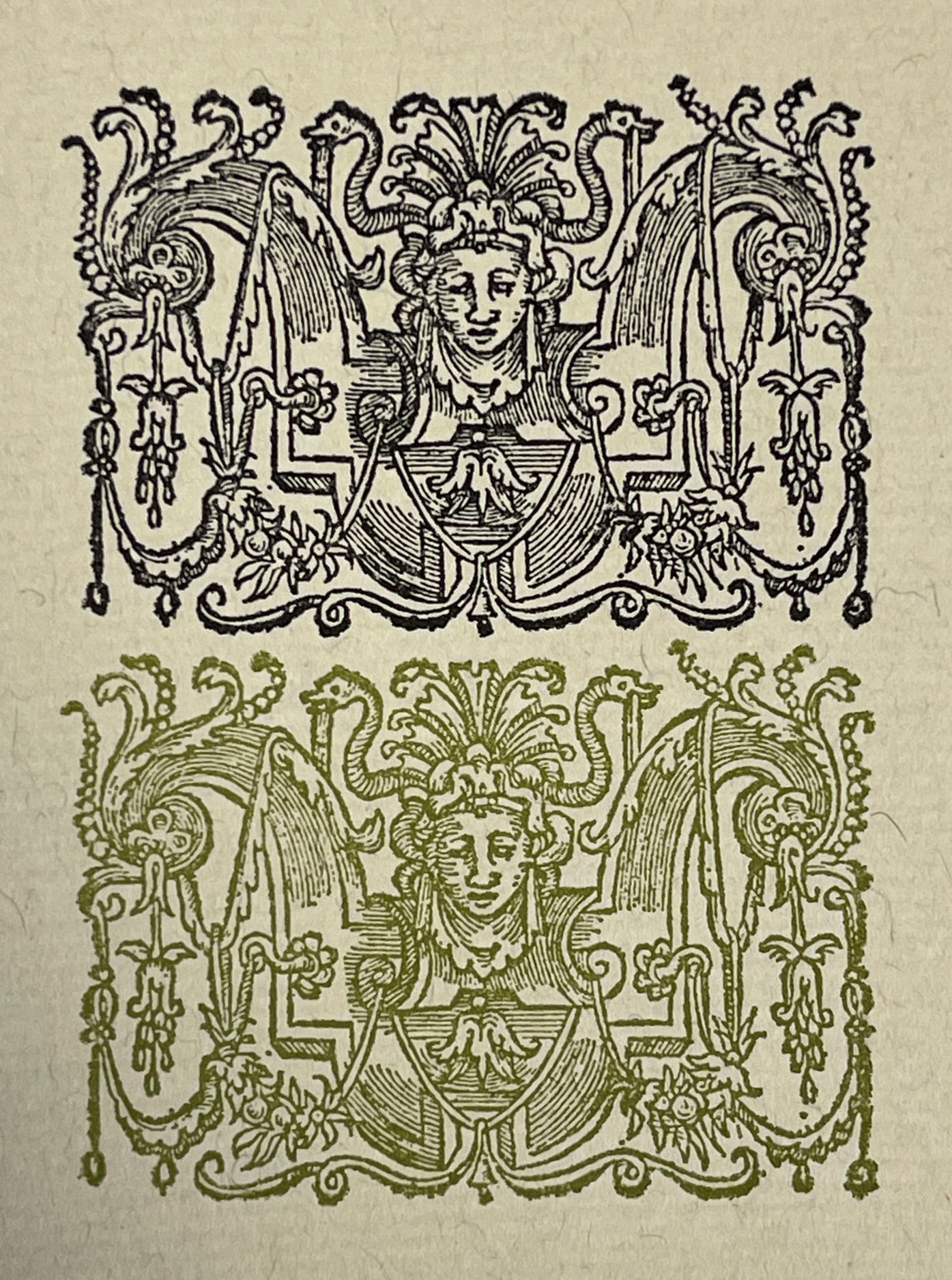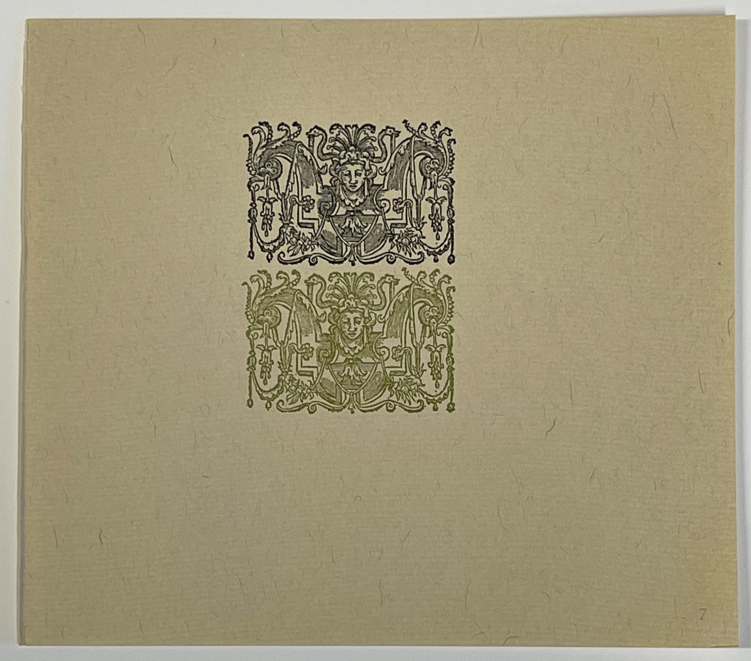 In 1968, Gehenna Press—the fine bindings publisher founded and run by artist Leonard Baskin—published Culs de Lampe, a booklet of unbound leaves of Nideggen and Fabriano blue and white handmade papers on which culs de lampe from Sixteenth and Seventeenth Century books were skillfully printed by Gehenna’s pressman, Harold McGrath.