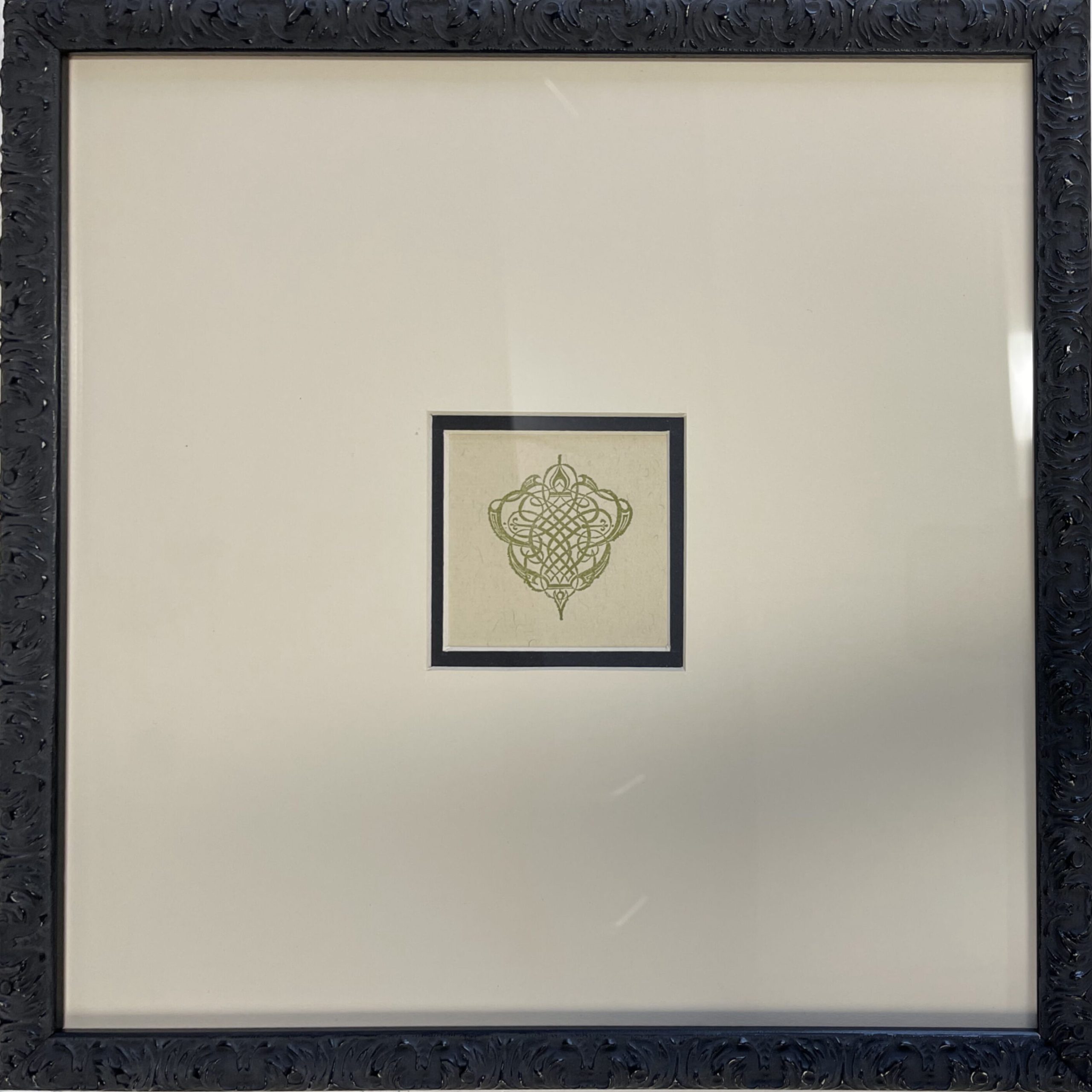 Custom matted and framed in a fine decorative wooden frame behind 99% UV-filtering art glass. All conservation materials.