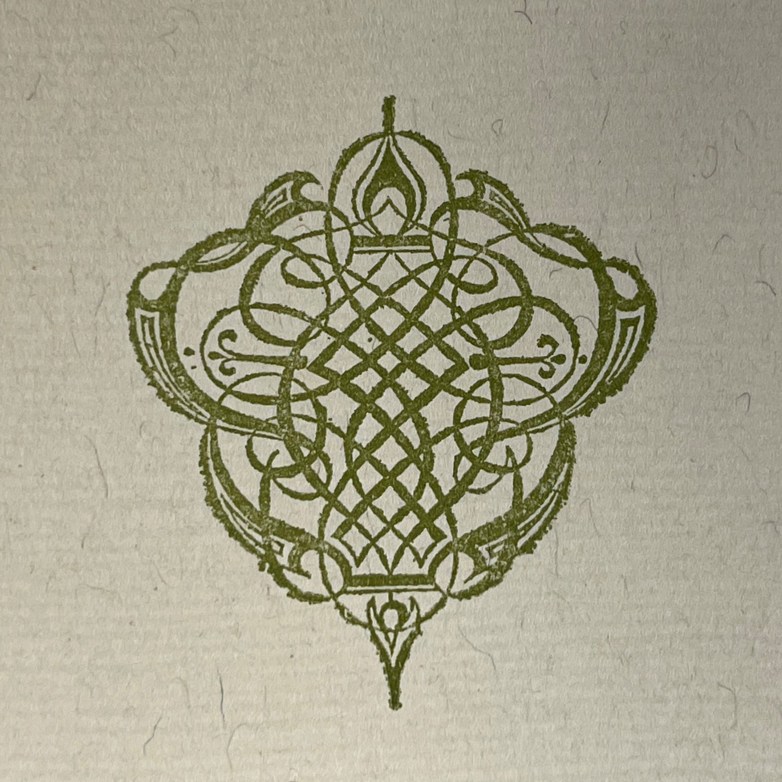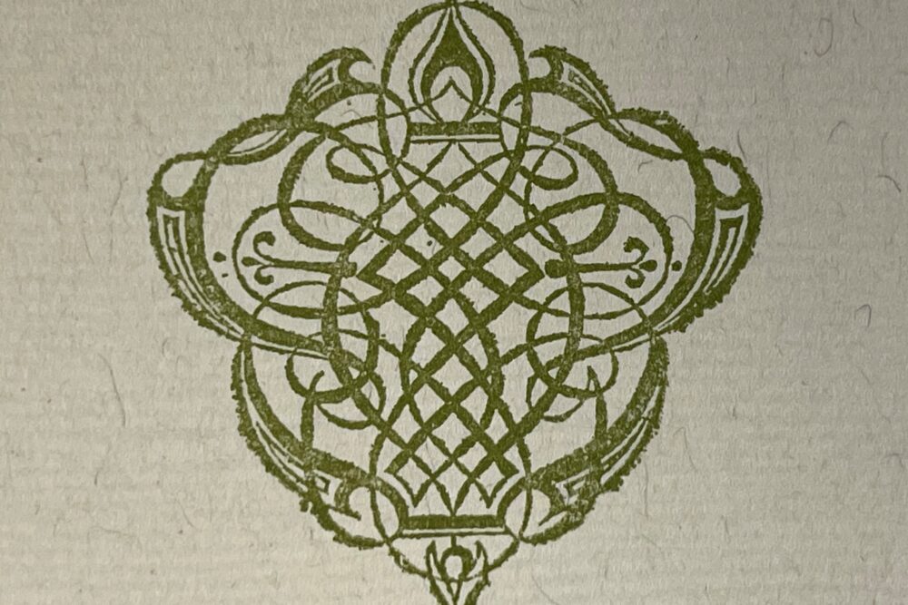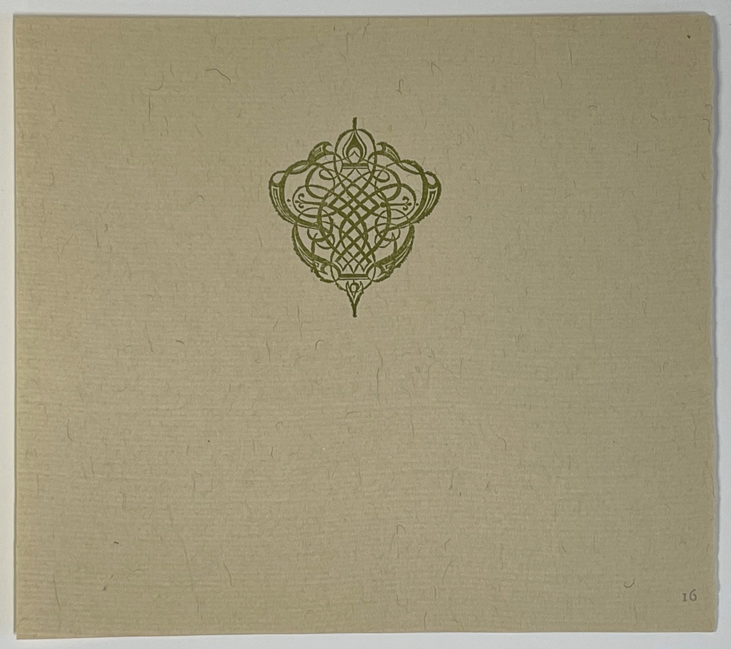 In 1968, Gehenna Press—the fine bindings publisher founded and run by artist Leonard Baskin—published Culs de Lampe, a booklet of unbound leaves of Nideggen and Fabriano blue and white handmade papers on which culs de lampe from Sixteenth and Seventeenth Century books were skillfully printed by Gehenna’s pressman, Harold McGrath.