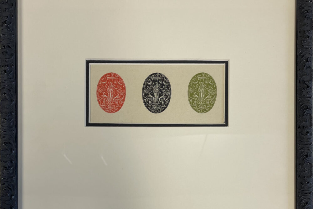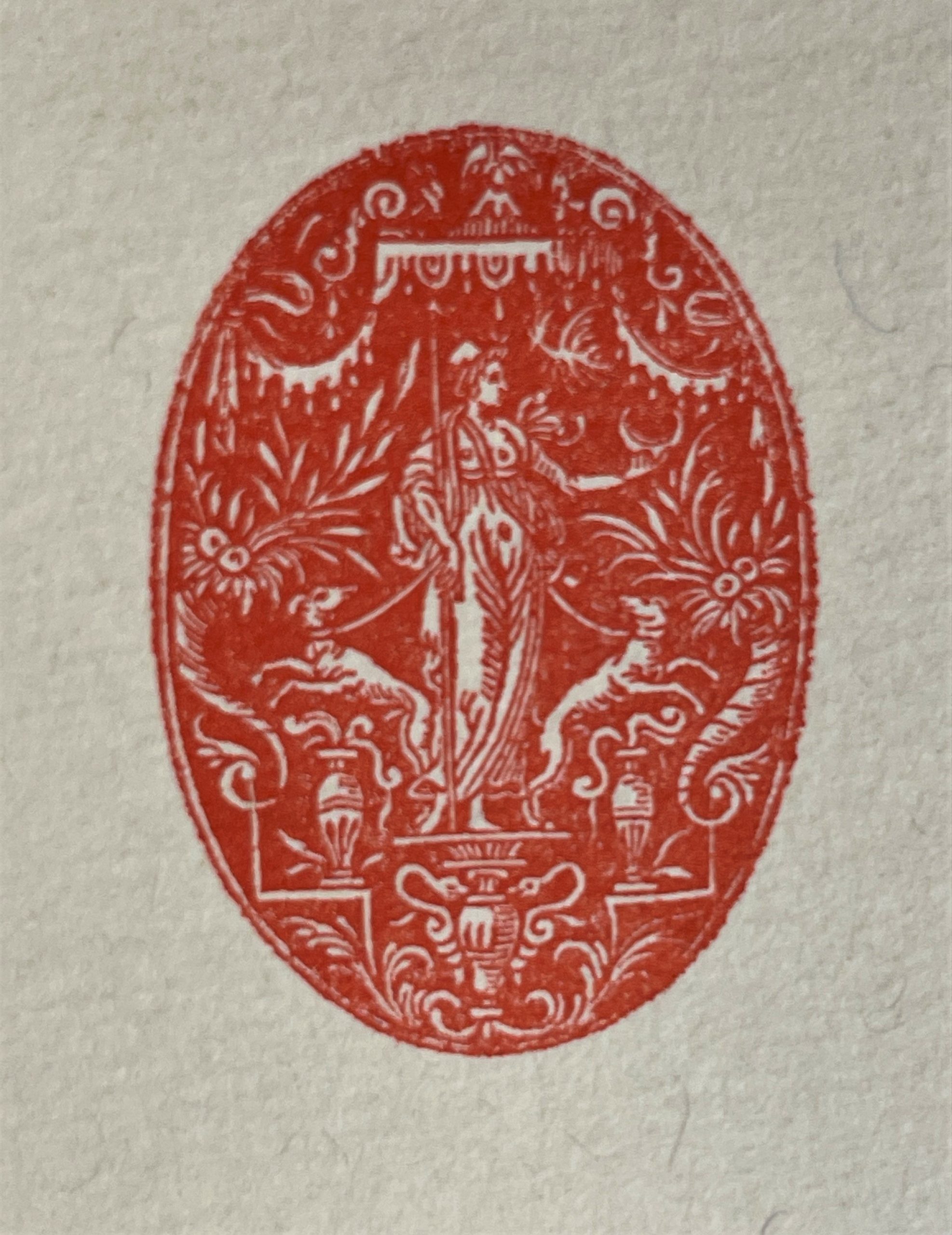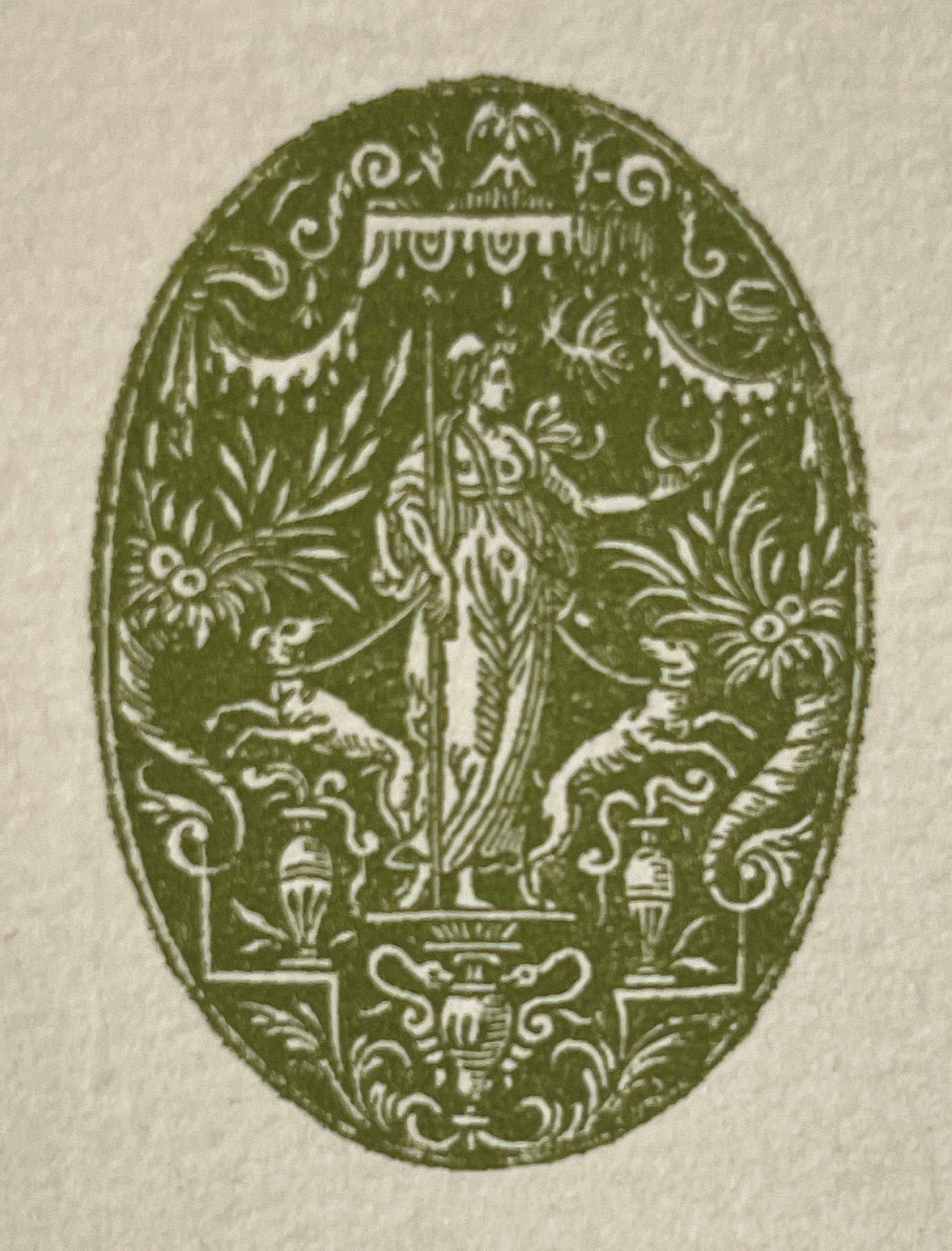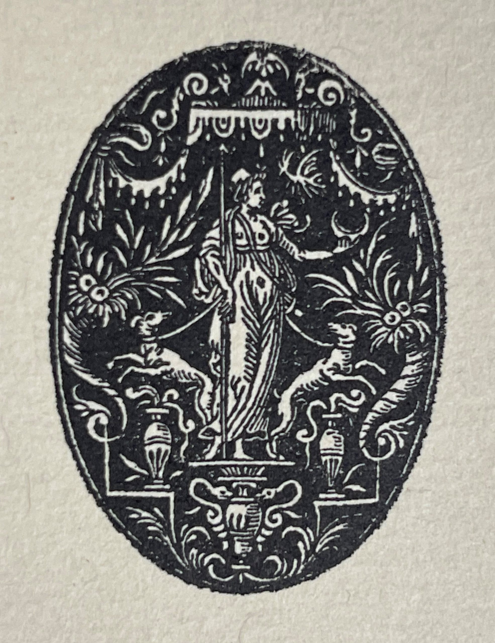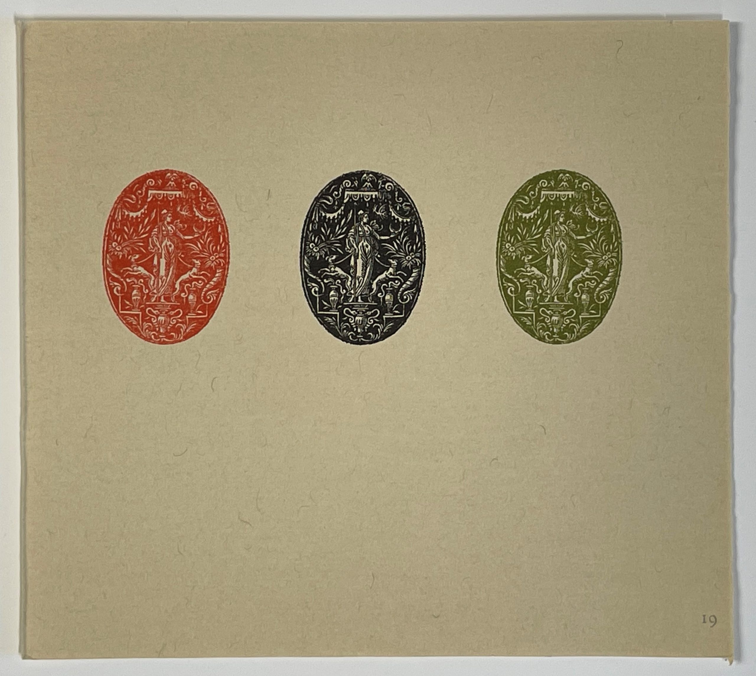 In 1968, Gehenna Press—the fine bindings publisher founded and run by artist Leonard Baskin—published Culs de Lampe, a booklet of unbound leaves of Nideggen and Fabriano blue and white handmade papers on which culs de lampe from Sixteenth and Seventeenth Century books were skillfully printed by Gehenna’s pressman, Harold McGrath.