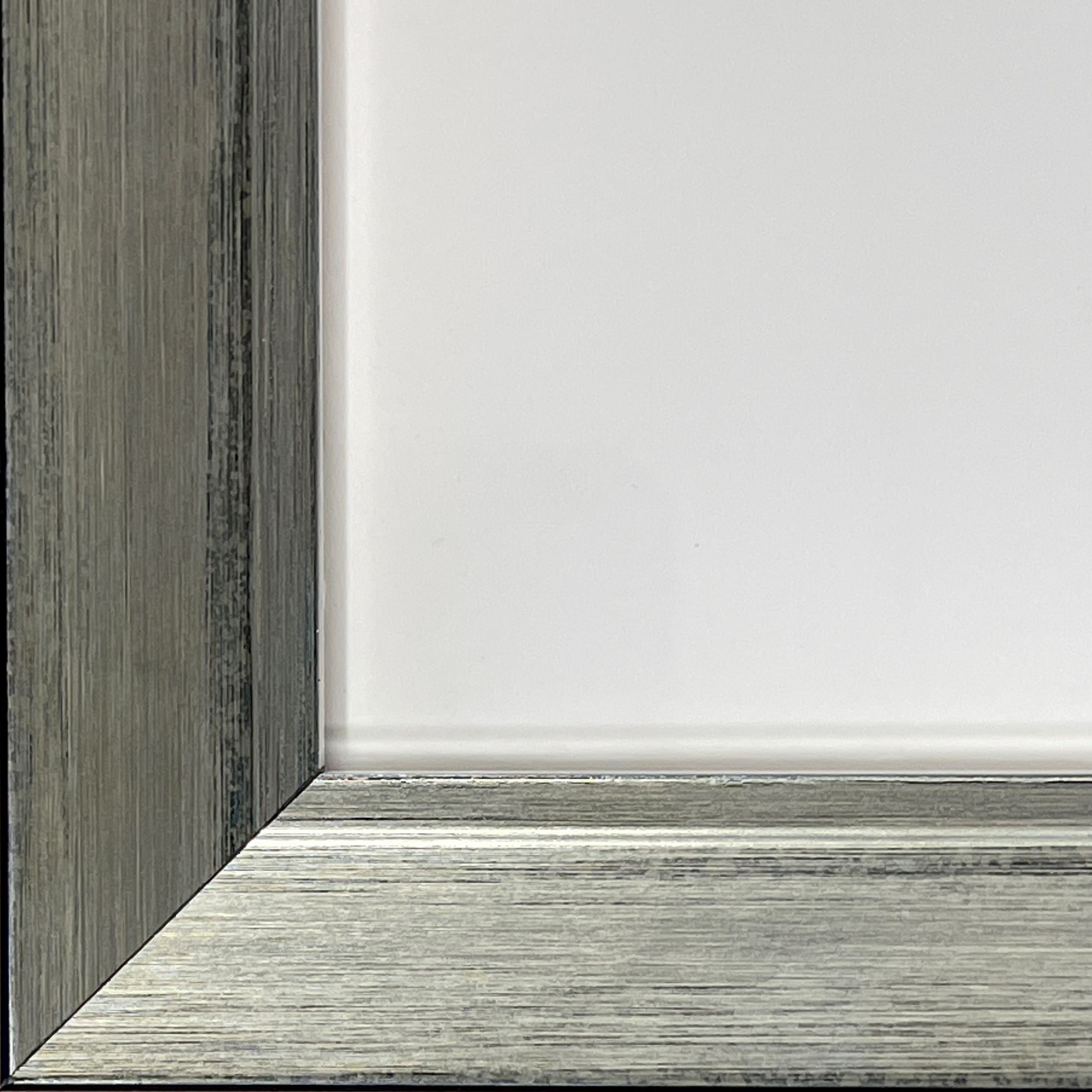 Custom matted and framed in a silvered wood frame behind 99% UV-blocking conservation glass using strictly conservation-grade materials.