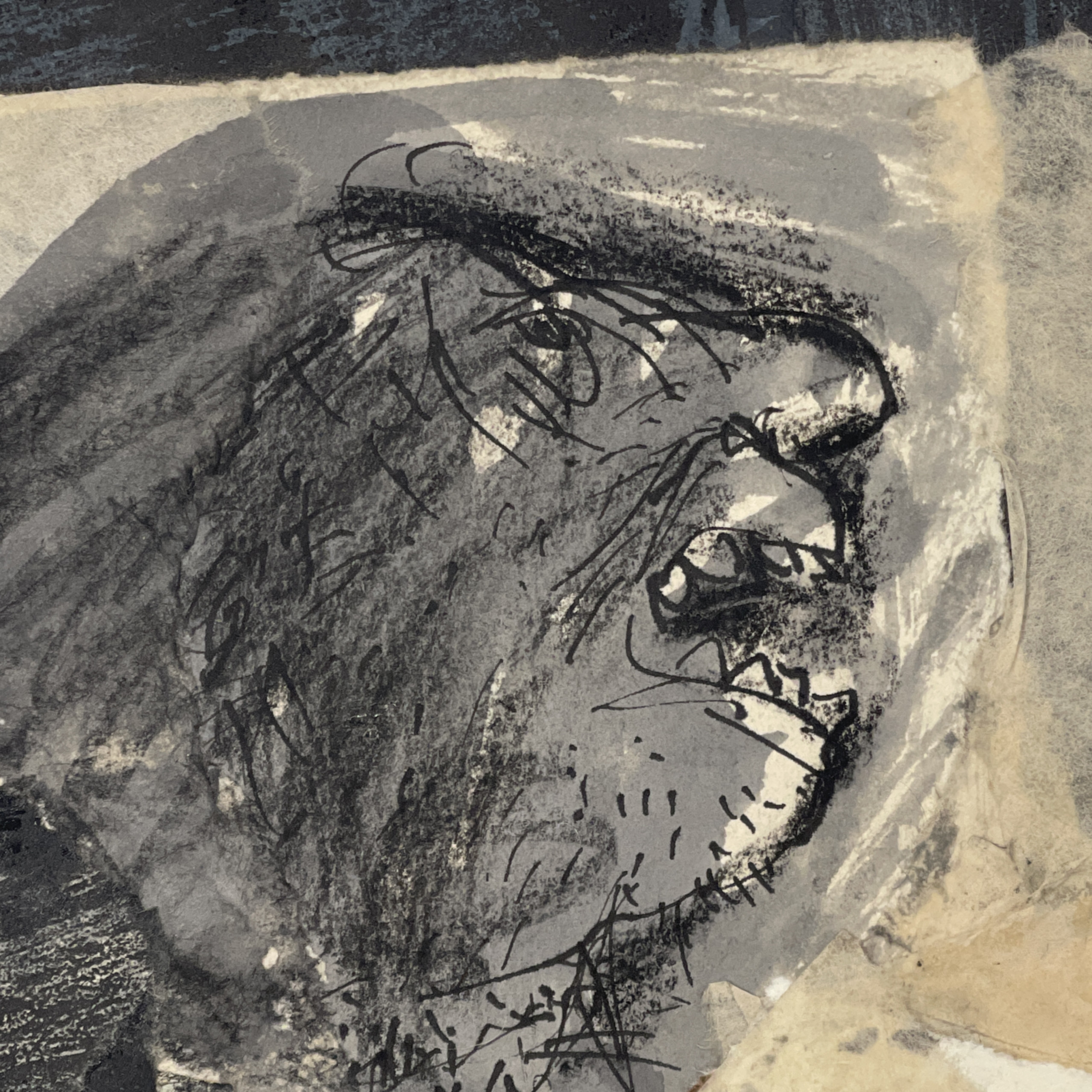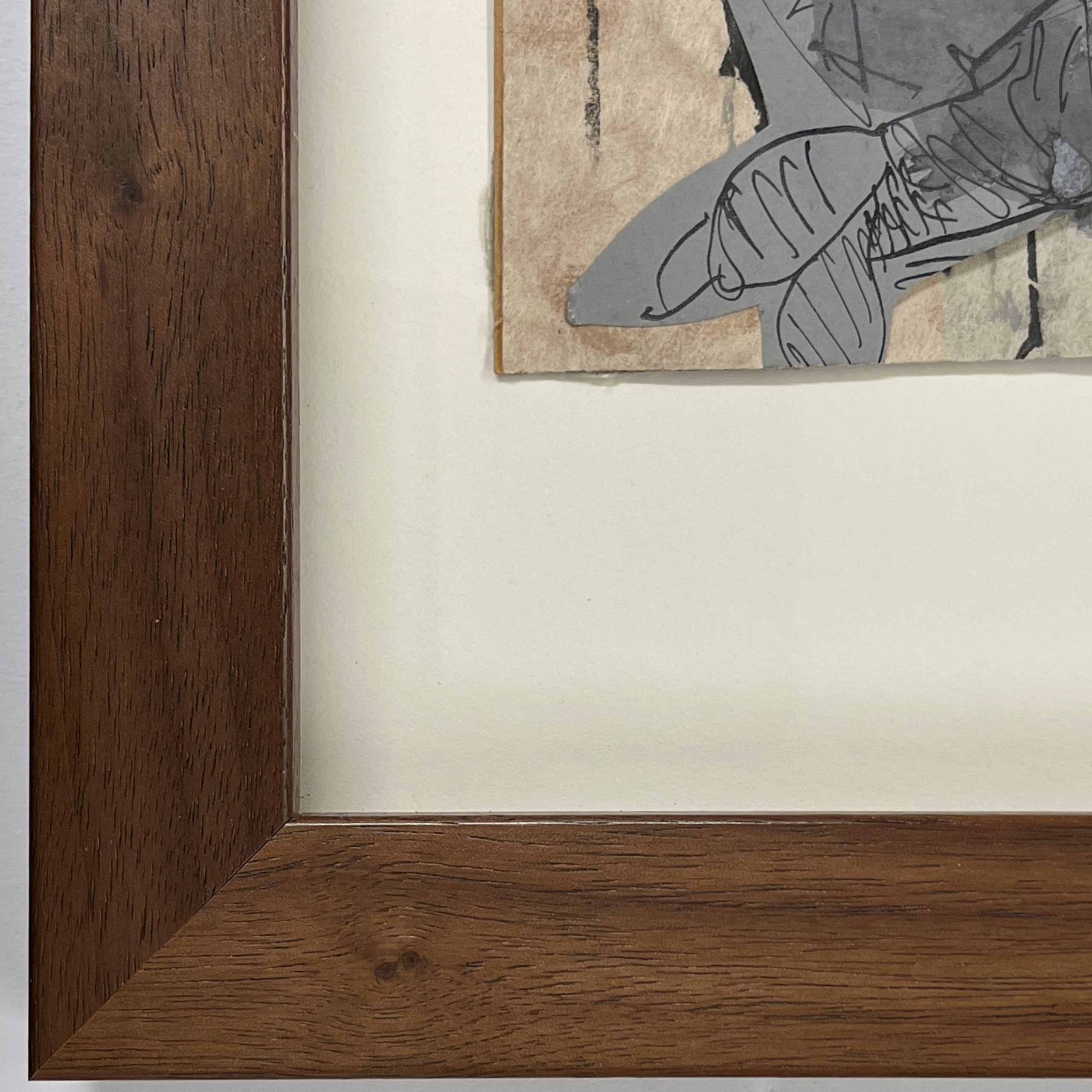 Framed in a custom-made brown-black metal frame with seamless corners of the sort invented by Robert Kulicke with a linen-wrapped liner, behind 99% UV-filtering Museum Glass.