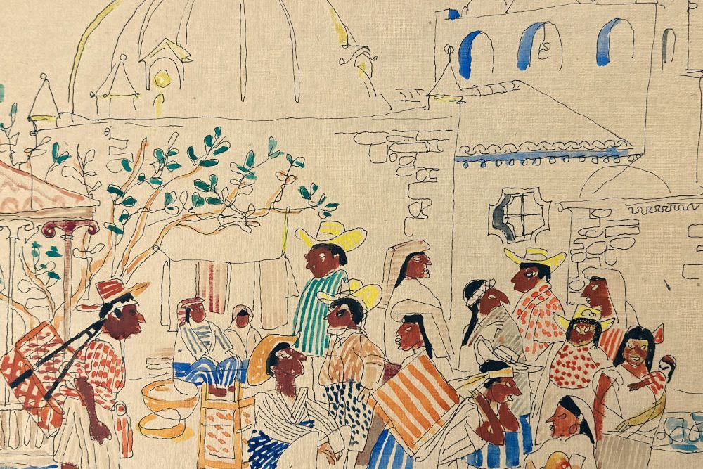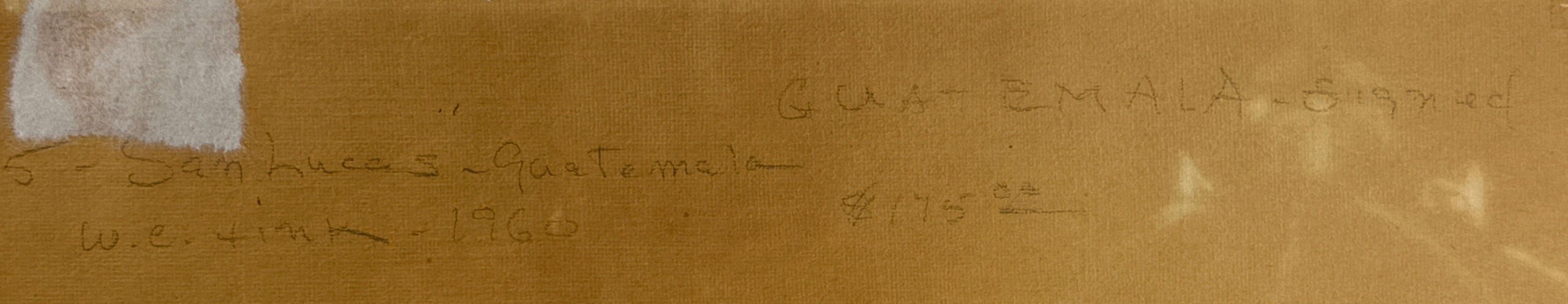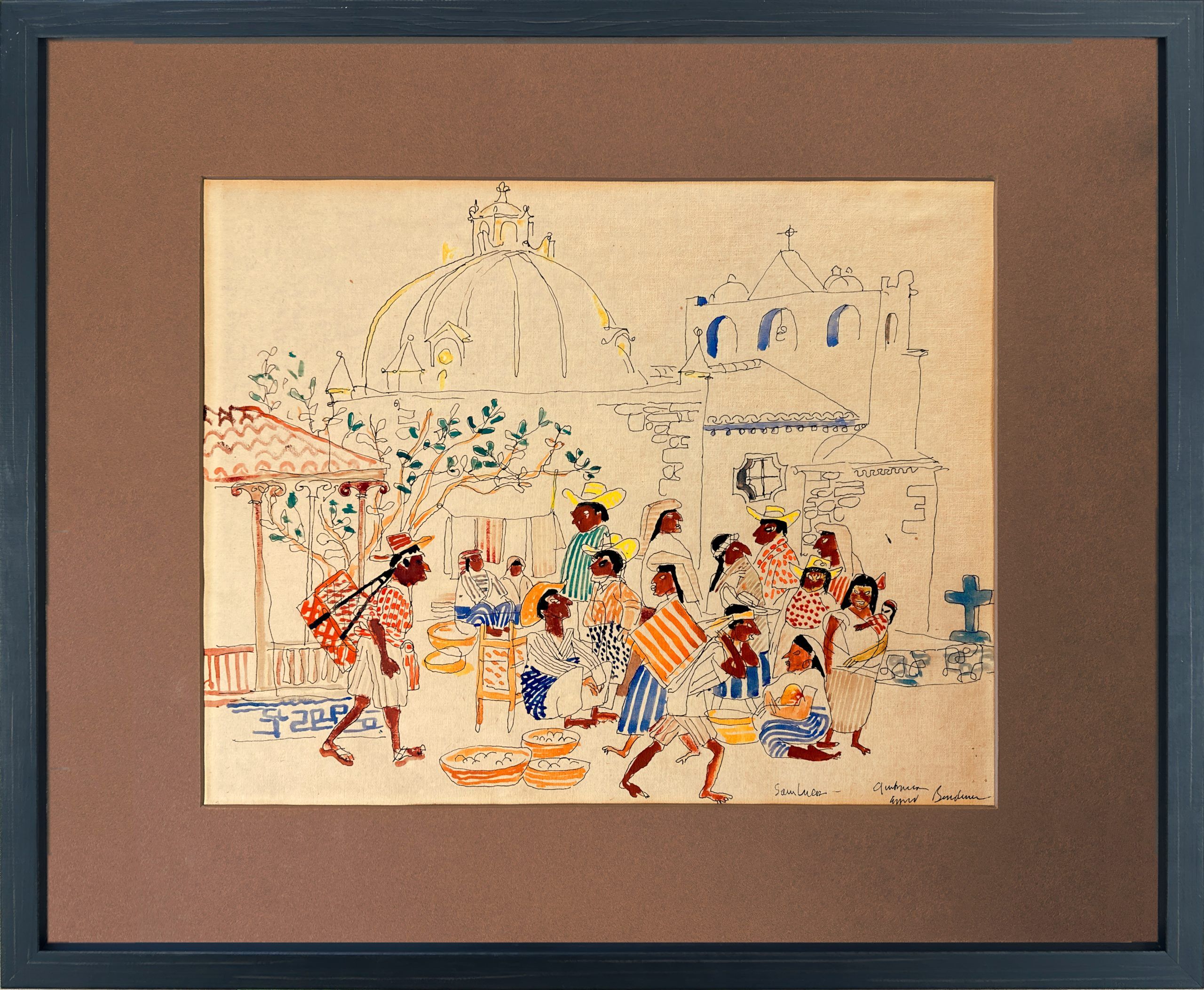 A joyful depiction of island life. Alfred Bendiner retired from the practice of architecture in 1961. Just before his retirement he worked as an archaeological draftsman on a University of Pennsylvania excavation in Tikal-Tikal, Guatemala. It would have been on that trip that Bendiner painted this work.