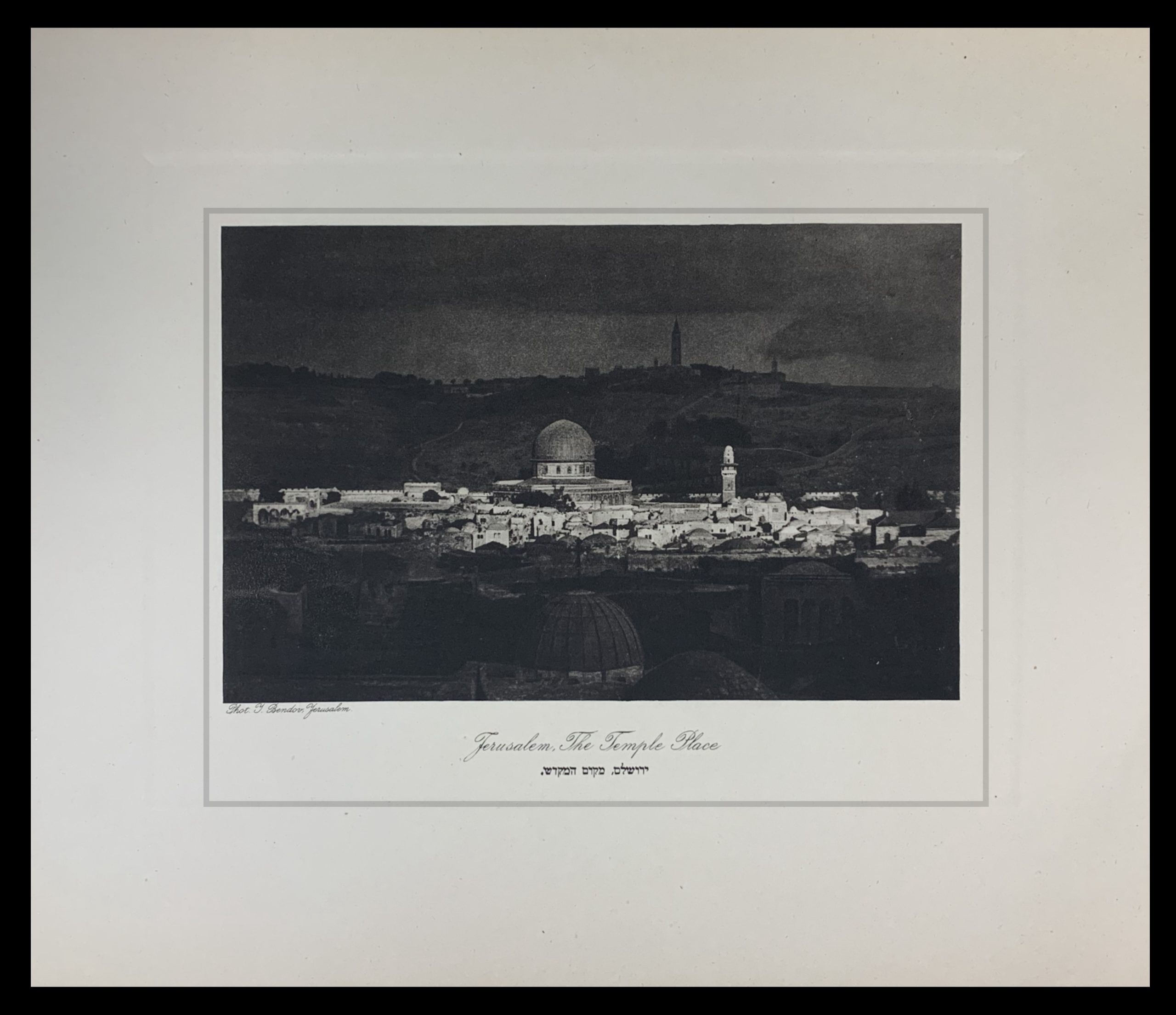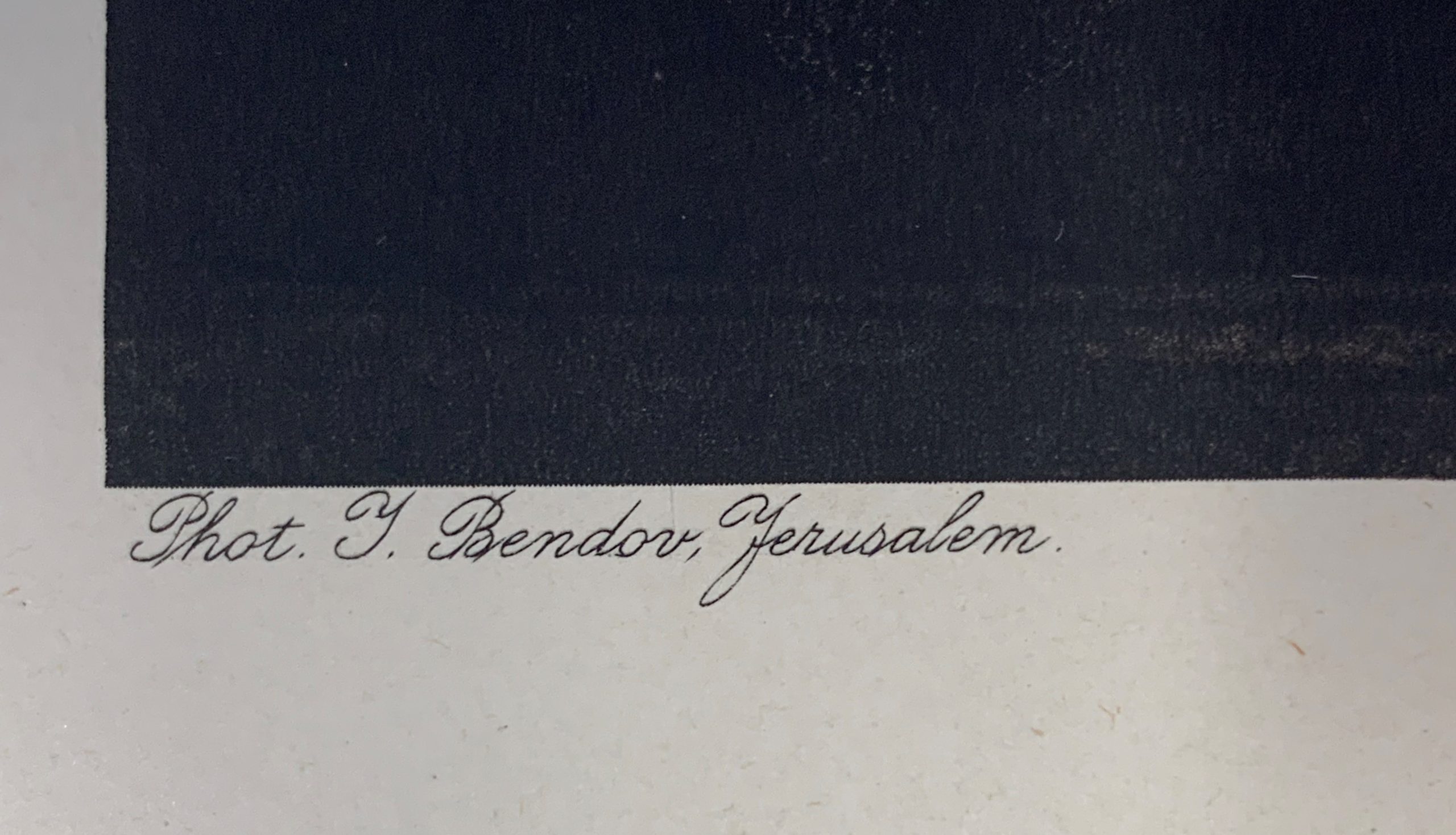 Hanania Brothers were photo technicians on Jaffa Road in Jerusalem, generally thought to be in operation from the 1910s through the 1930s. In 1927 (according to Paris’ Musée d’Art et d’Histoire du Judaïsme), Hanania Brothers published a portfolio of photogravures (also known as héliogravure) from Yaakov Bendov’s photographs of Jerusalem. This work comes from that portfolio, which is now exceptionally rare.