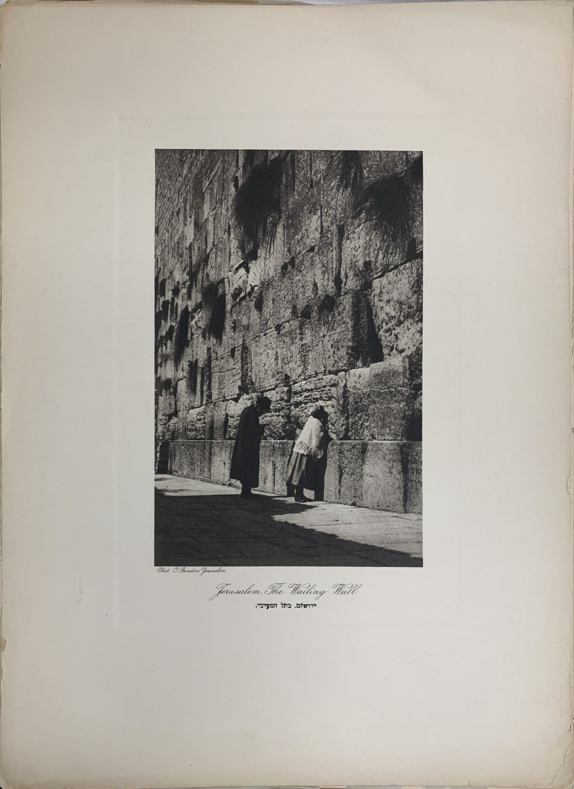 Hanania Brothers were photo technicians on Jaffa Road in Jerusalem, generally thought to be in operation from the 1910s through the 1930s. In 1927 (according to Paris’ Musée d’Art et d’Histoire du Judaïsme), Hanania Brothers published a portfolio of photogravures (also known as héliogravure) from Yaakov Bendov’s photographs of Jerusalem. This work comes from that portfolio, which is now exceptionally rare.