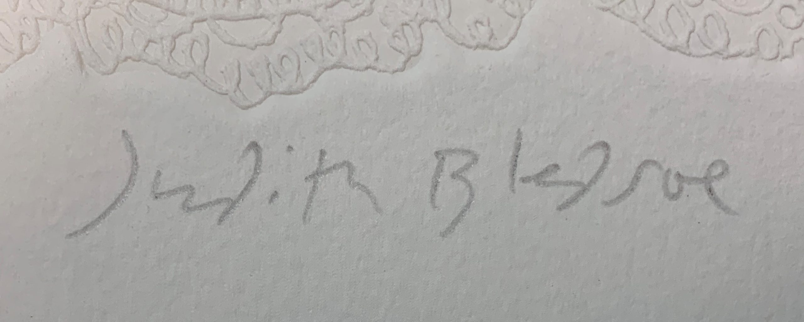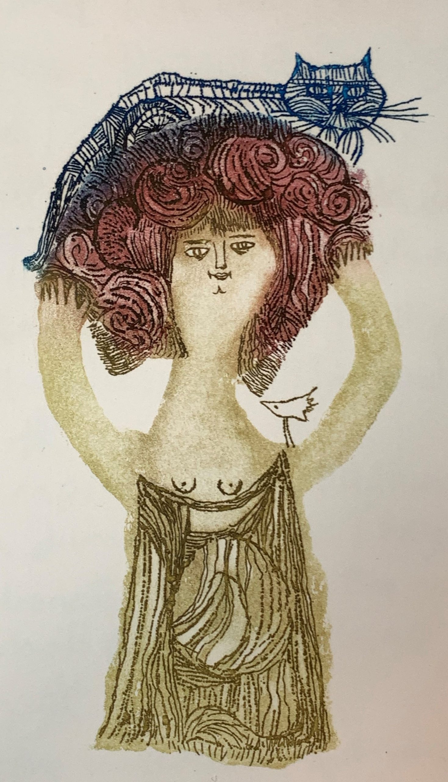 A delightful depiction of a gallant (and quite possibly batty) lady and one of her animal friends, with Judith Bledsoe’s characteristic humor and vitality. Bledsoe always celebrated her own individuality and treasured peculiarity in others!