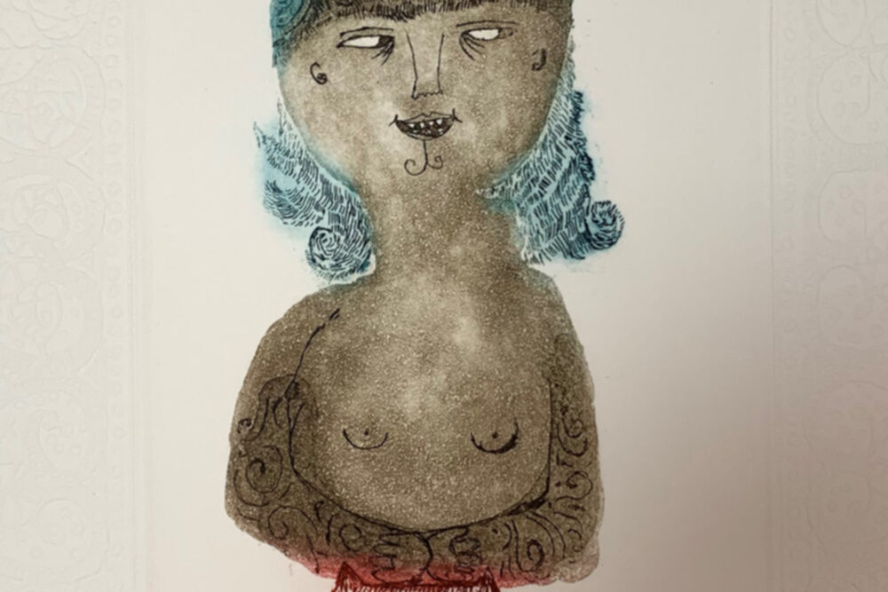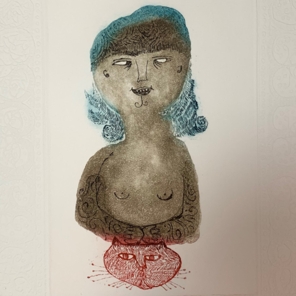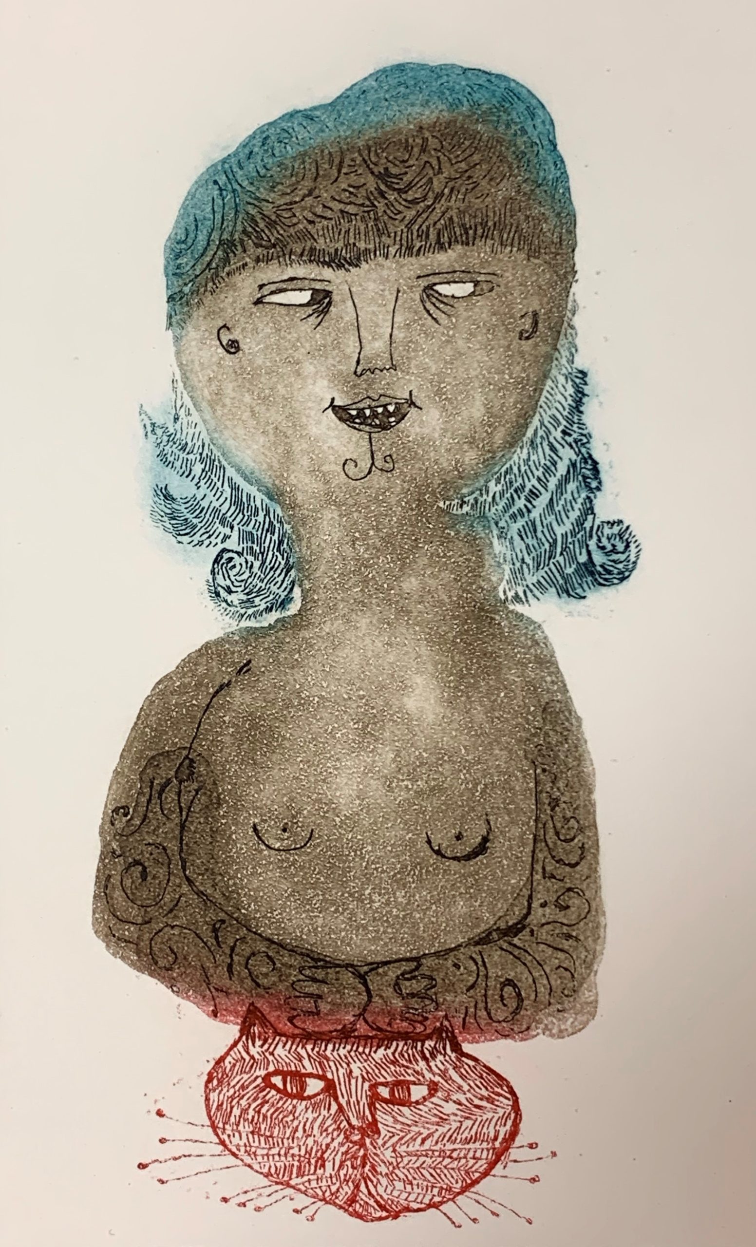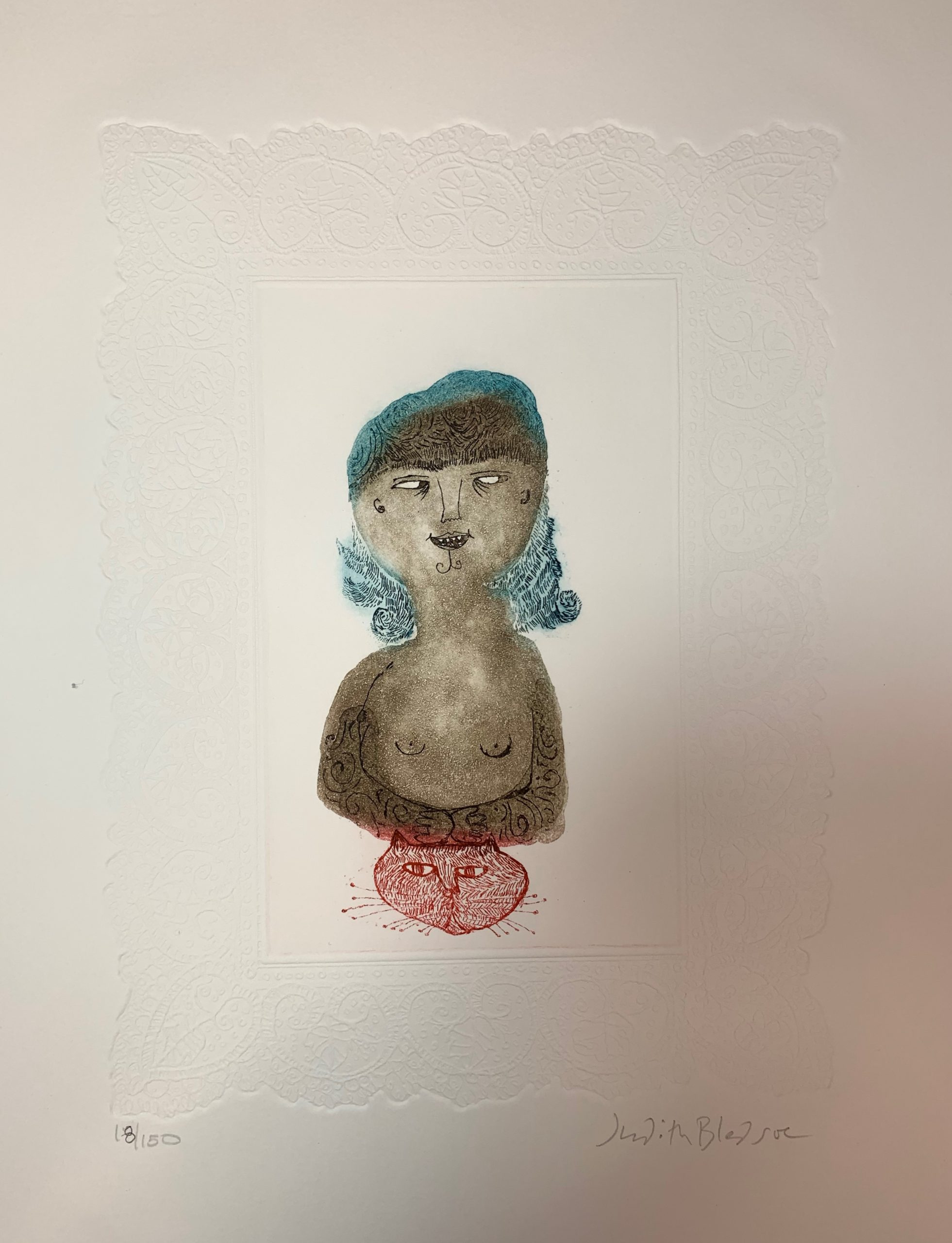 A delightful depiction of a gallant (and quite possibly batty) lady and one of her animal friends, with Judith Bledsoe’s characteristic humor and vitality. Bledsoe always celebrated her own individuality and treasured peculiarity in others!