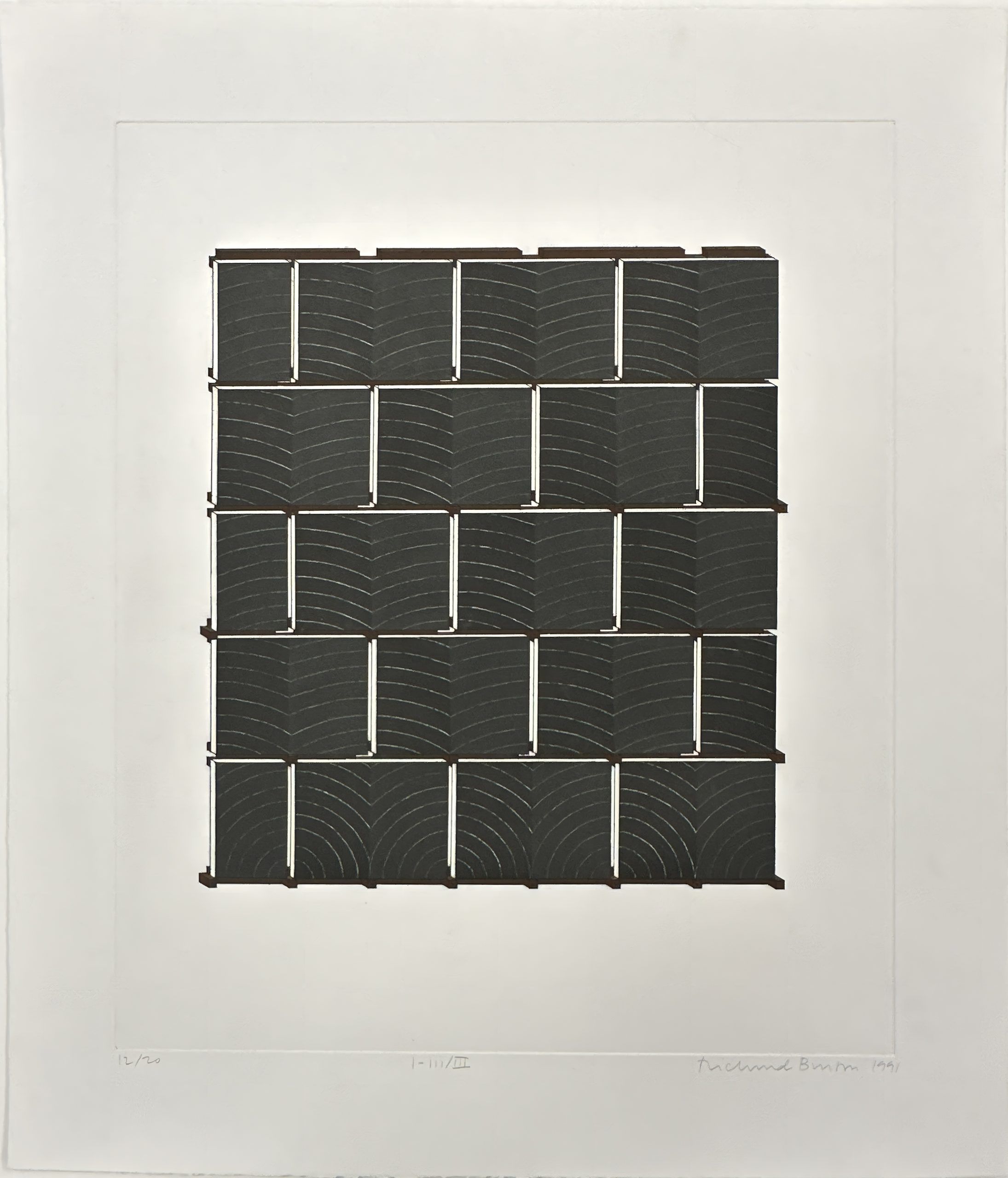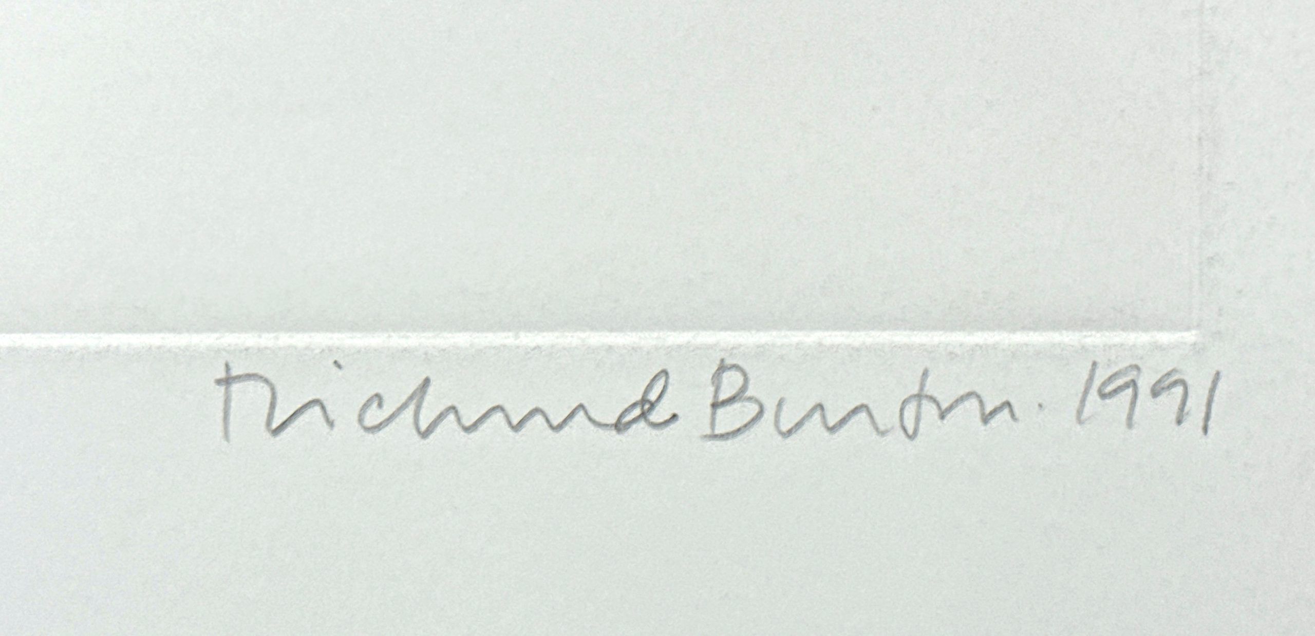 Richmond Burton‘s colorful and harmonious paintings and graphic work are composites of his vocabulary of organic shapes that flow together in undulating patterns resulting in unique multi-colored abstractions. With a background in architecture, many of Burton’s paintings stress visual order. Hard-edged geometrical forms dominated his early canvases, but later a more organic patterning emerged.