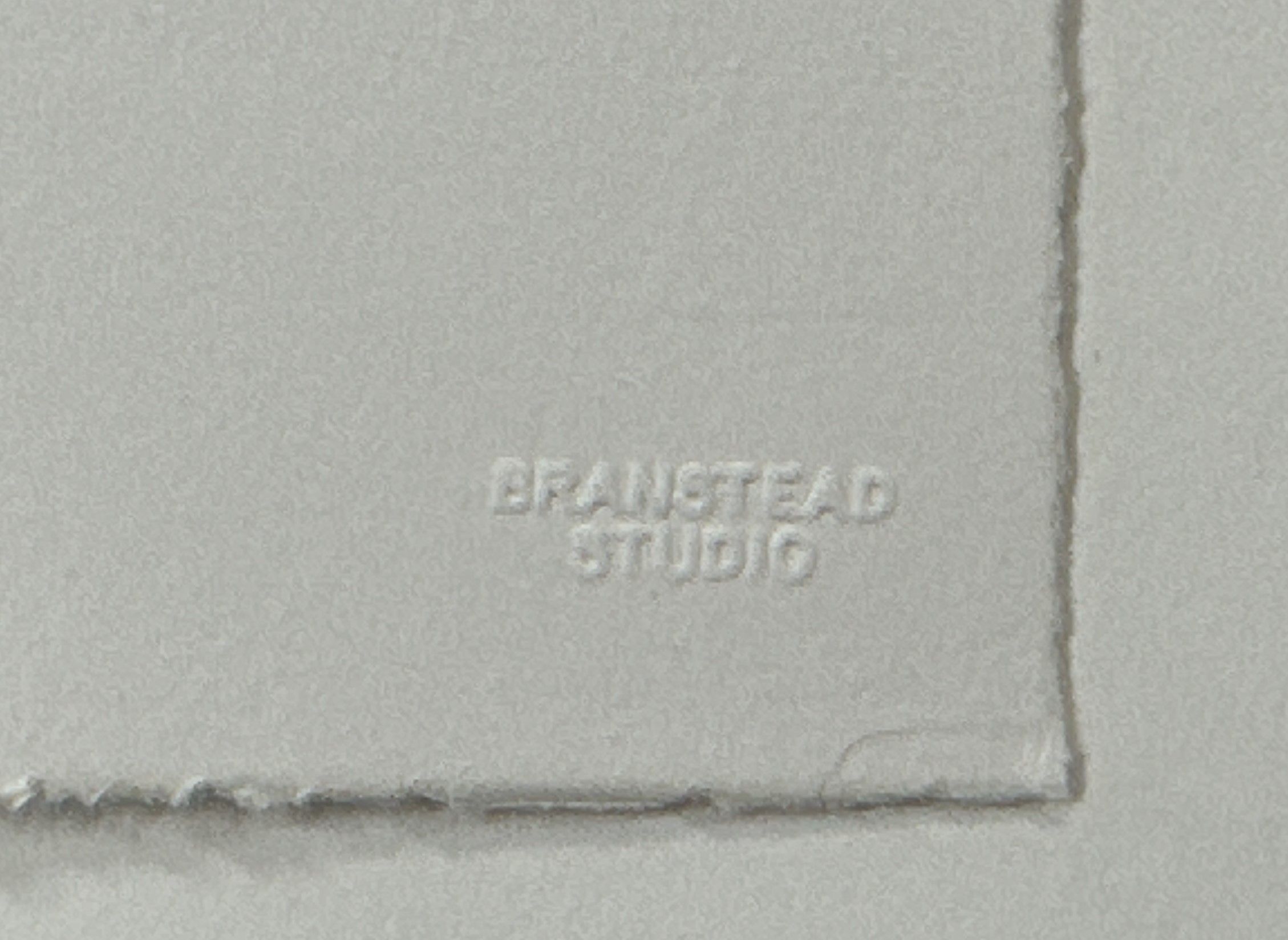 Hand-signed by the Artist, en recto lower right, with date.  Titled lower center.  Editioned lower left.  Bearing the blindstamp of the printer, Branstead Studio.