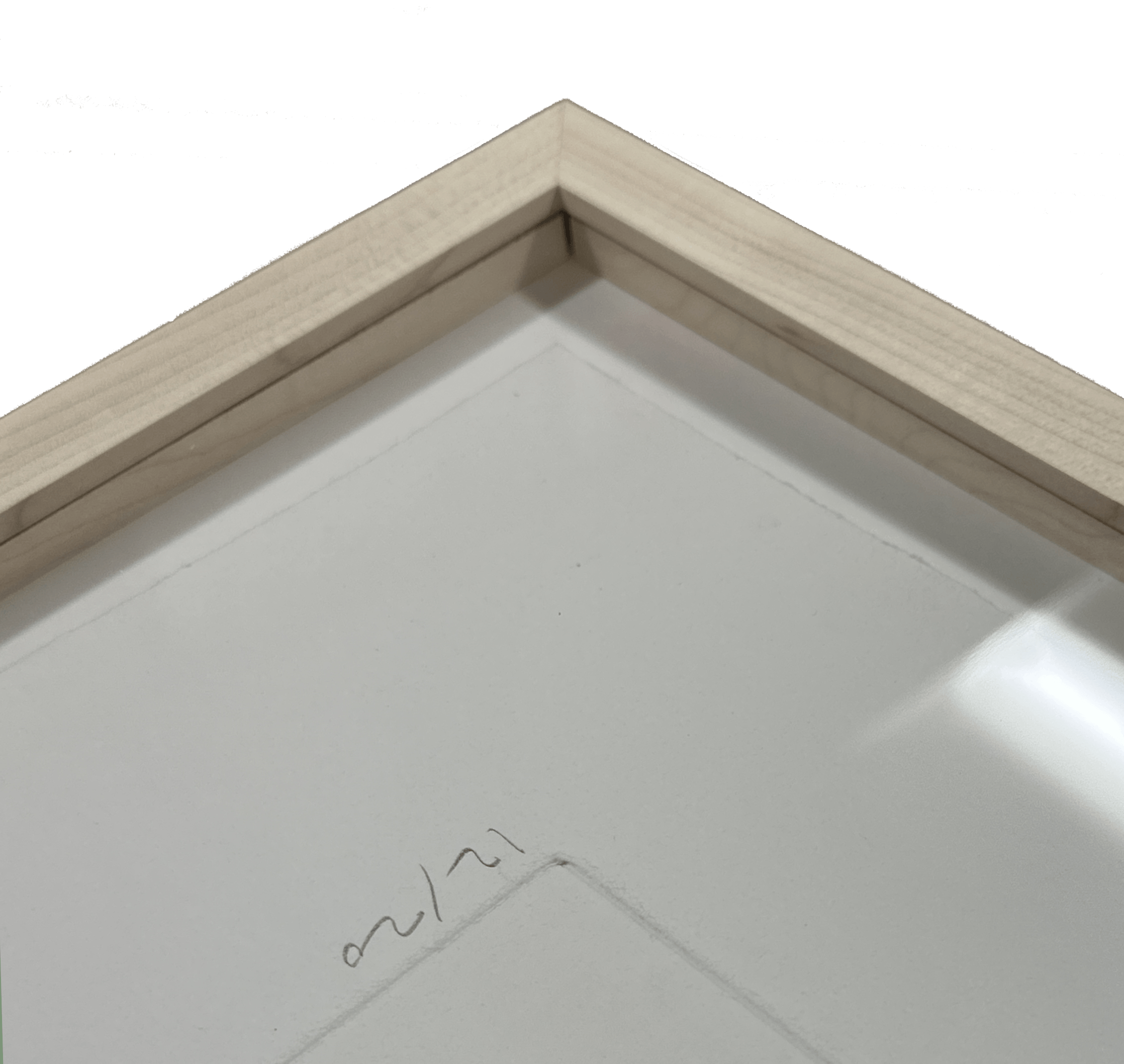 Custom framed using strictly conservation-grade materials in a solid Maple gallery frame with Maple spacers holding the work from the glass, which is 99% UV-blocking, fortified with a wooden strainer at the verso.