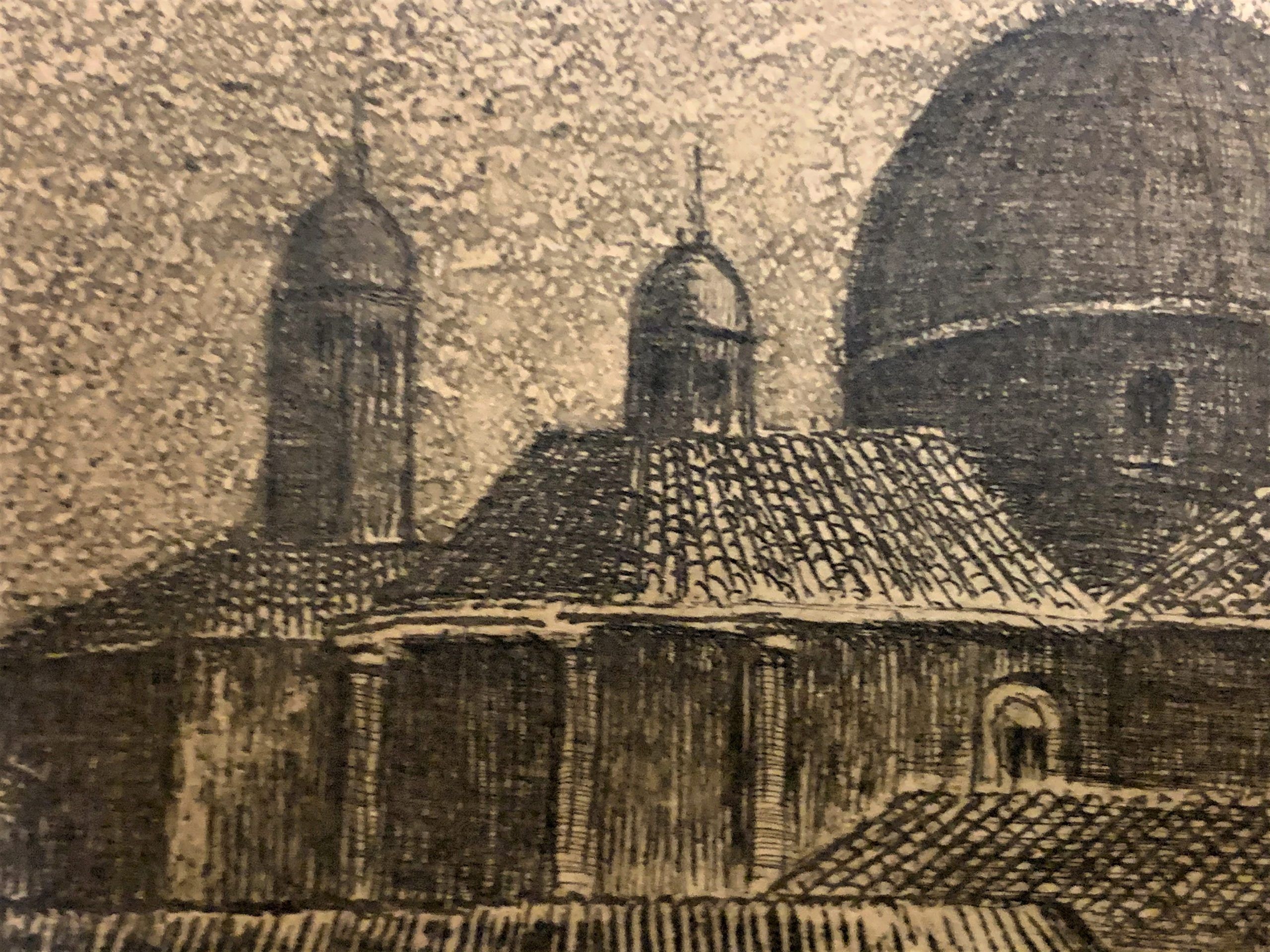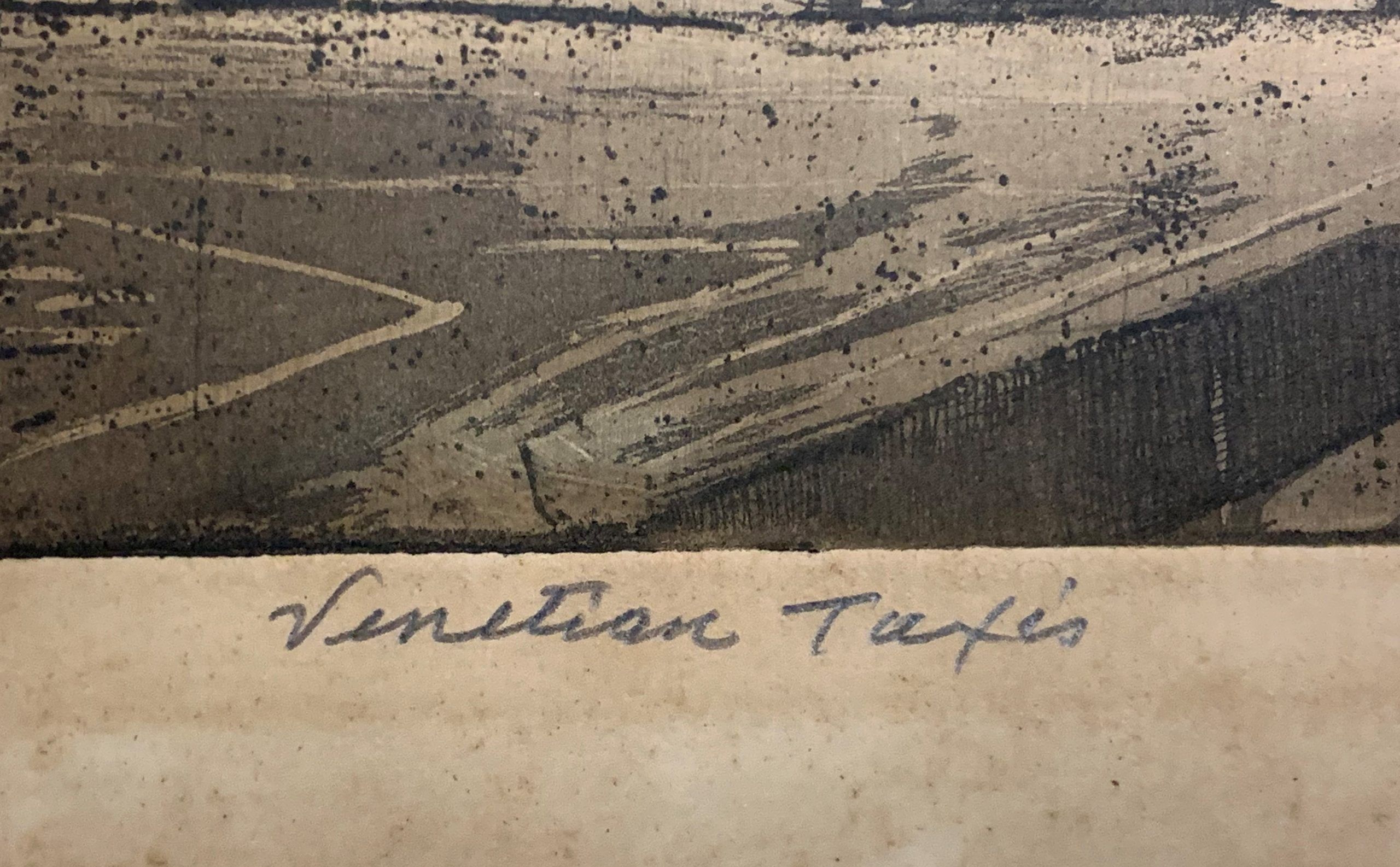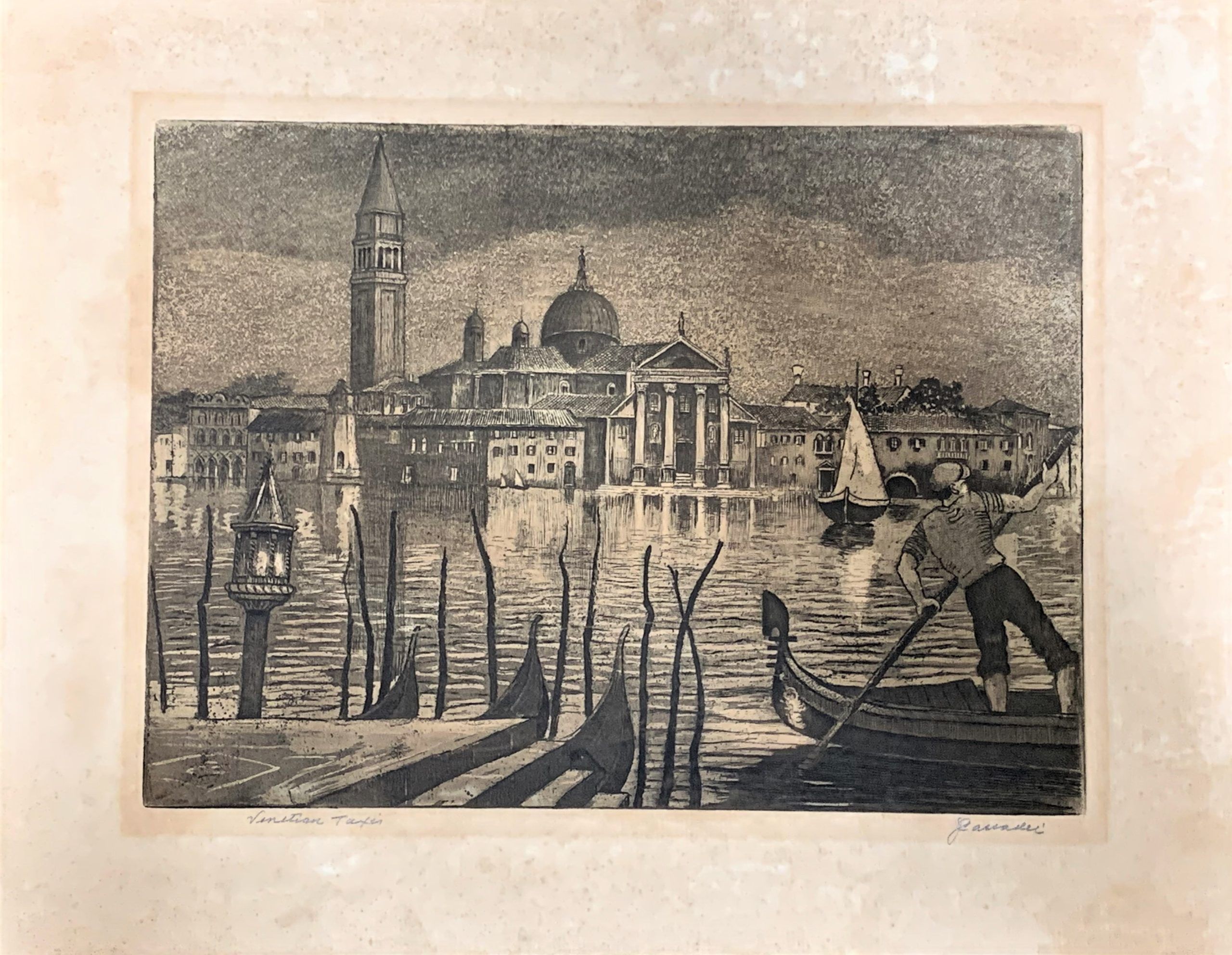 Cassadei, an accomplished Chicago-based etcher, produced a series of works depicting Venice, with romantic images of the people and architecture of the city.