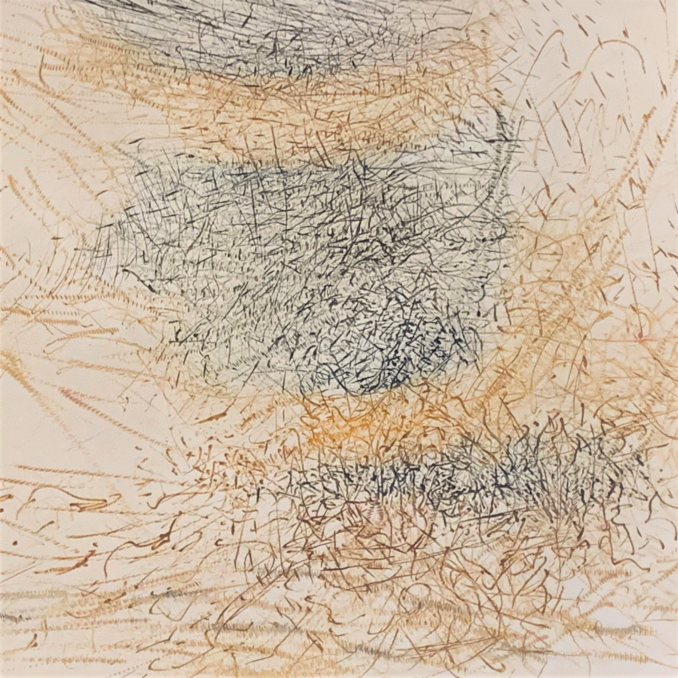 Childs’ great contribution to print-making was his innovation of using power tools to engrave the plate. He referred to these prints as “power drypoints”. Though it proved to be a superb tool for Childs, Hayter was less enamored of it. He told Childs that he could not do that engraving at the atelier because it made too much noise. Years later, Judith Childs introduced herself to Hayter at the opening of a Hayter exhibition in New York. Hayter’s immediate response: “Uch! All that noise!”